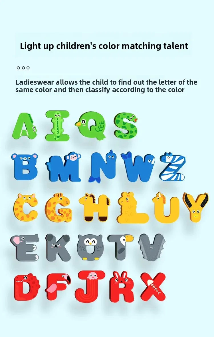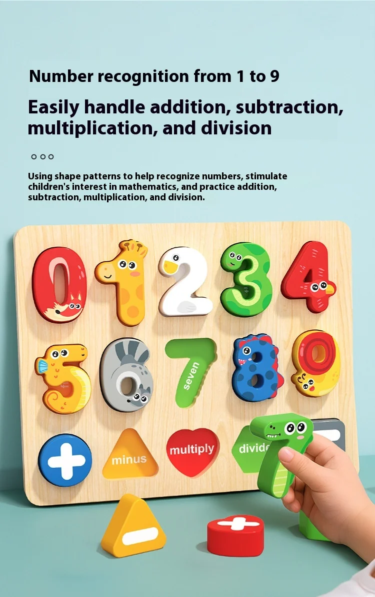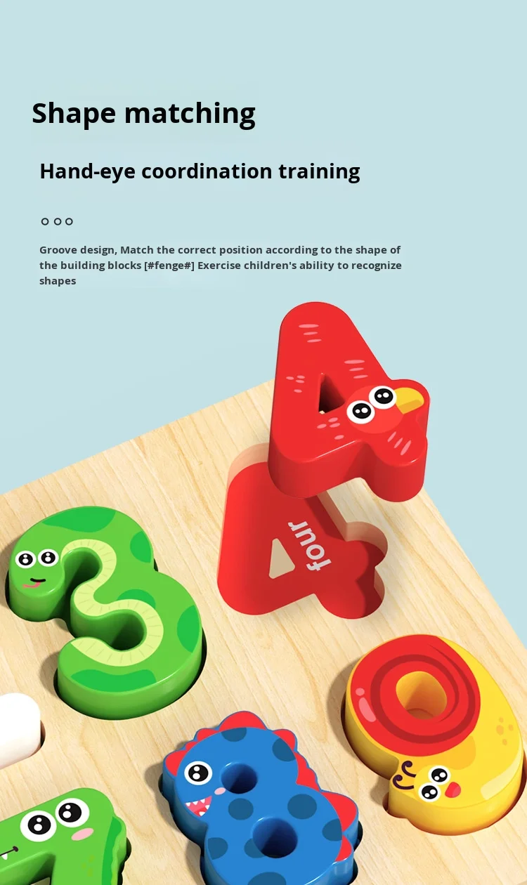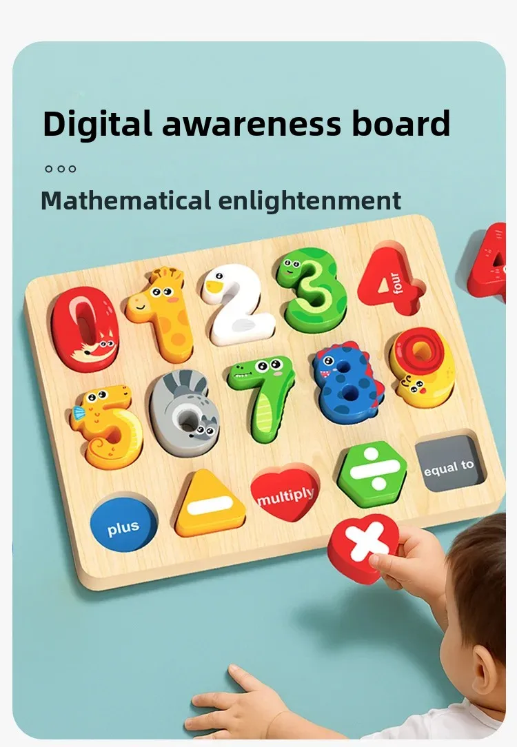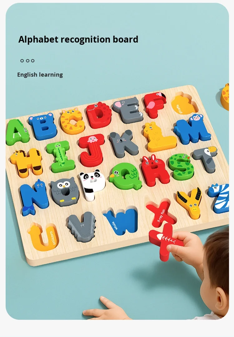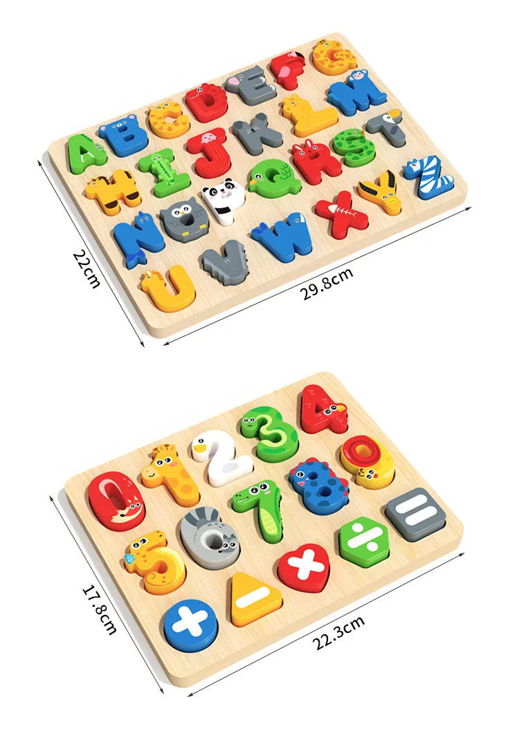 كتل ألغاز تعليمية مبكرة من خشب مع أشكال الحروف الأبجدية والأرقام برسوم كرتونية للأطفال، لعبة تركيب وذكاء تعليمية
