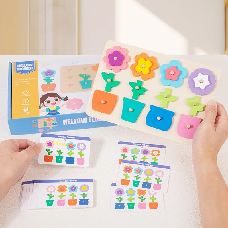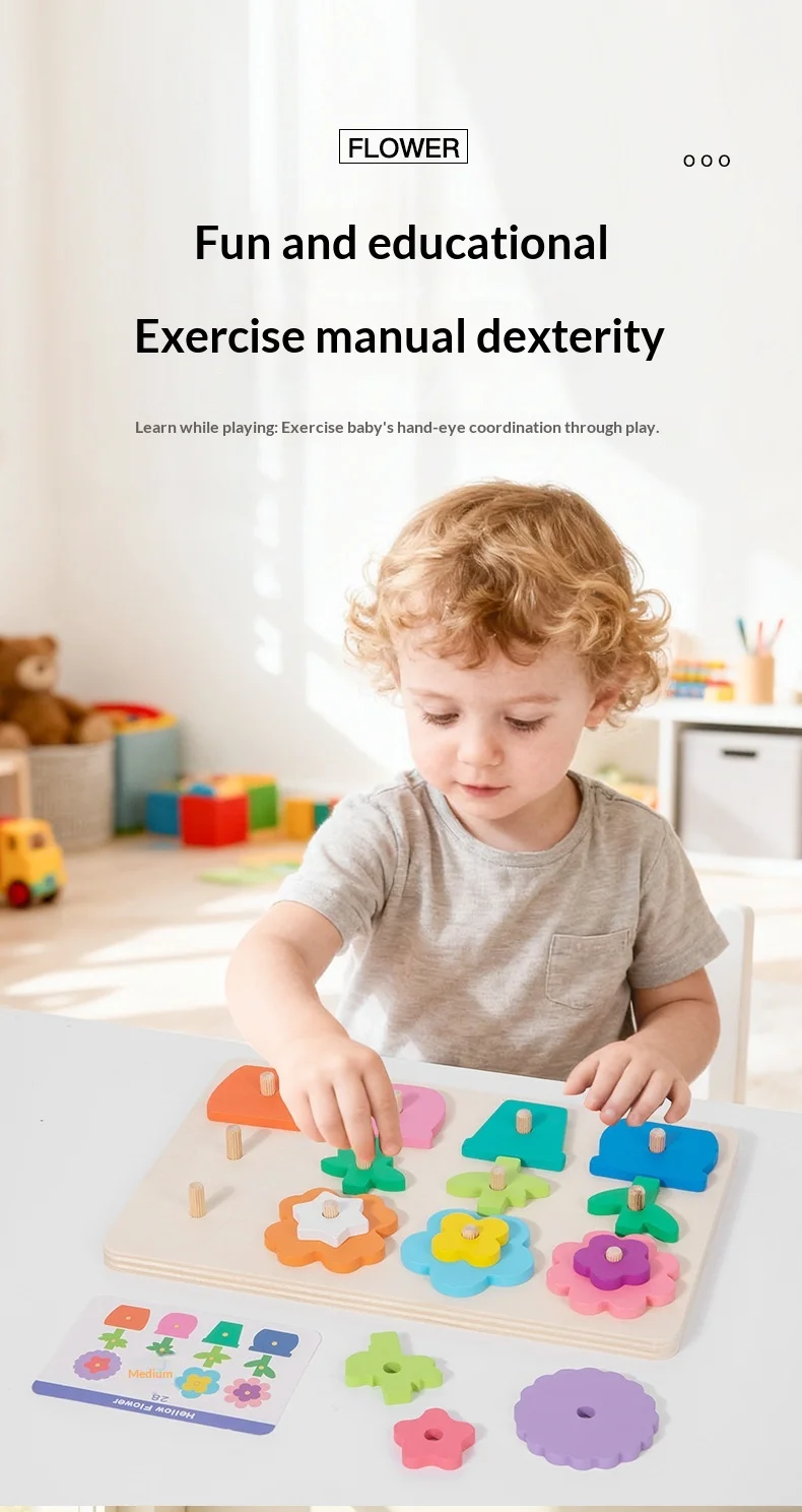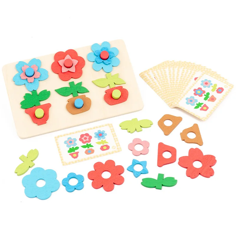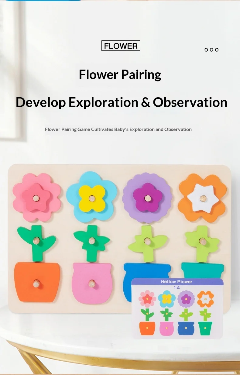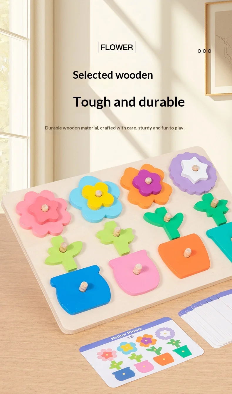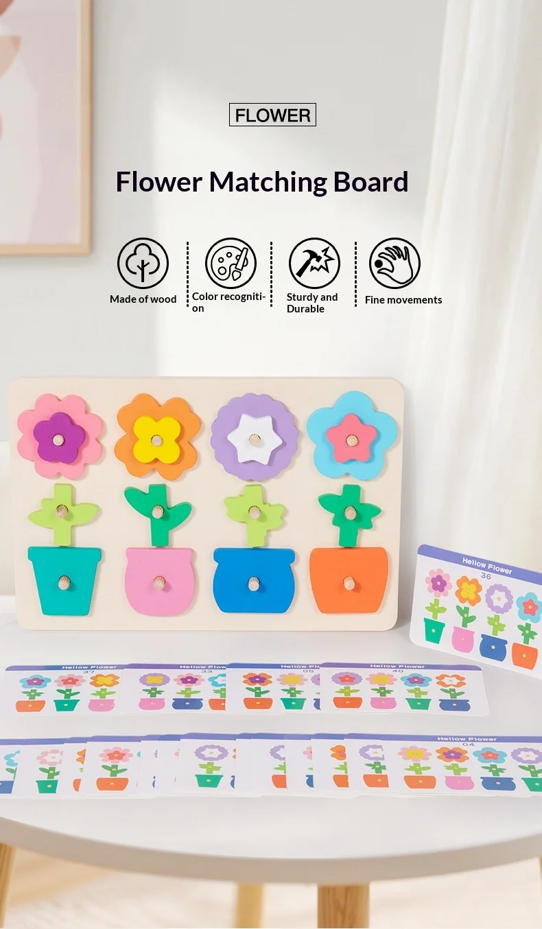 كتل ألغاز مطابقة للزهور للأطفال، لعبة لوحة تفاعلية ممتعة لتنمية مهارات التفكير، لعبة خشبية تعليمية للأطفال ما بين ٤ إلى ٦ سنوات.