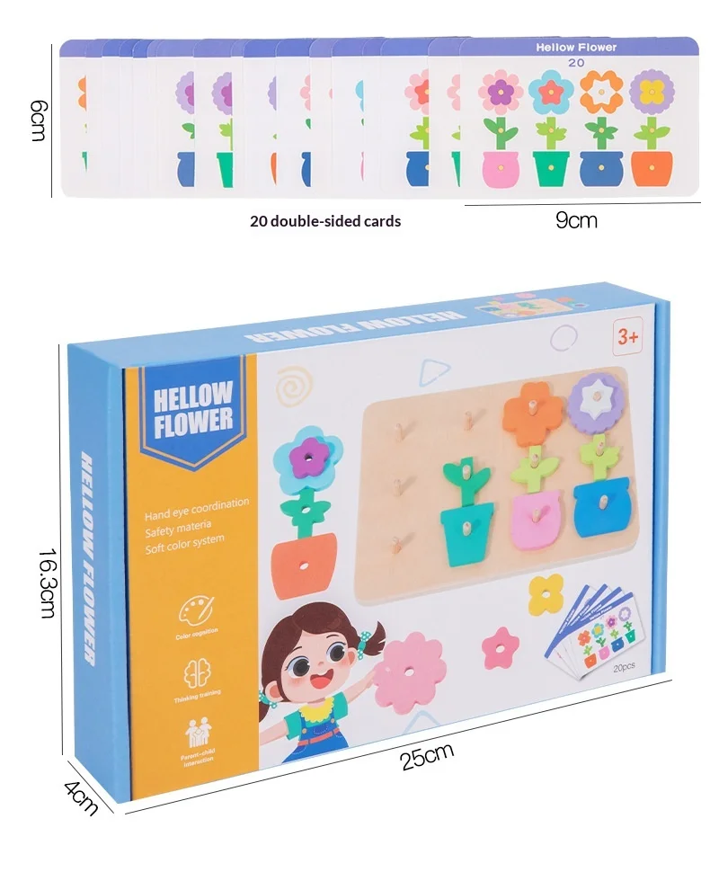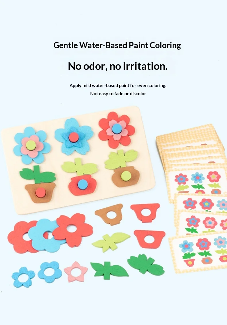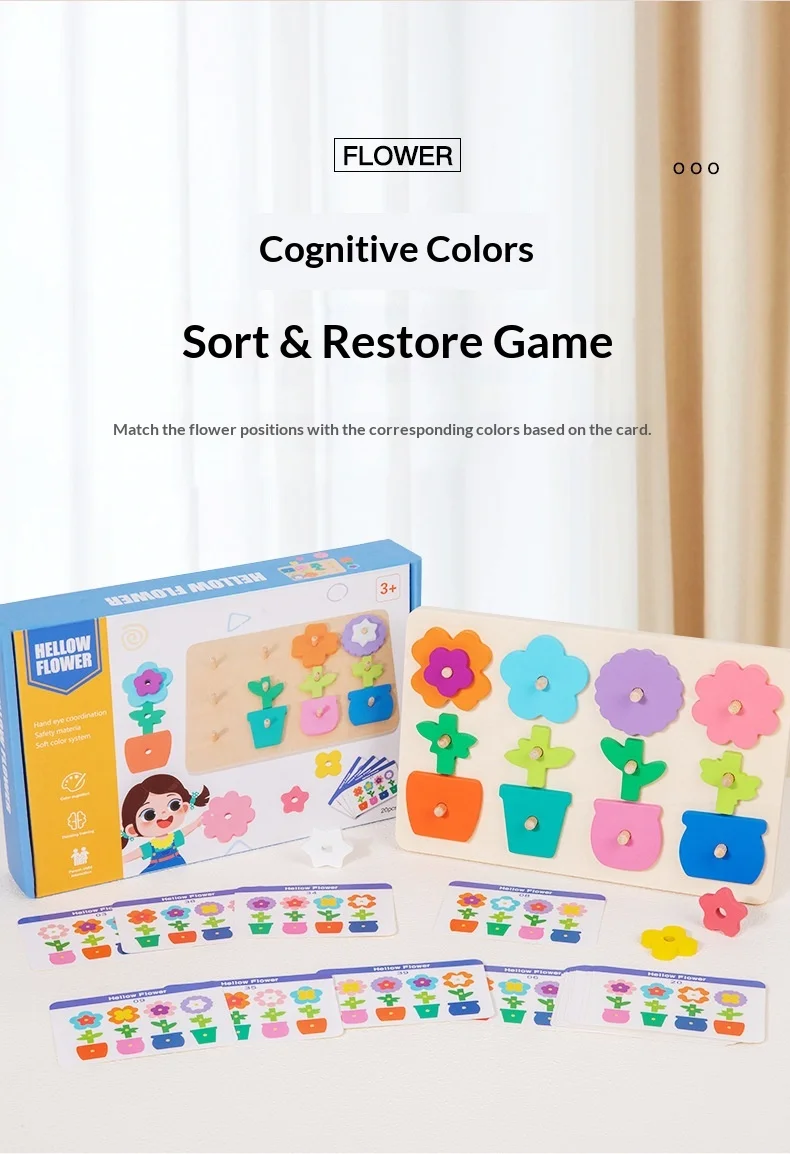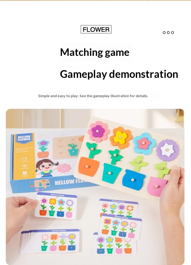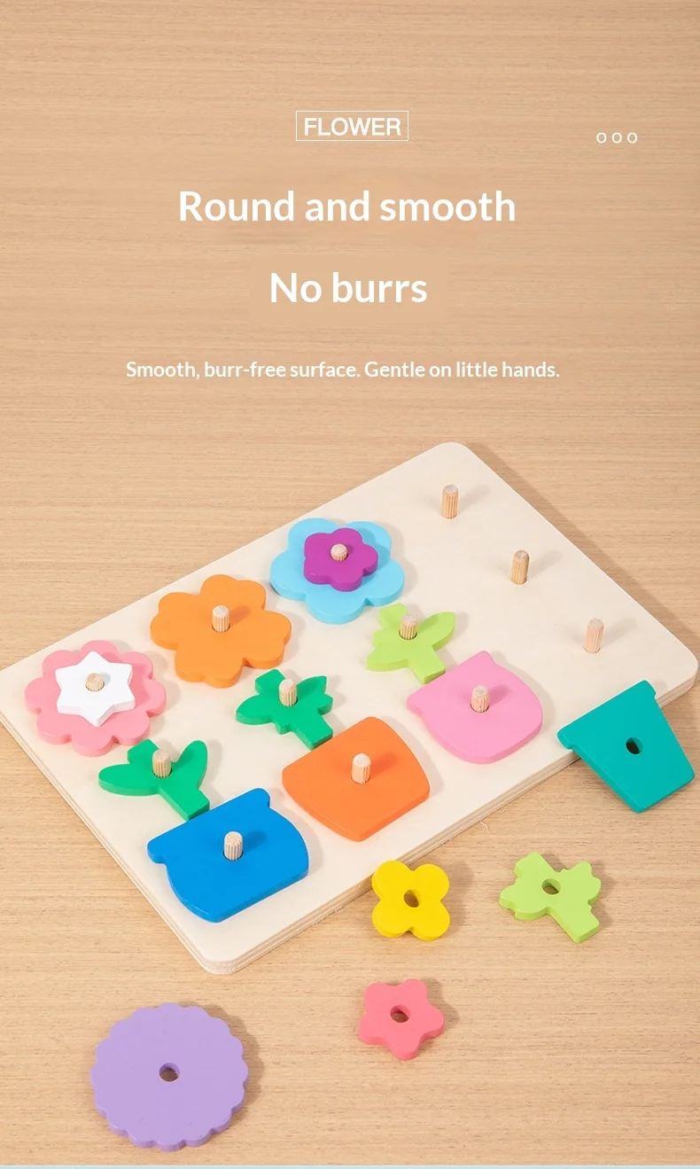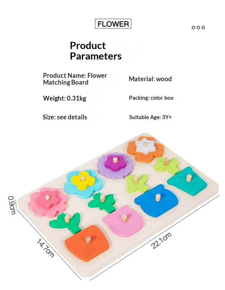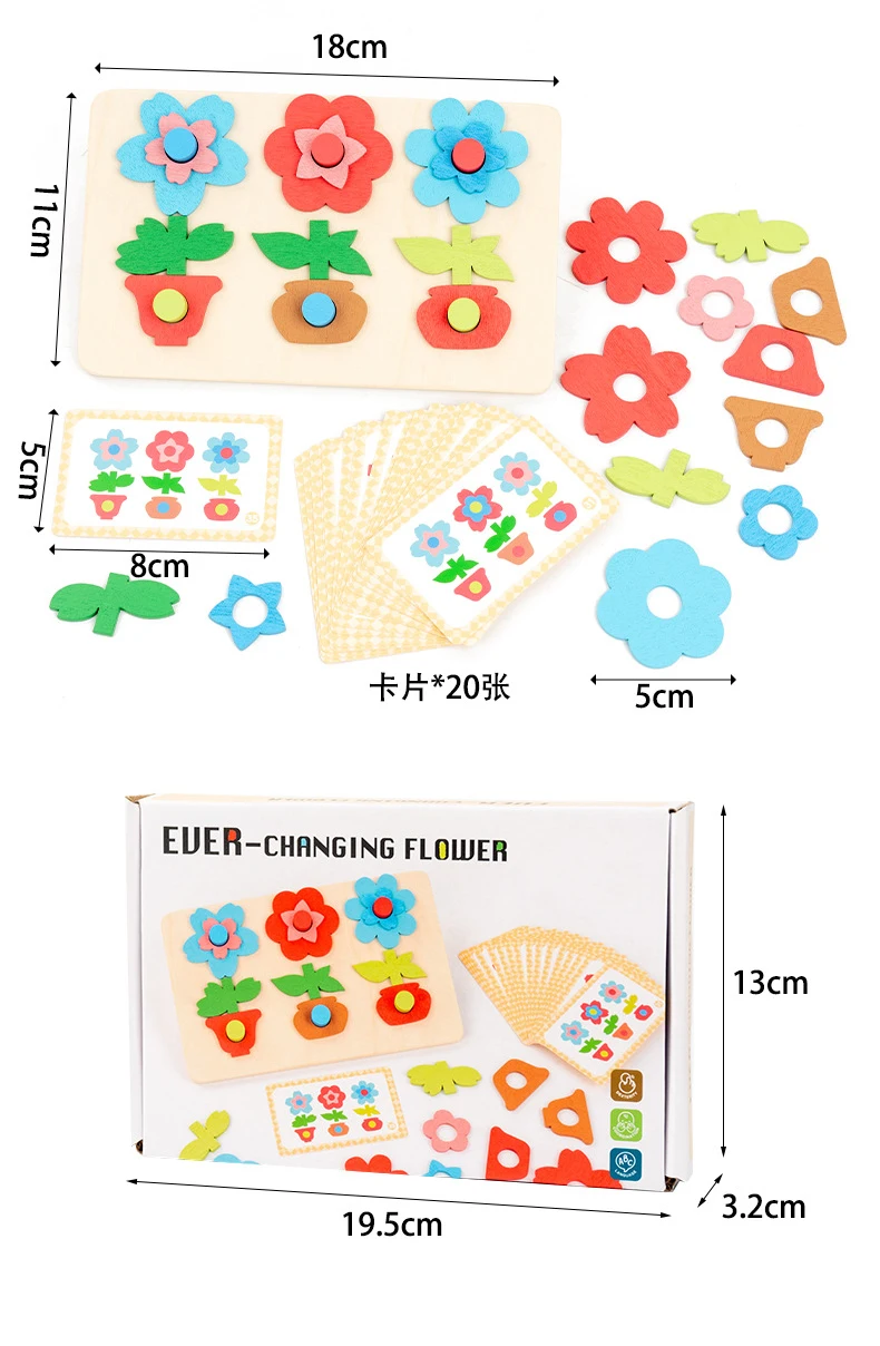 كتل ألغاز مطابقة للزهور للأطفال، لعبة لوحة تفاعلية ممتعة لتنمية مهارات التفكير، لعبة خشبية تعليمية للأطفال ما بين ٤ إلى ٦ سنوات.