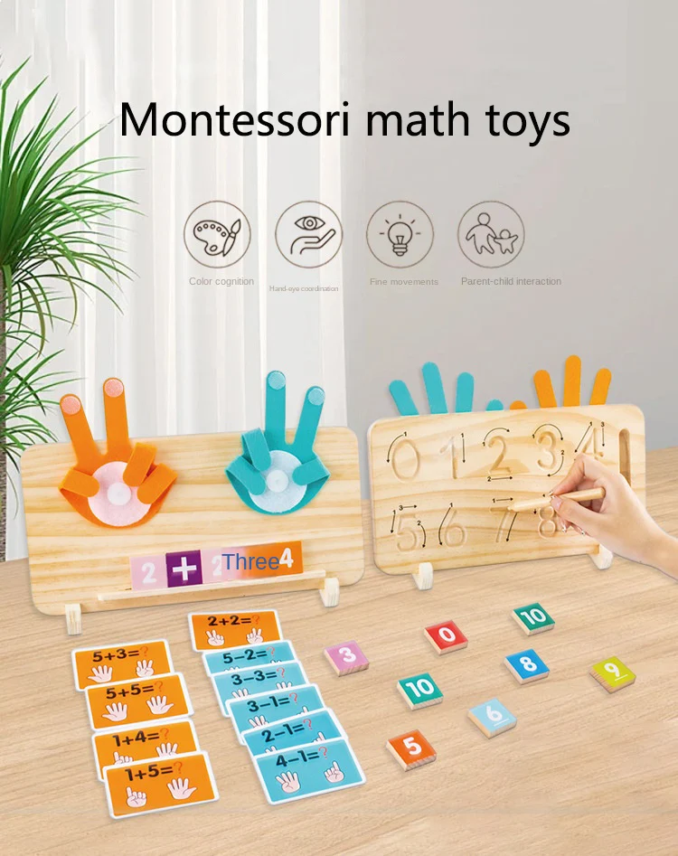 لوح خشبي مخصص مزدوج الوجه بنظام منتسوري، لعبة تعليمية لتعليم العد بالأصابع وتتبع الأرقام في الرياضيات للأطفال