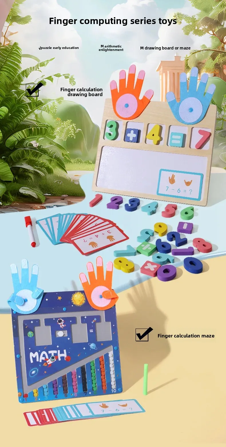 ألعاب تعليمية لرياض الأطفال من نوع مونتيسوري للأطفال، أدوات تعليمية للرياضيات، ألعاب الأصابع للجمع والطرح للأطفال