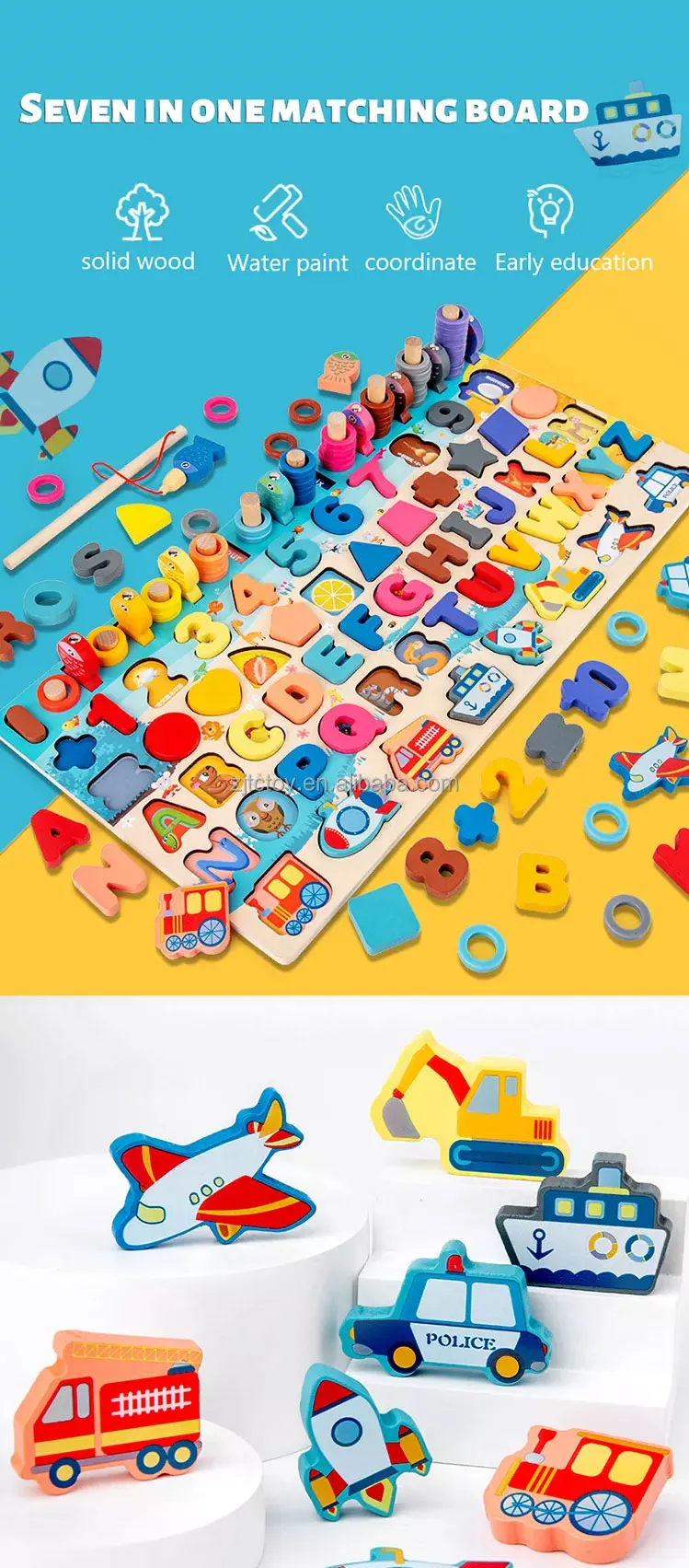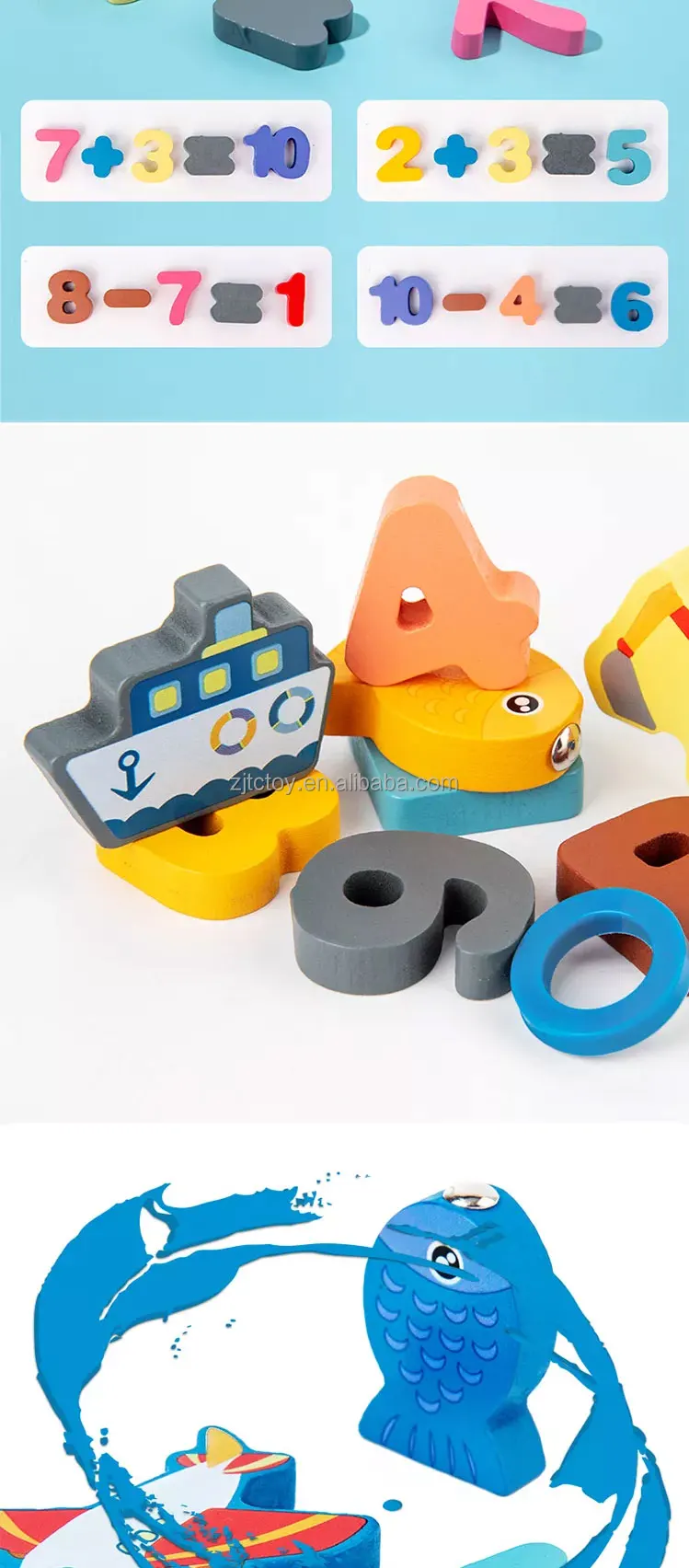ألعاب تعليمية خشبية وفق منهج مونتيسوري للأطفال، مجموعة متكاملة من ٧ أجزاء تشمل لوحة رياضيات، وصيد الأرقام، وتطابق الأشكال، وهي مناسبة للتربية المبكرة وهدايا للأطفال