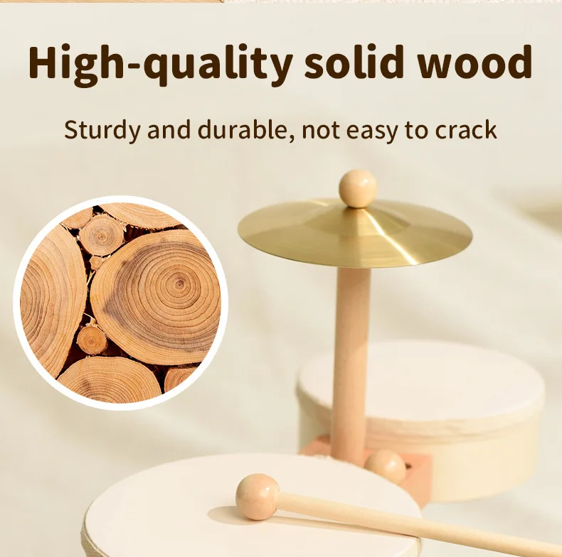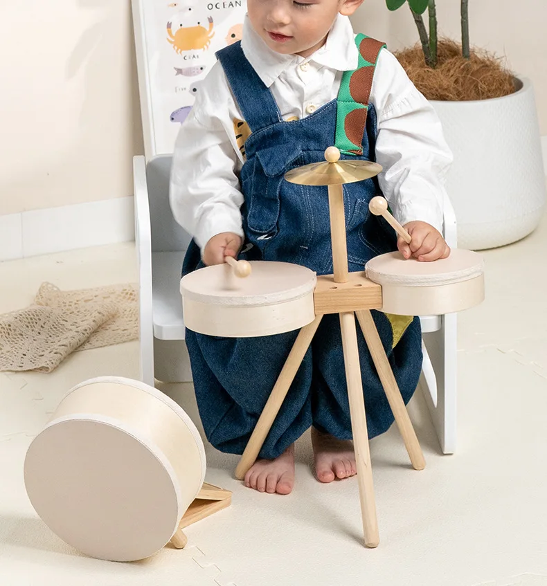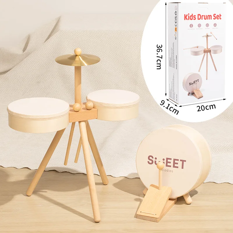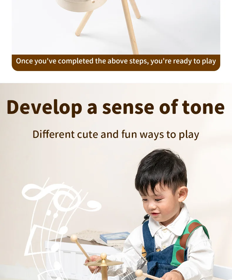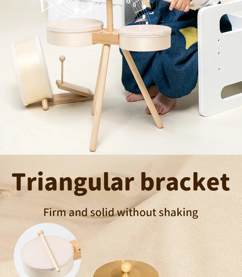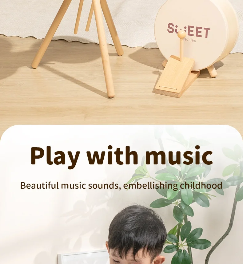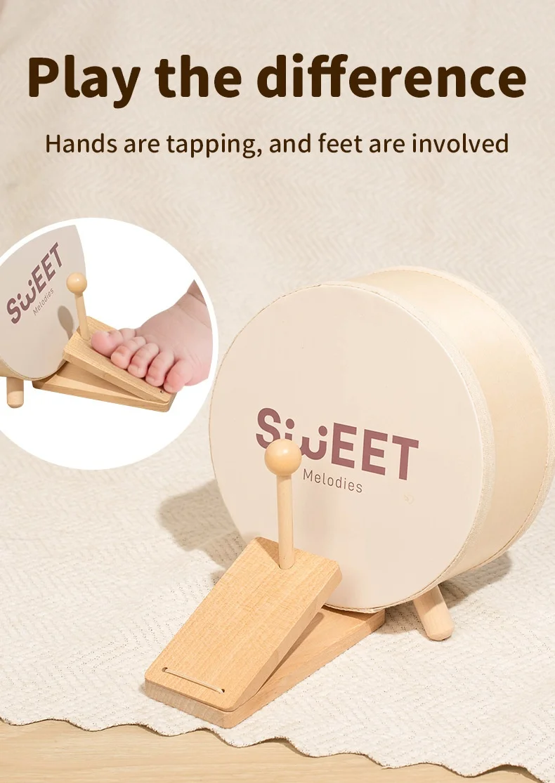 آلات موسيقية مونتيسوري، لعبة إيقاع، مجموعة طبول خشبية للرضع مع حامل ودواسة قدم قابلة للتشغيل، لعبة خشبية تعليمية للأطفال