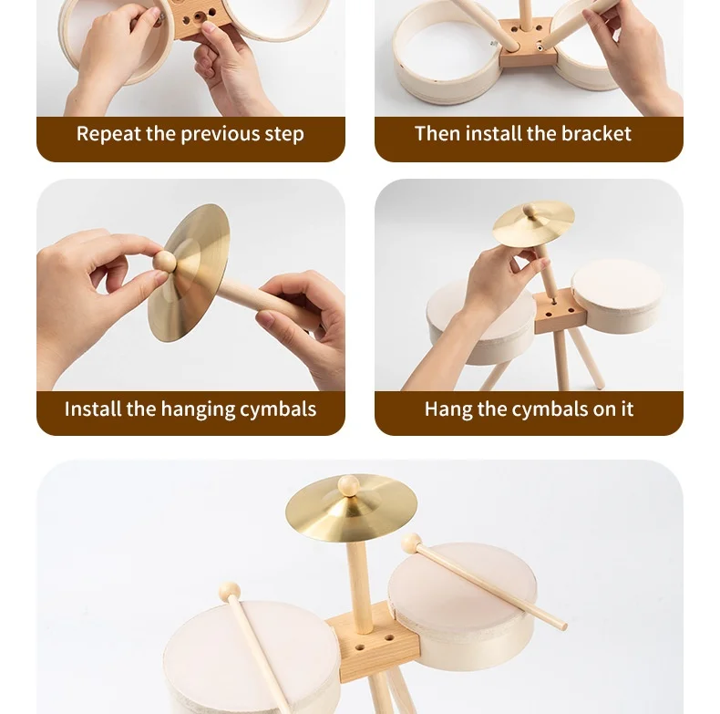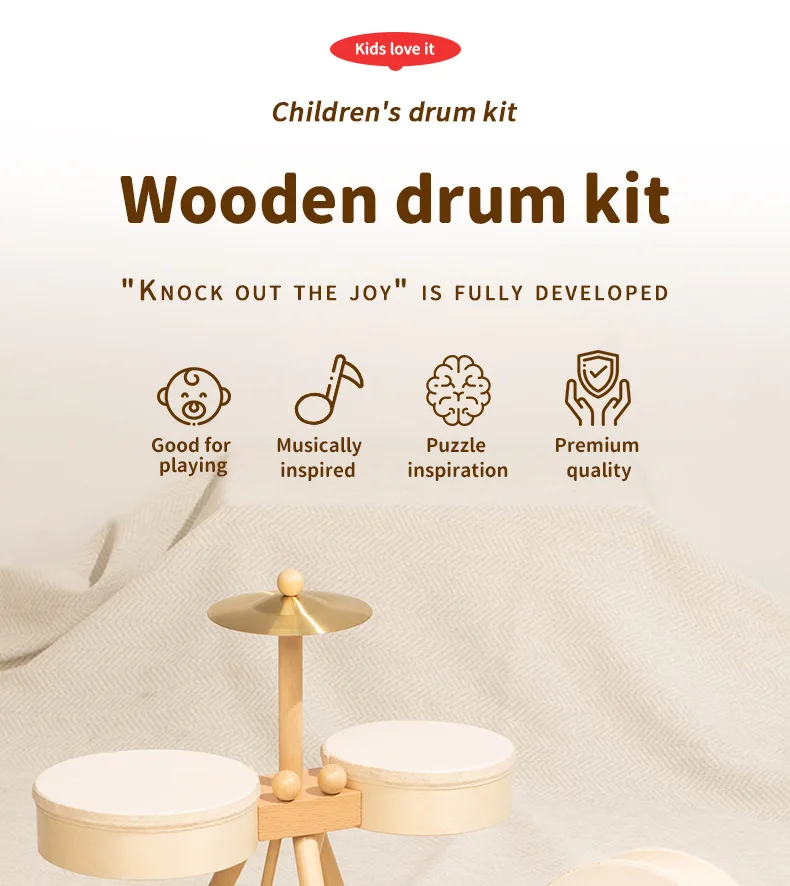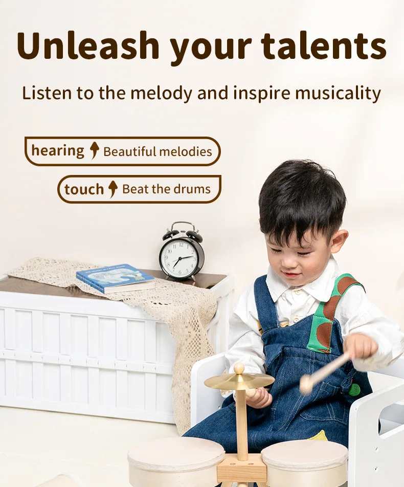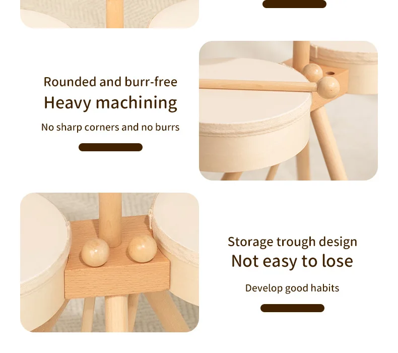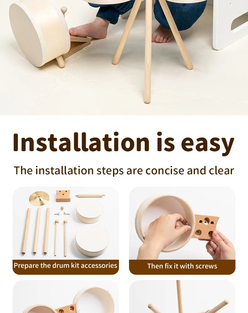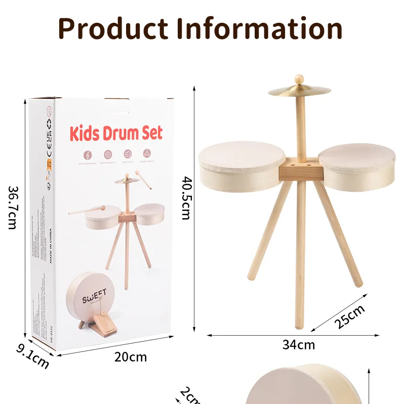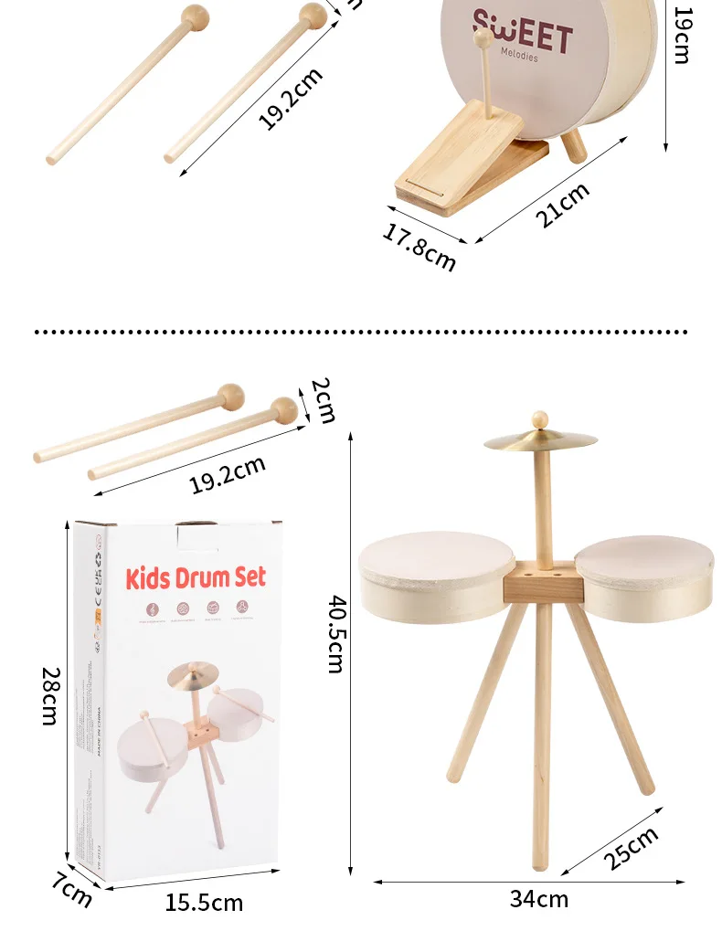 آلات موسيقية مونتيسوري، لعبة إيقاع، مجموعة طبول خشبية للرضع مع حامل ودواسة قدم قابلة للتشغيل، لعبة خشبية تعليمية للأطفال
