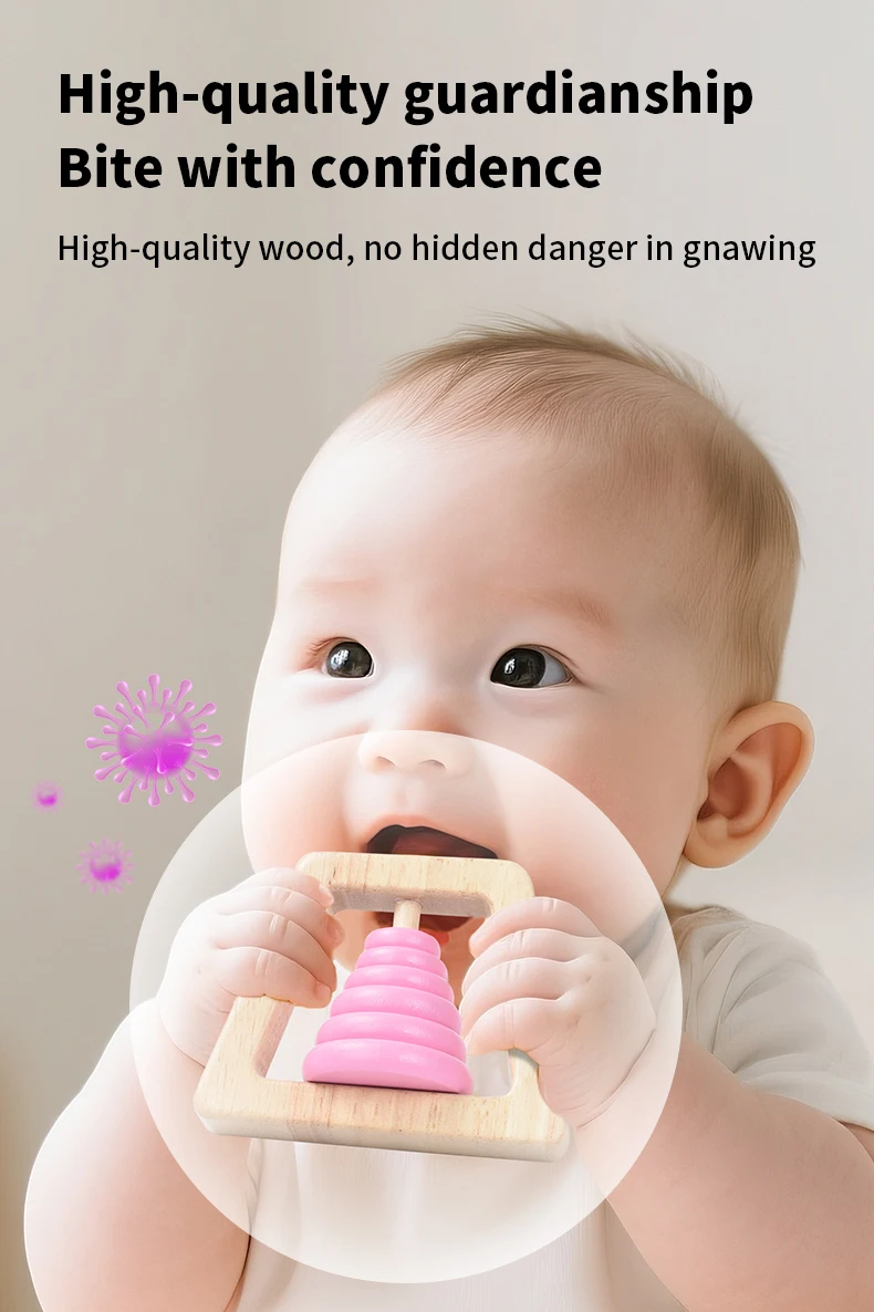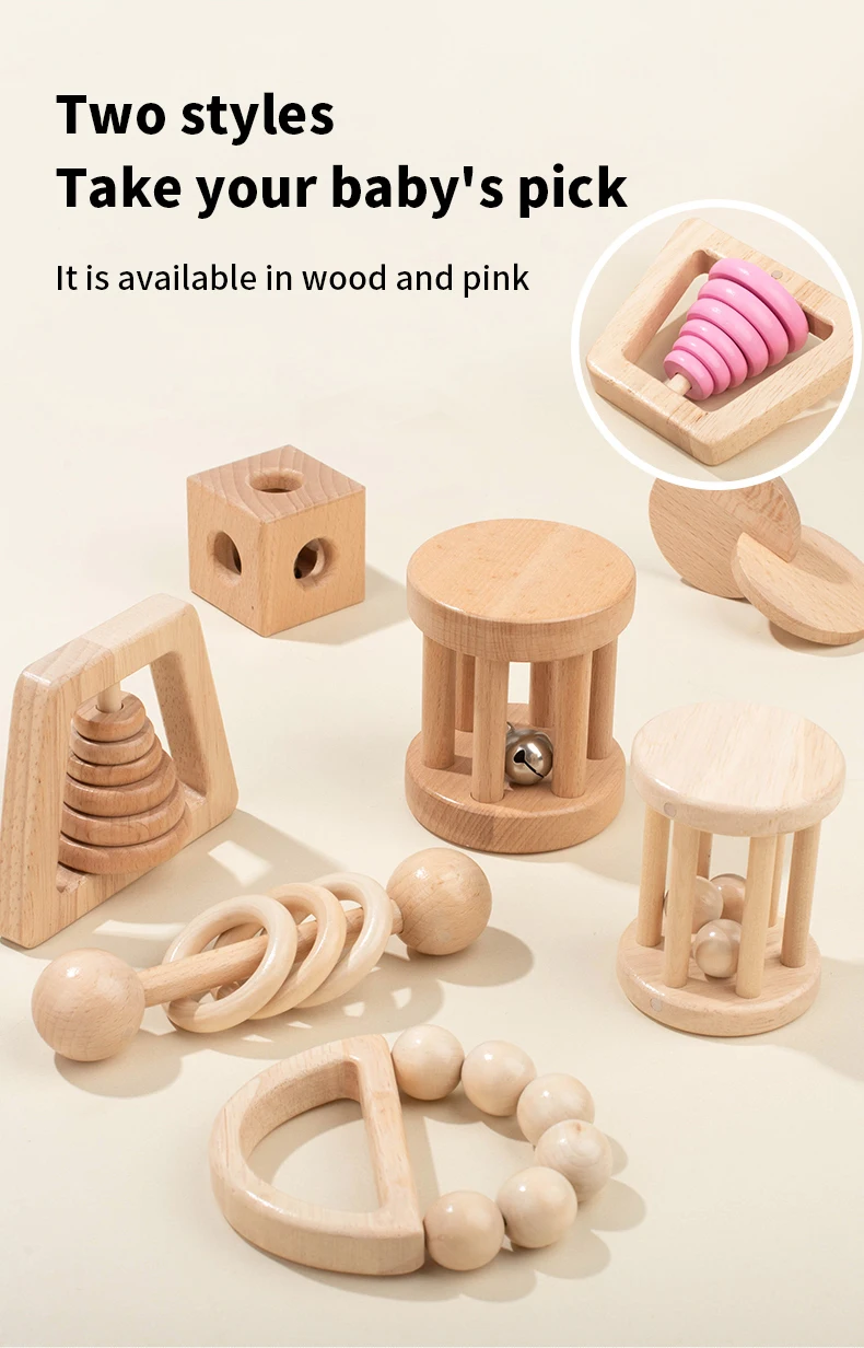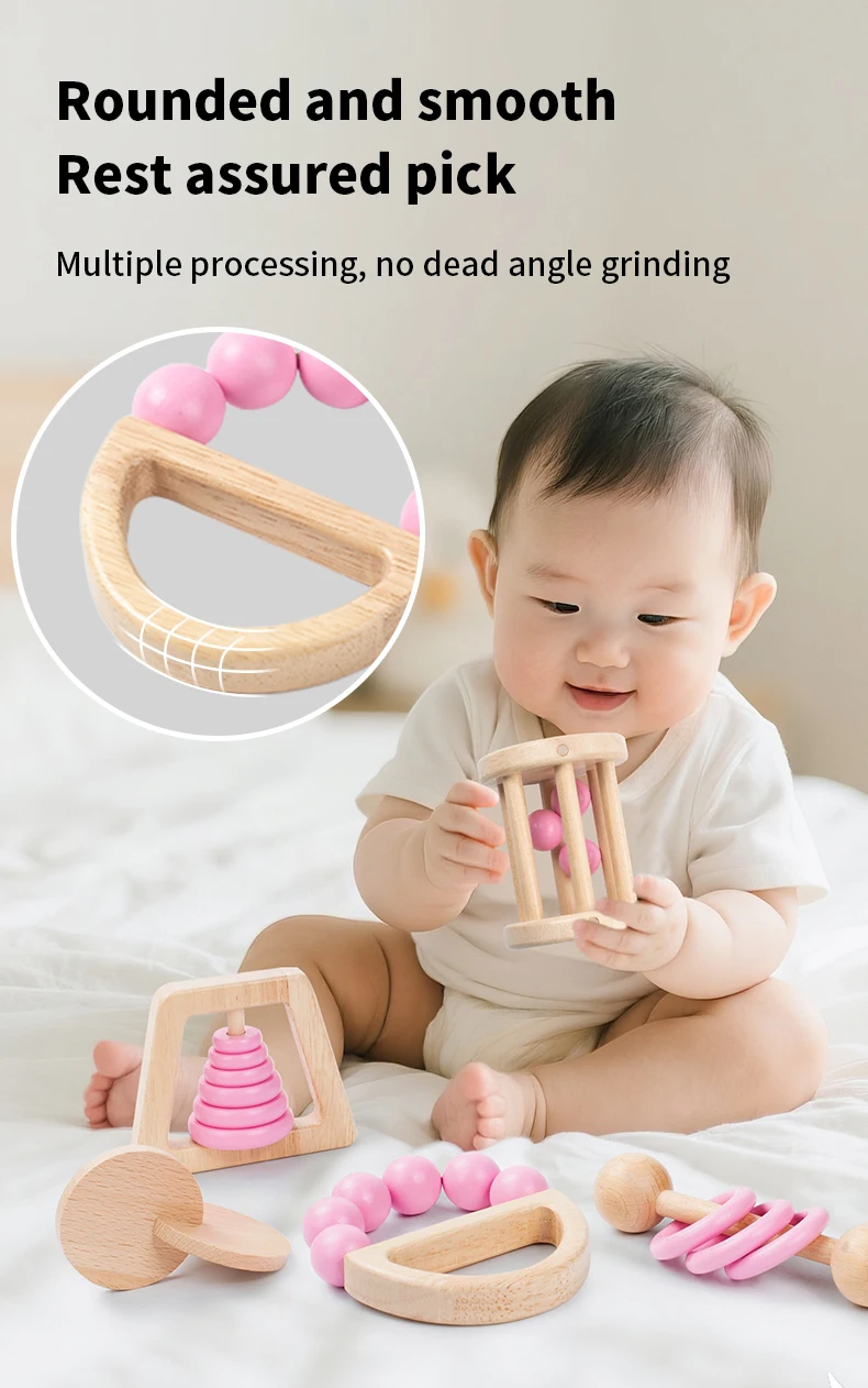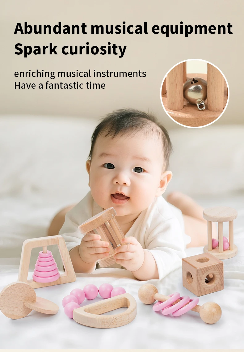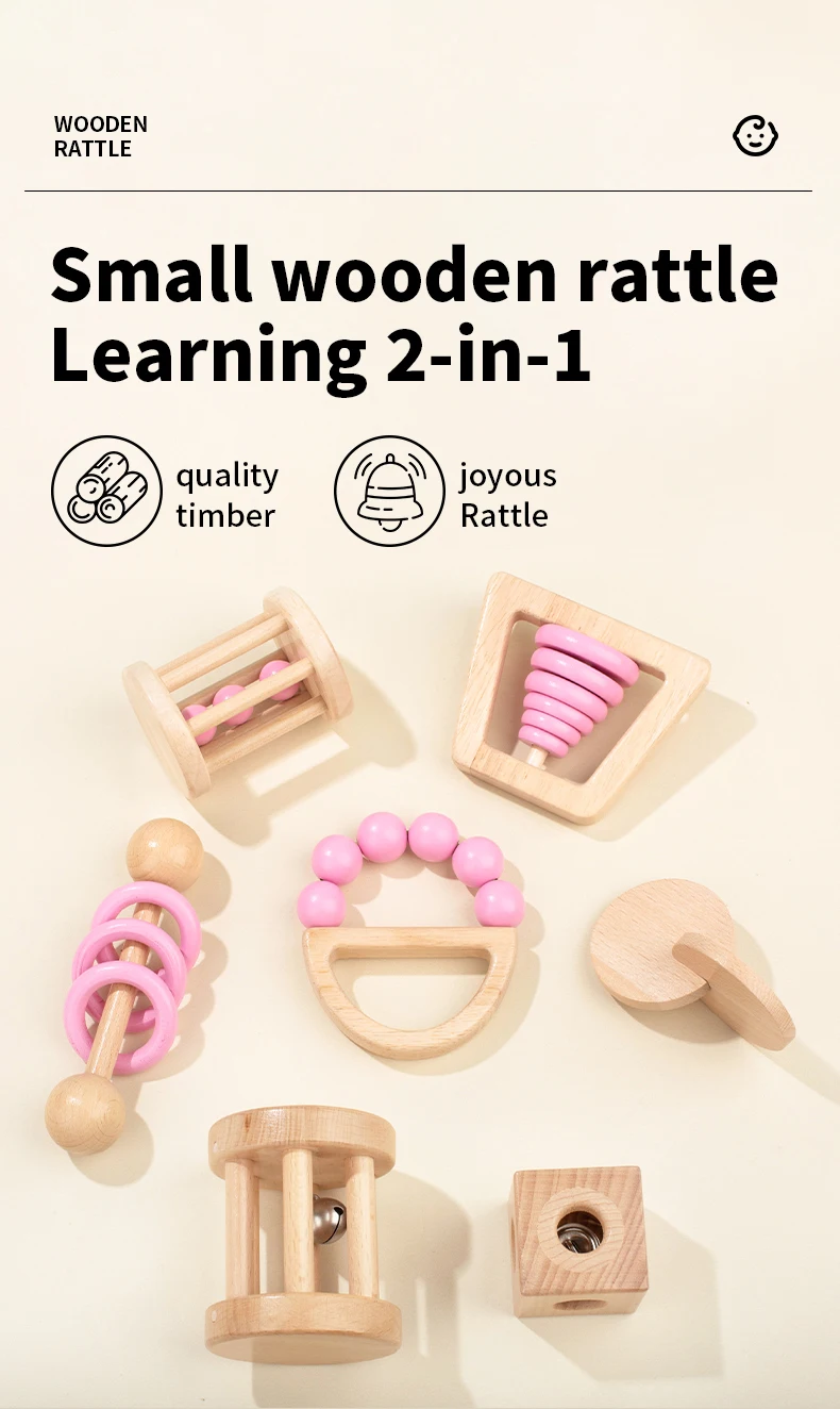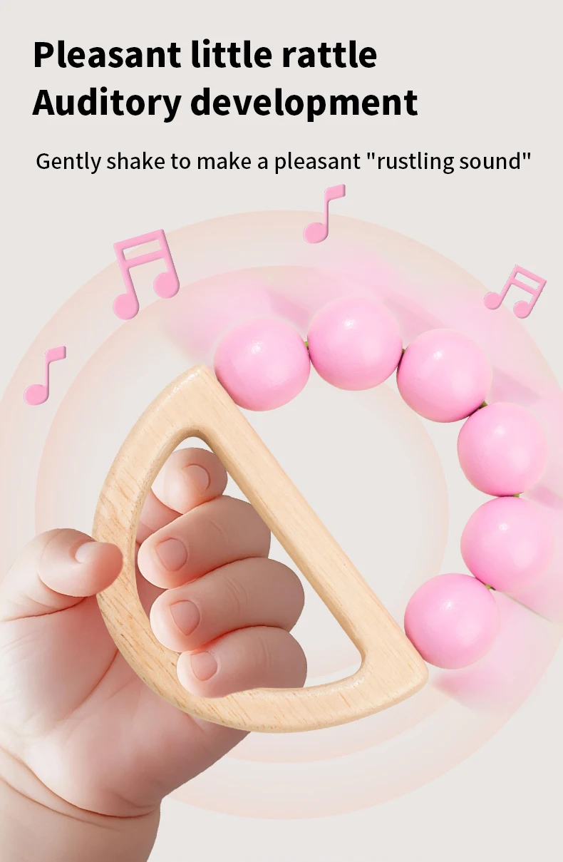 ألعاب مونتيسوري مجموعة ألعاب رضيع خشبية آمنة لعبة هزازة جرس يدوي هدية للإمساك تناسب الرضع الذكور والإناث Jeu Hochet Bebe