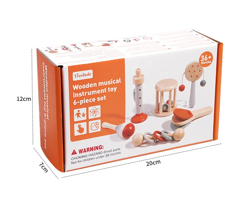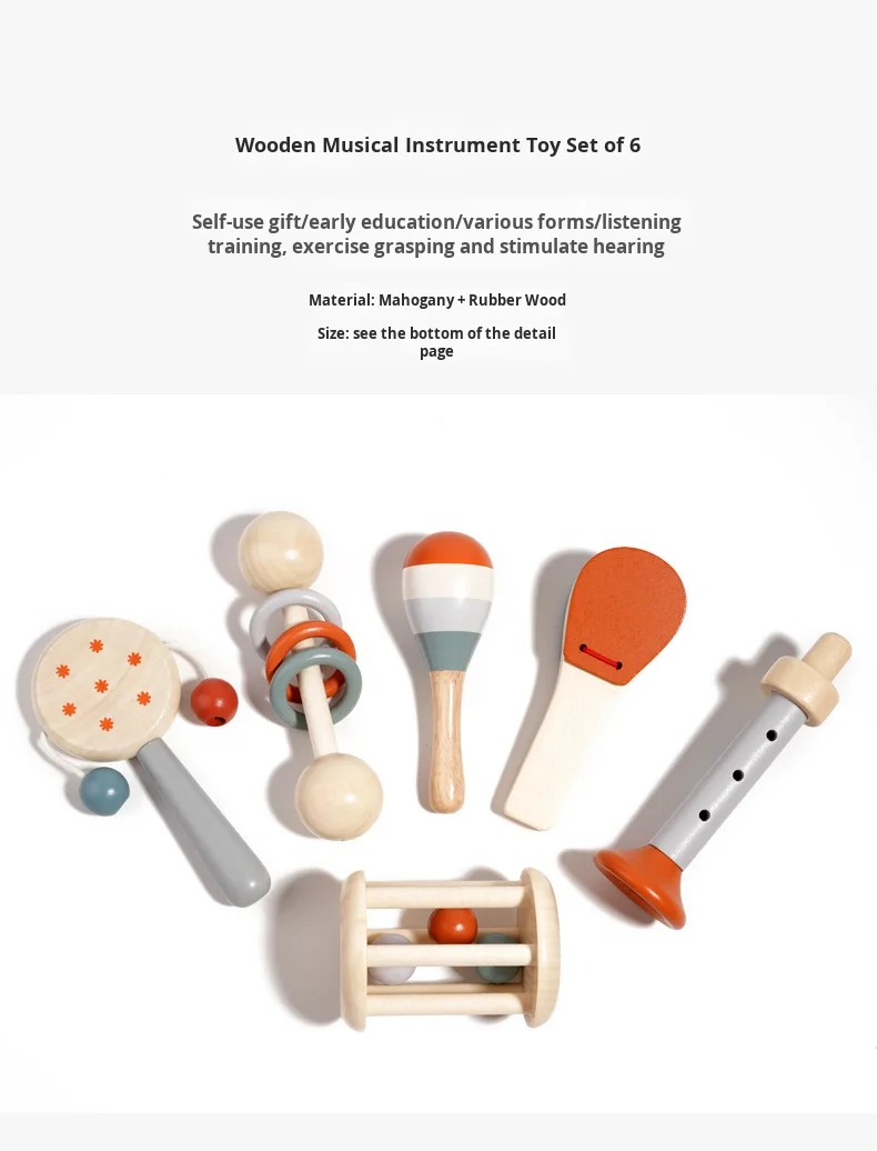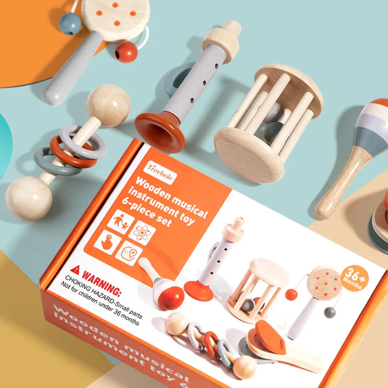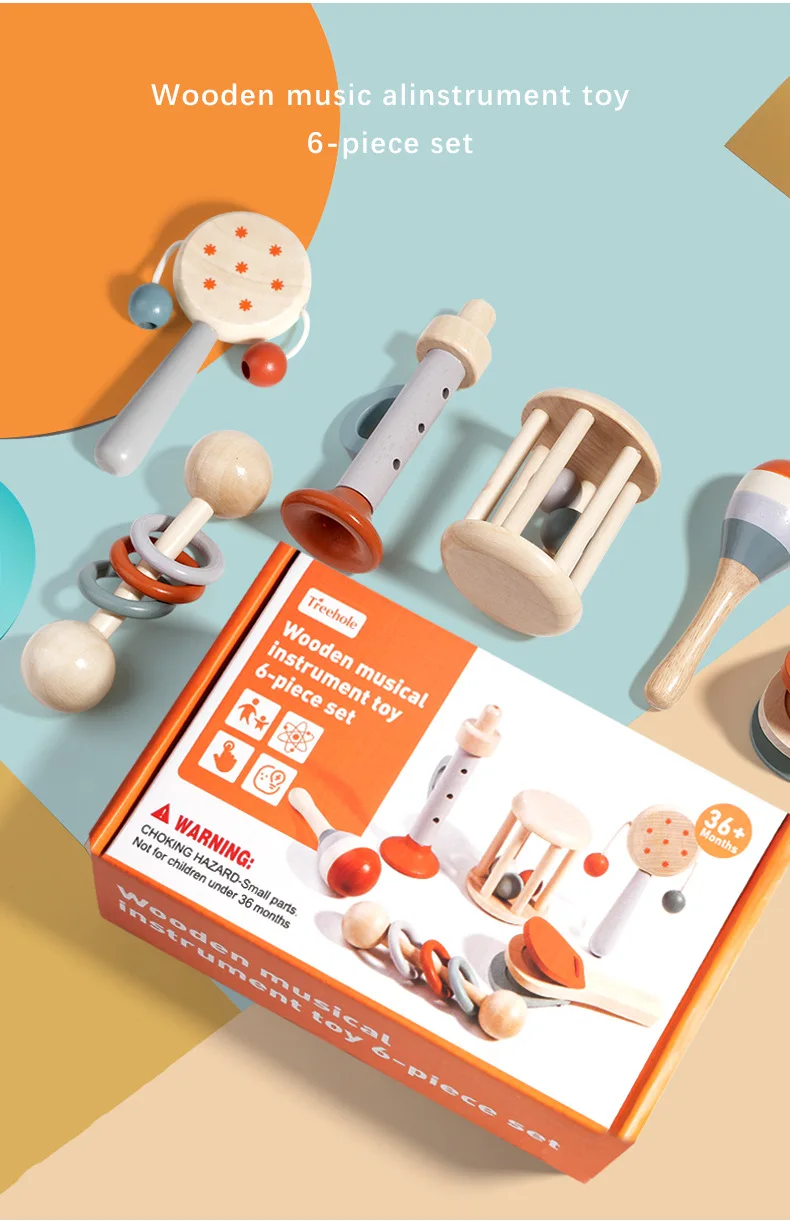 مجموعة جديدة مكونة من 6 قطع من الآلات الموسيقية التعليمية للرضع، راتل خشبي، ألعاب حسية موسيقية خشبية للأطفال الصغار