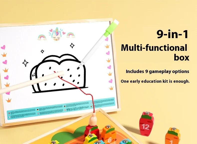 جديد، صندوق خشبي متعدد الوظائف ثنائي الوجه بـ 9 وظائف، لعبة تعليمية مونتيسوري مبكرة جديدة للأطفال، ألعاب صيد