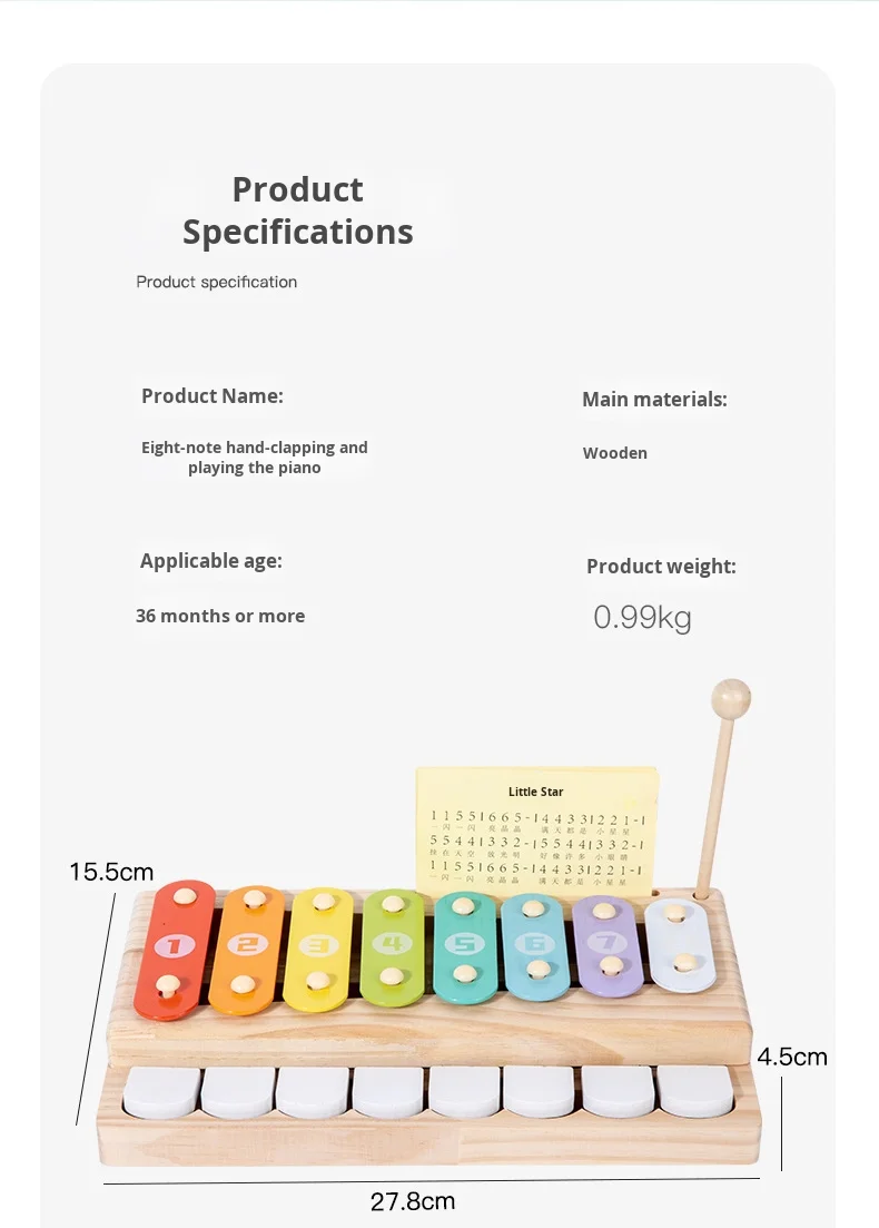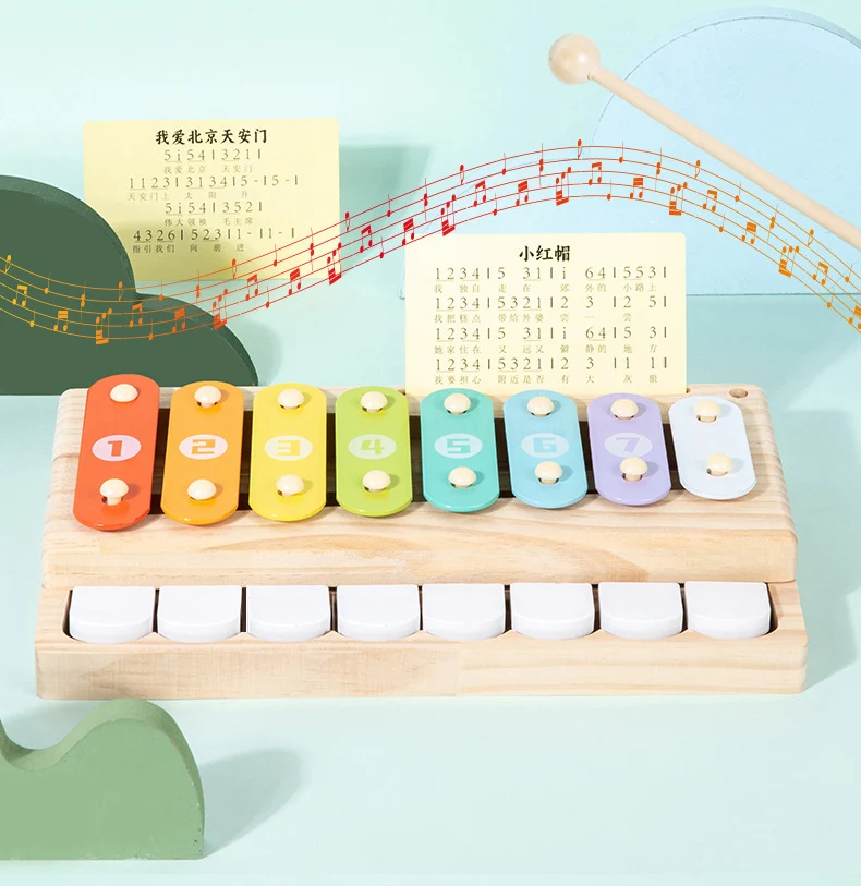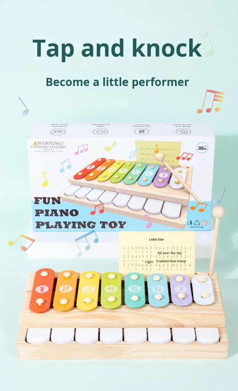 New Baby Musical Instrument Toys 2-in-1 Wooden Hand-Knocking Piano Toy Xylophone for Kids Montessori Education Musical Toys