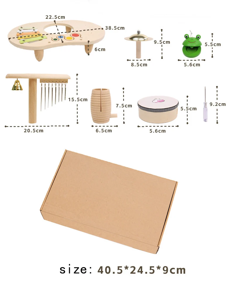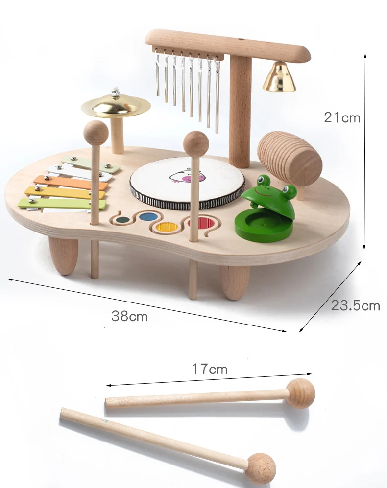 جديد ألعاب الأطفال طقم طبول خشبية أداة موسيقية لطبل الرضع ألعاب تعليمية موسيقية هدايا حسب منهج مونتيسوري مع أجراس رياح