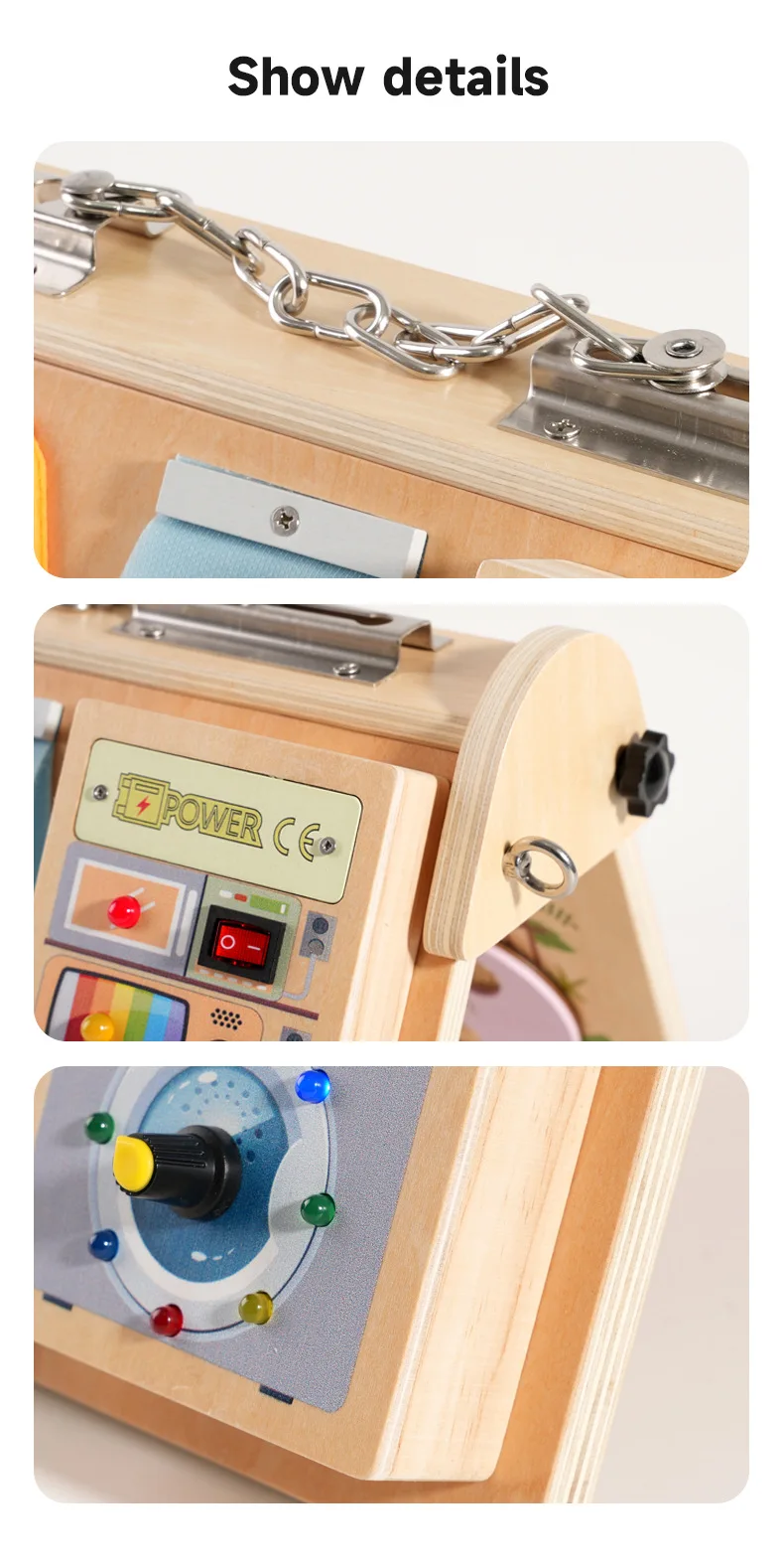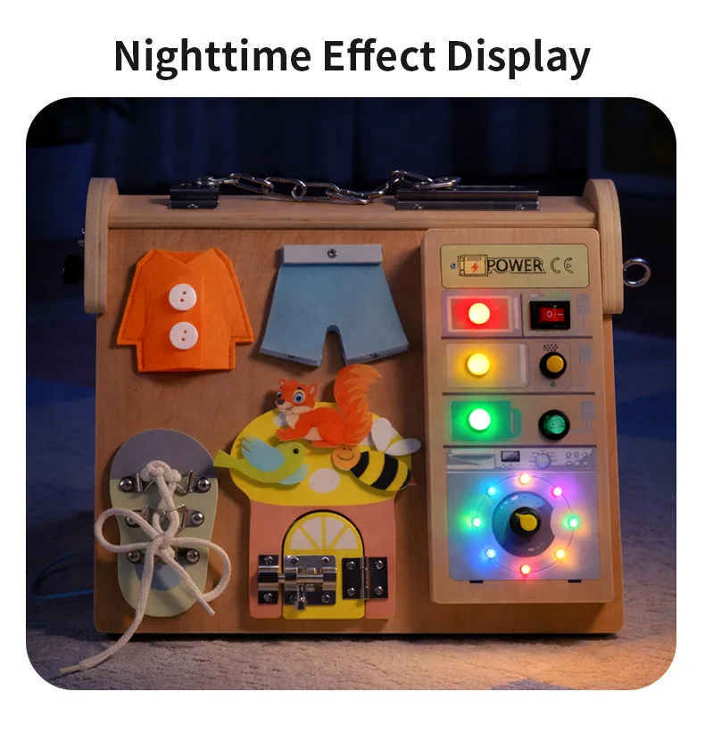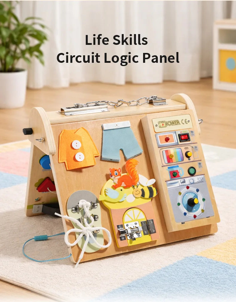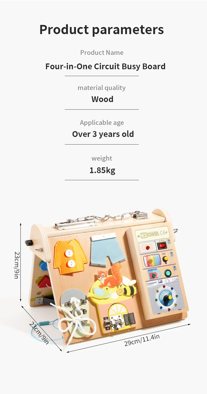لوحة أنشطة كهربائية خشبية متعددة الوظائف للأطفال من شركة Qiaike، ألعاب تعليمية مونتيسوري خشبية، لوحة أنشطة متكاملة (أربعة في واحد) وأدوات تدريسية