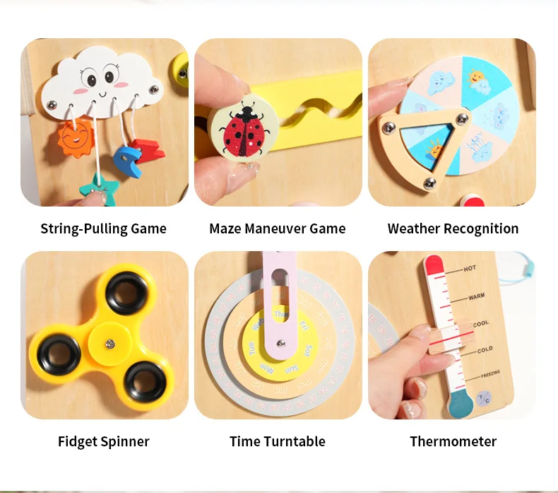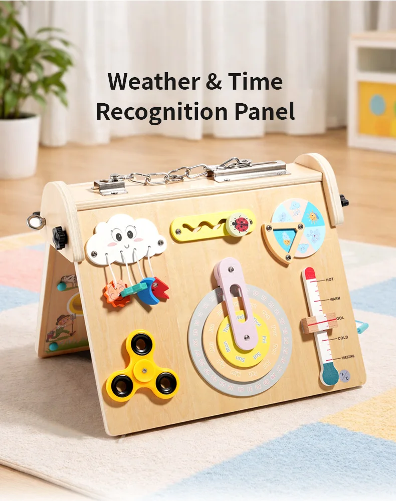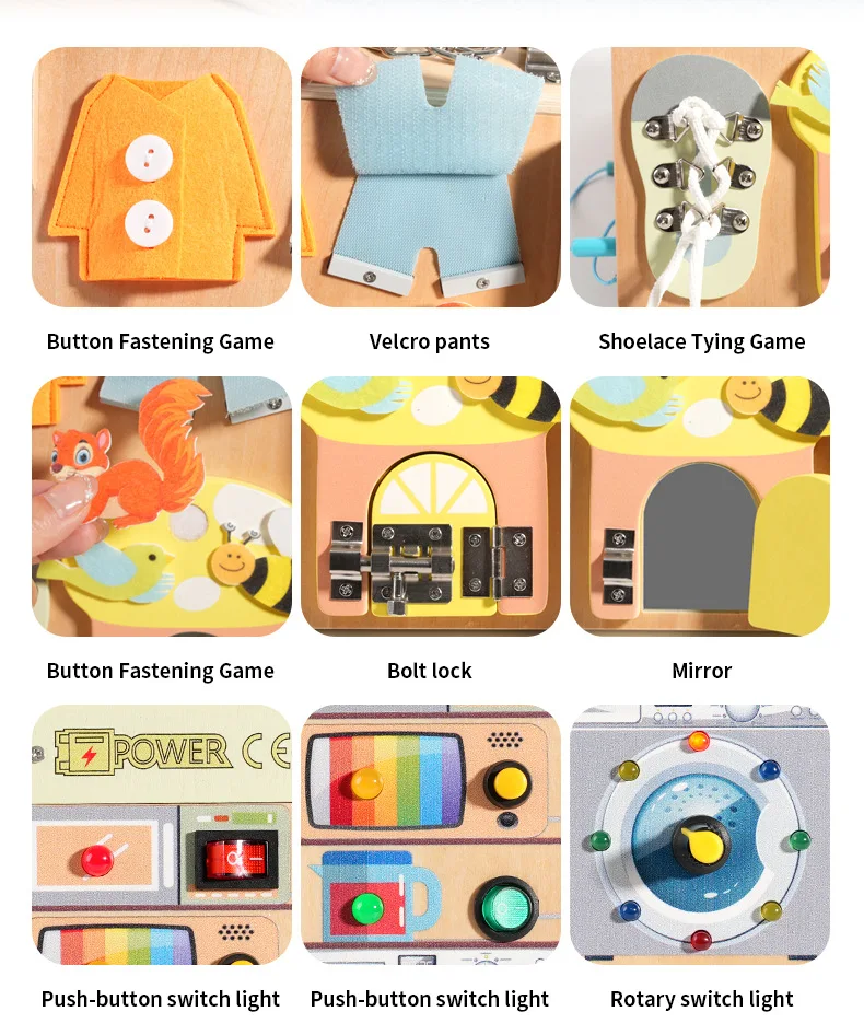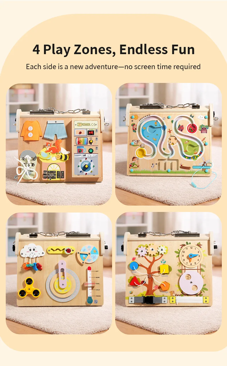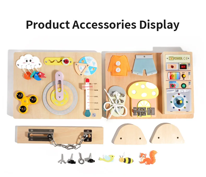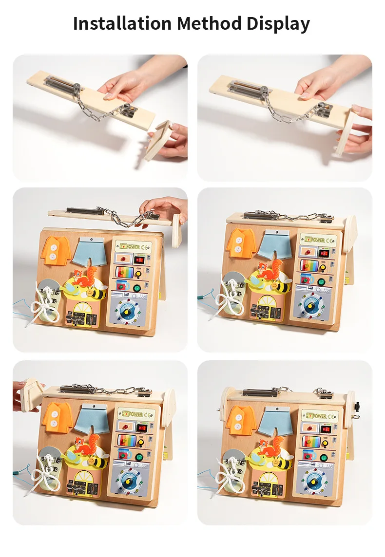 لوحة أنشطة كهربائية خشبية متعددة الوظائف للأطفال من شركة Qiaike، ألعاب تعليمية مونتيسوري خشبية، لوحة أنشطة متكاملة (أربعة في واحد) وأدوات تدريسية
