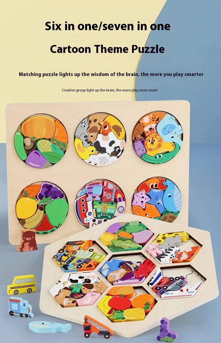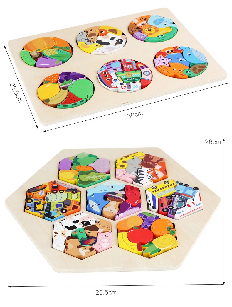 جملة ألغاز خشبية ثلاثية الأبعاد قطع تجميع ألغاز تعليمية على شكل حيوانات وفواكه ووسائل نقل ألعاب تعليمية وهدايا للأطفال