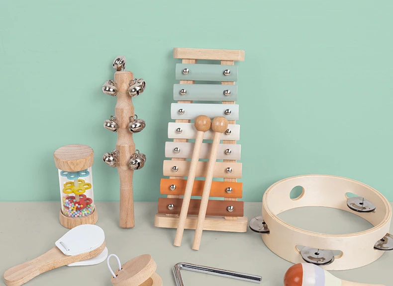 جملة مجموعة آلات موسيقية خشبية تعليمية لوحة ماريمبا وطبل نموذجية لأطفال مرحلة التعليم المبكر ألعاب موسيقية لمونتيسوري وللرضع
