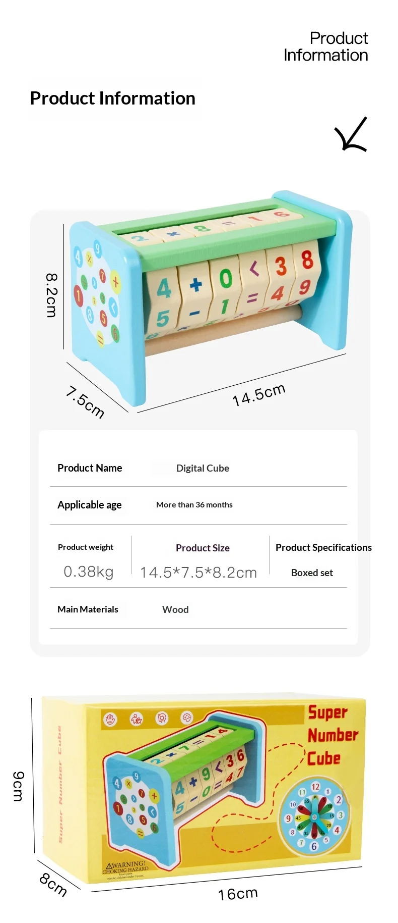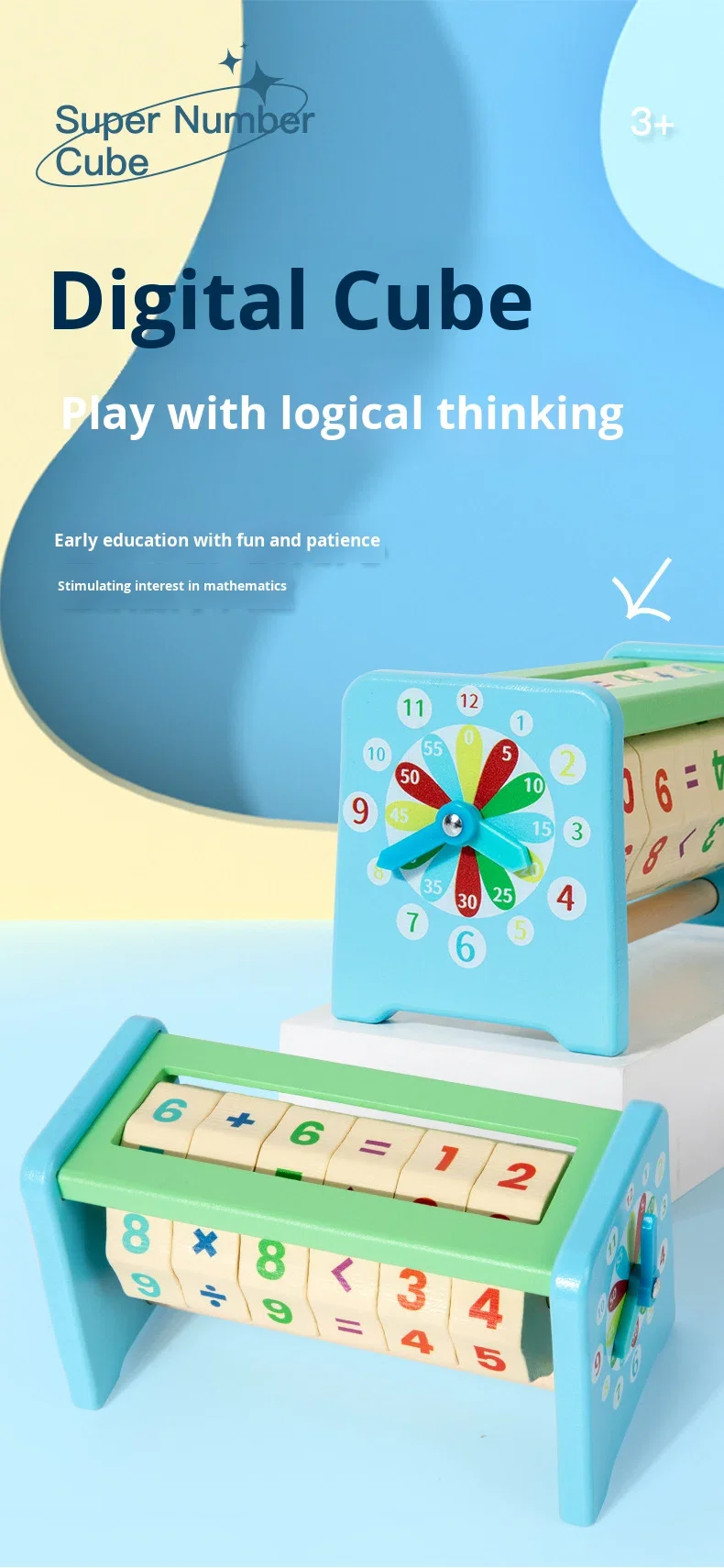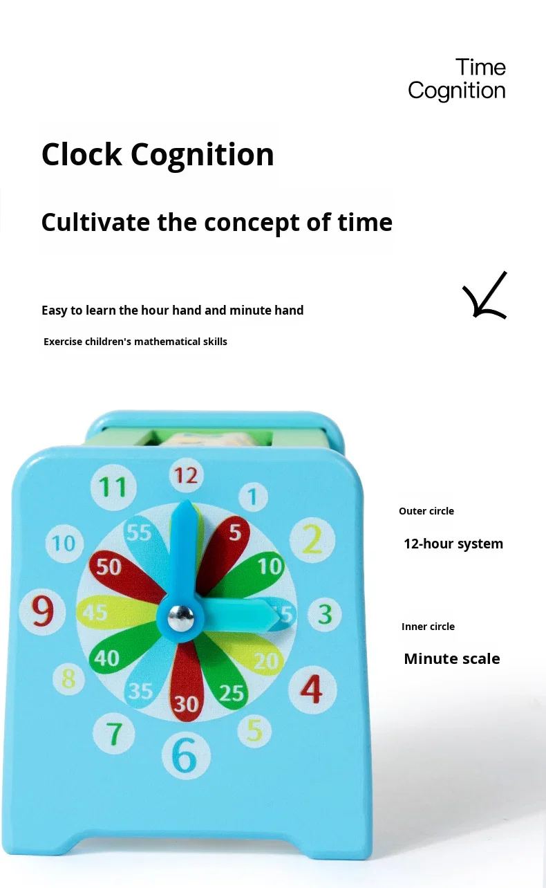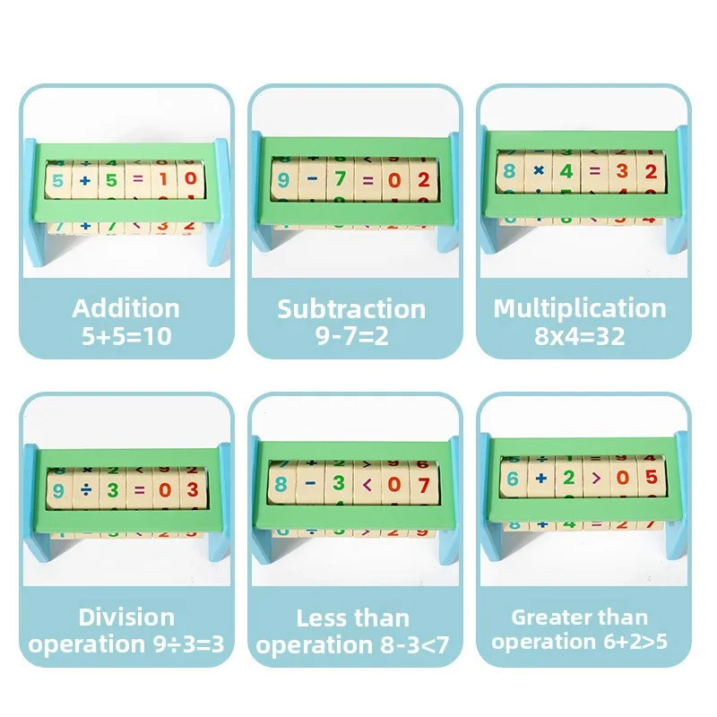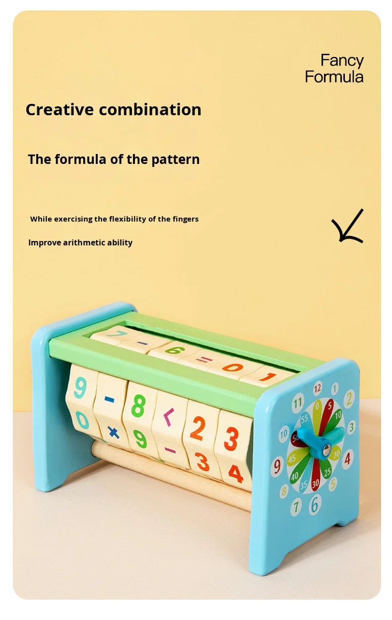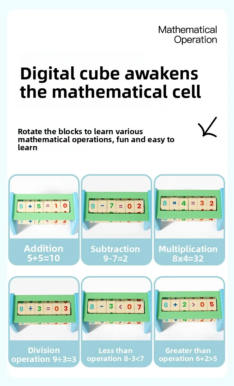 مكعب رياضيات خشبي رقمي مع ساعة، أداة تعليم مبكر، مكعب رياضيات خشبي، ألعاب رياضيات خشبية لتحفيز الدماغ وتنمية المنطق والجمع والقسمة.