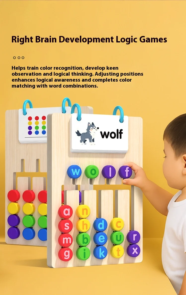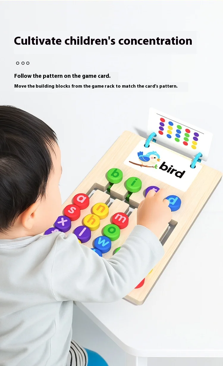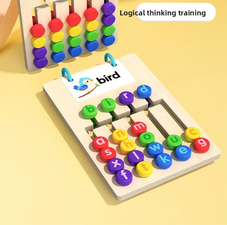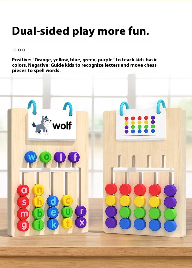 Toyiau addysgol i blant: bwyd llythrennau coed pum-liw ar ddwy ochr, gêm ysgwyddo addysgol, posl slidio, toyiau Montessori i blant.
