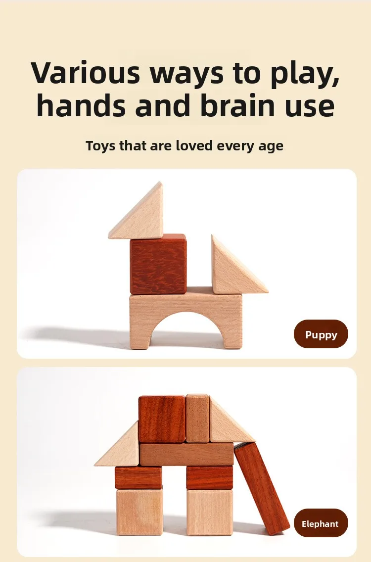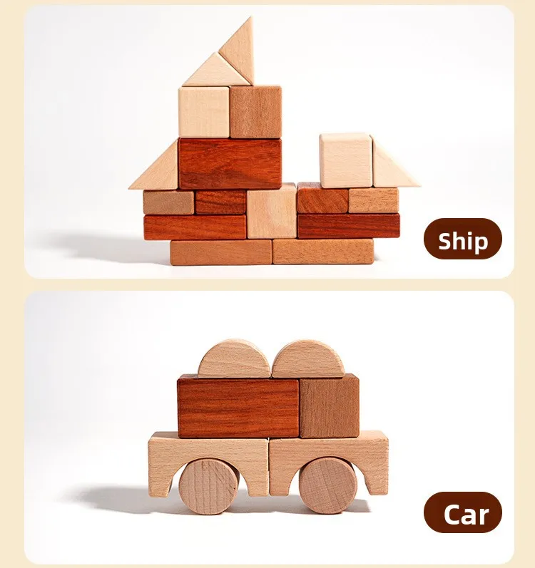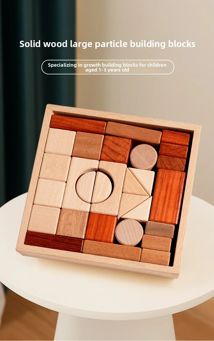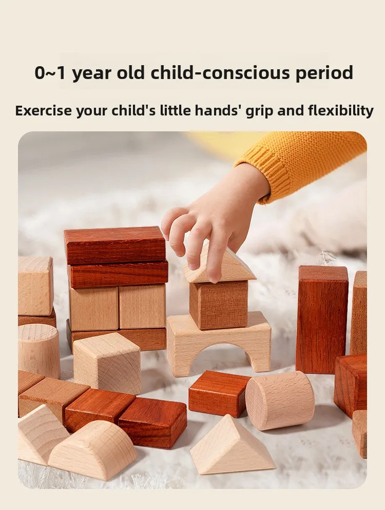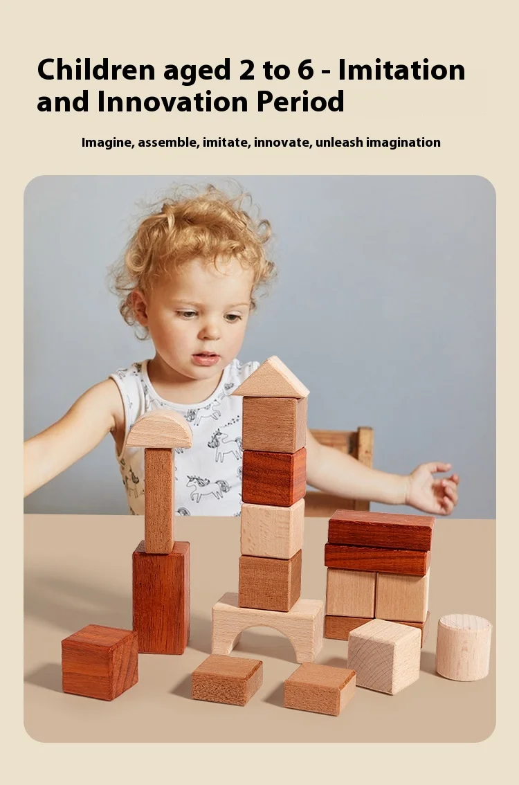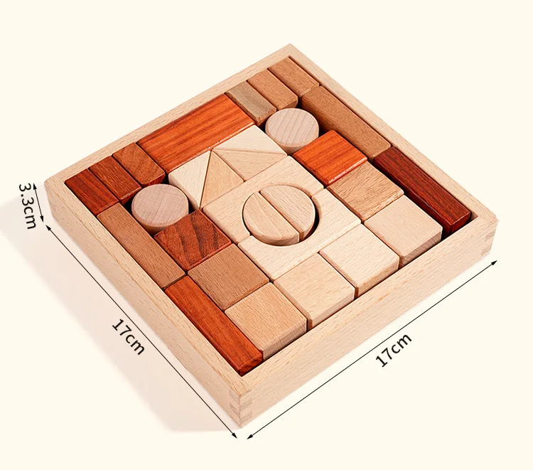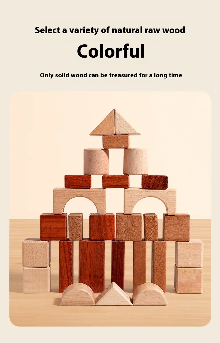 Großes Holzbausteine-Set mit Aufbewahrungstablett, Frühförderung, kreatives Spielen, Montessori-Kinder Spielzeug, Stapelsteine, Schlossbau