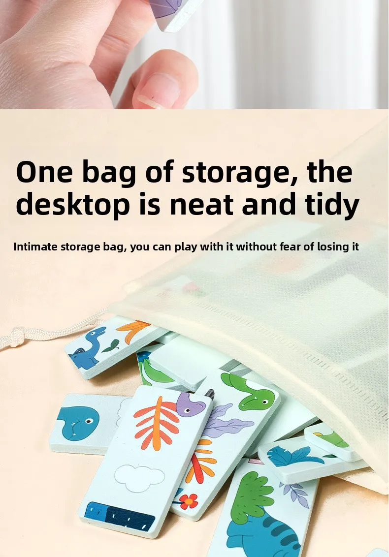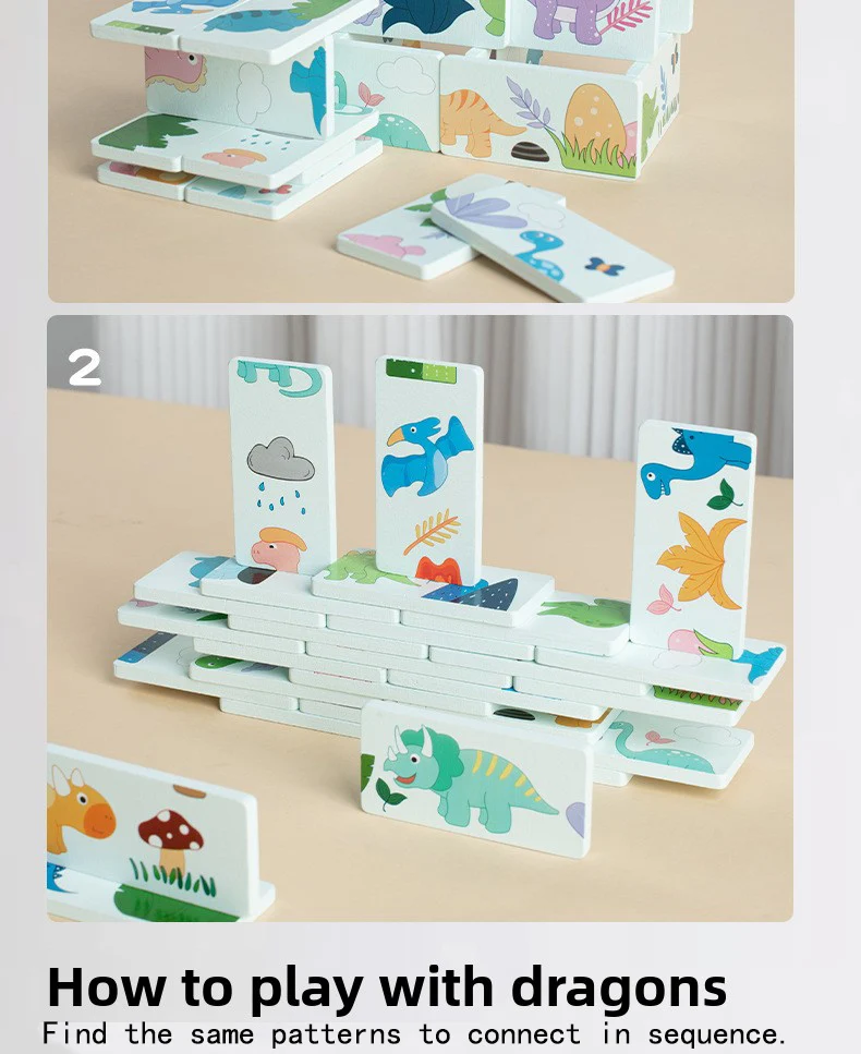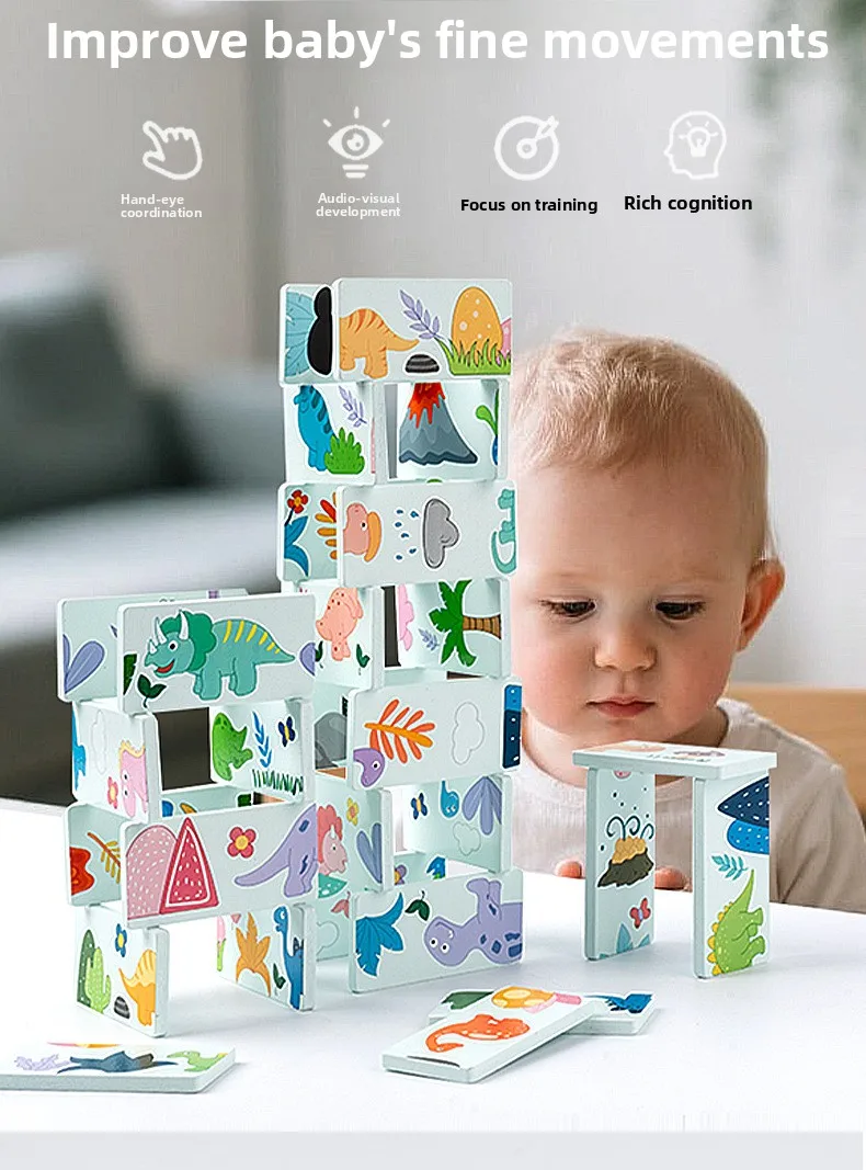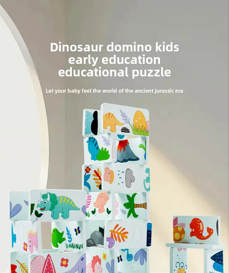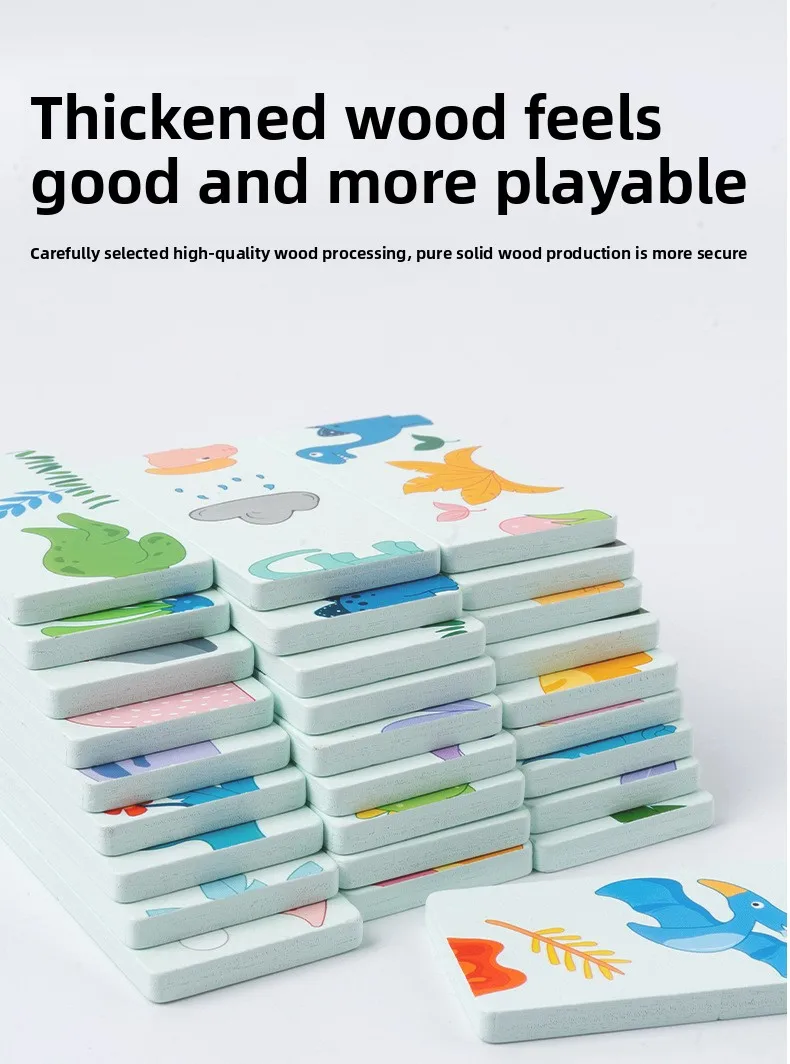 Montessori pädagogisches Dinosaurier-Erkennungs-Domino-Puzzle zum Zuordnen, zur Schulung der Feinmotorik, stapelbare Bausteine aus Holz