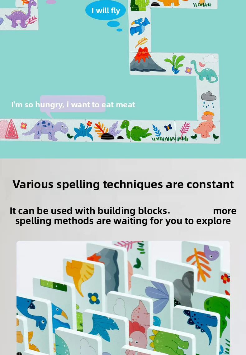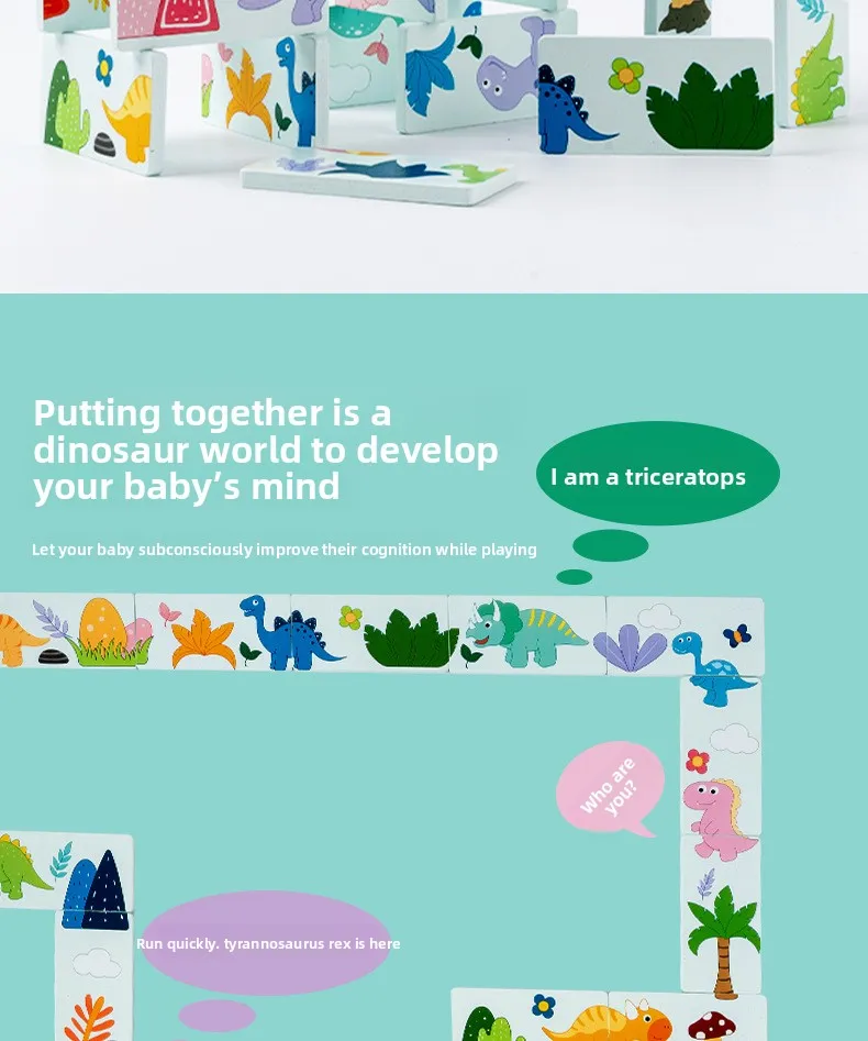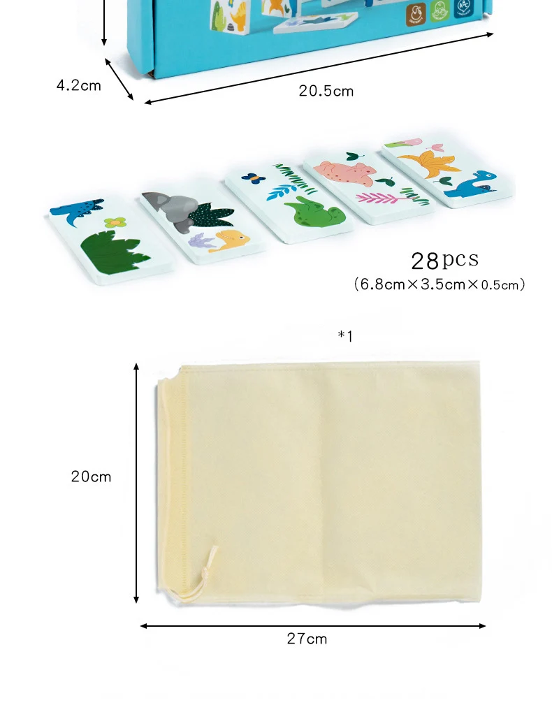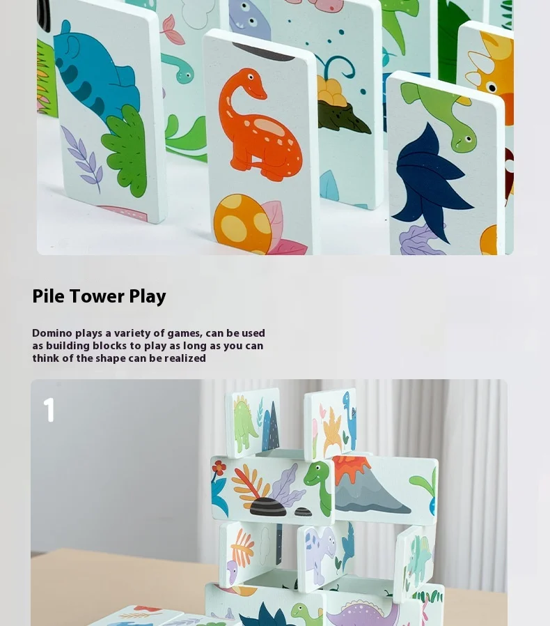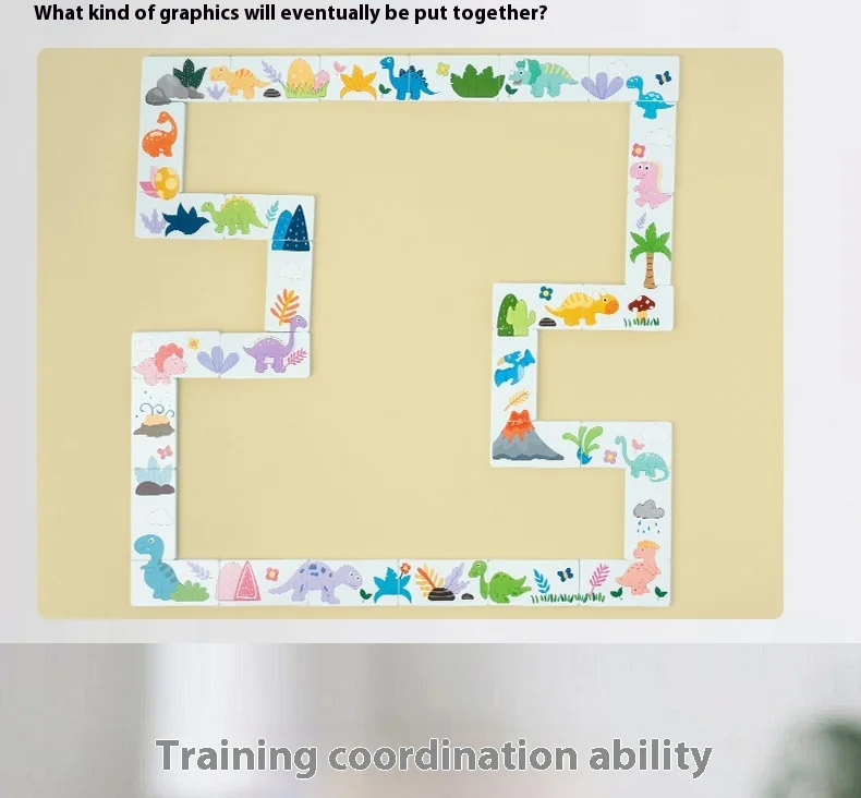 Montessori pädagogisches Dinosaurier-Erkennungs-Domino-Puzzle zum Zuordnen, zur Schulung der Feinmotorik, stapelbare Bausteine aus Holz
