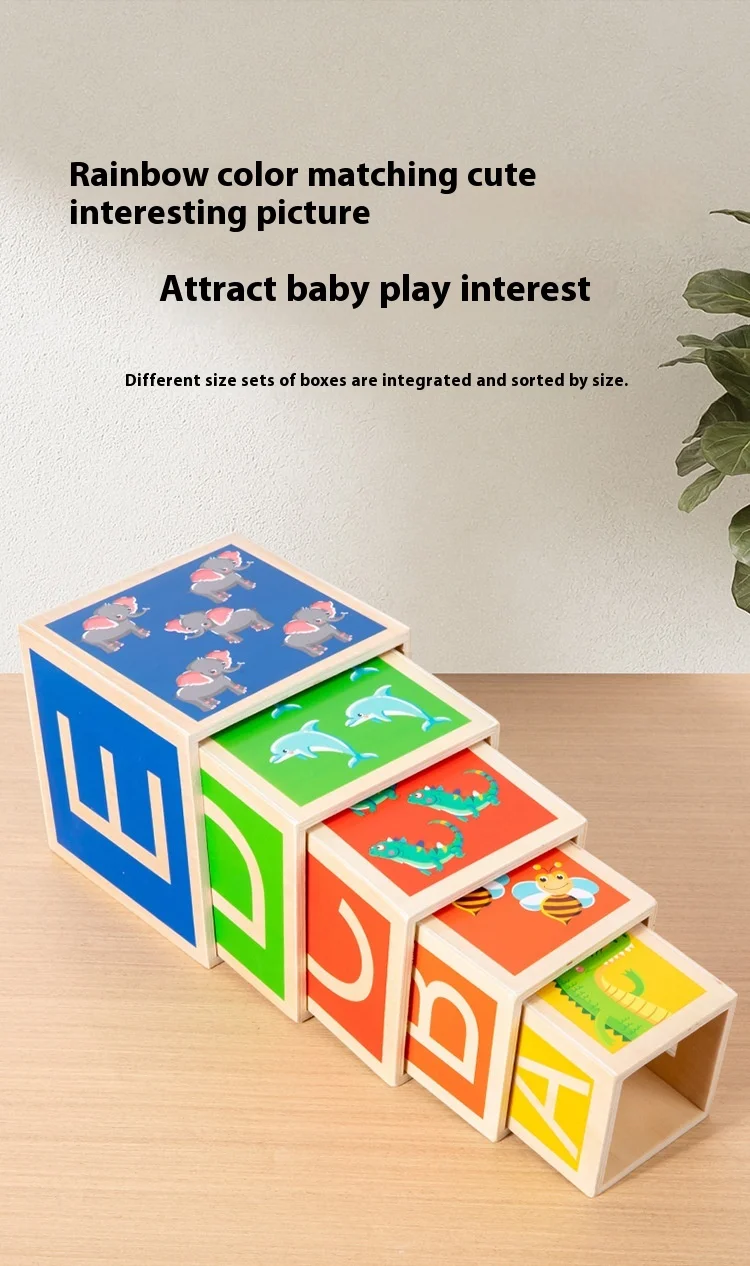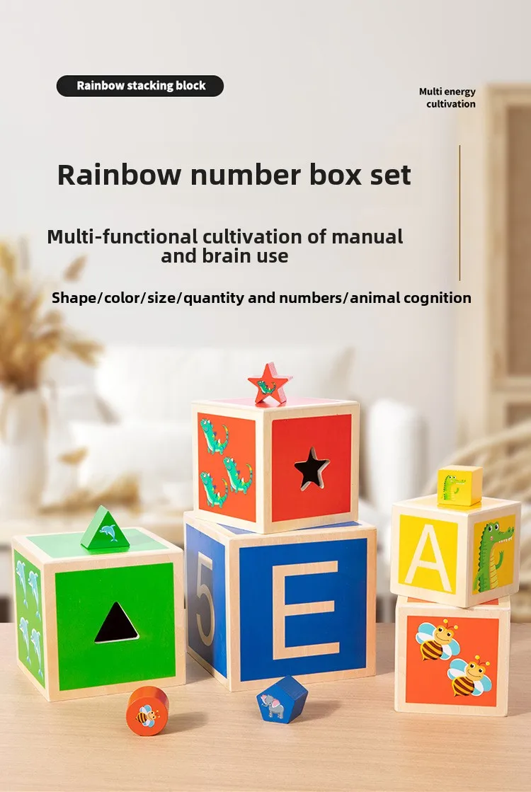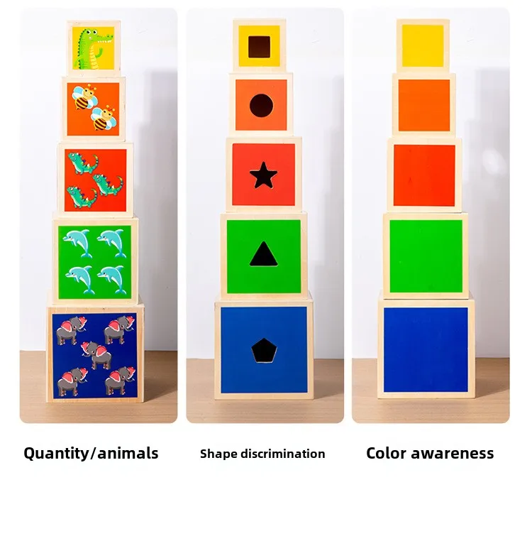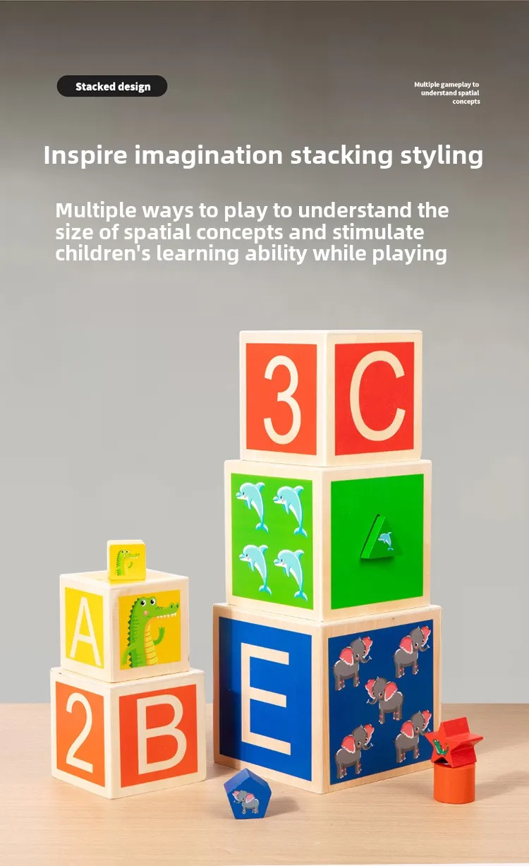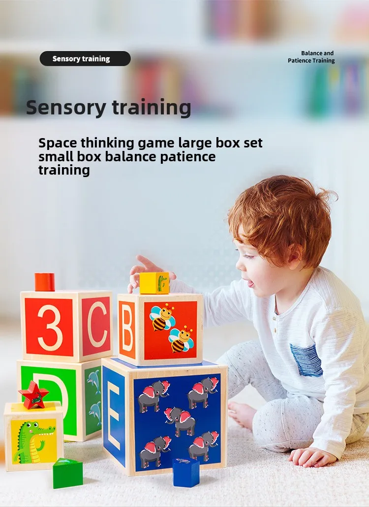 Montessori-Materialien Stapelbare Boxen, Lernwürfel, Bausteine für 2 Jahre alte Babys, Frühkindliche Lernspielwaren zum Sortieren und Stapeln