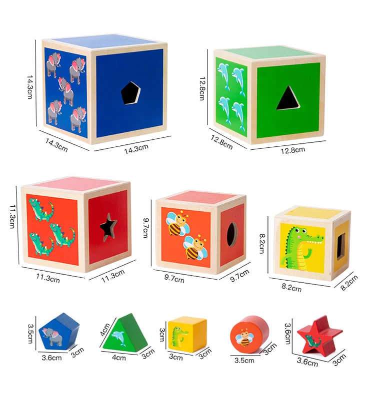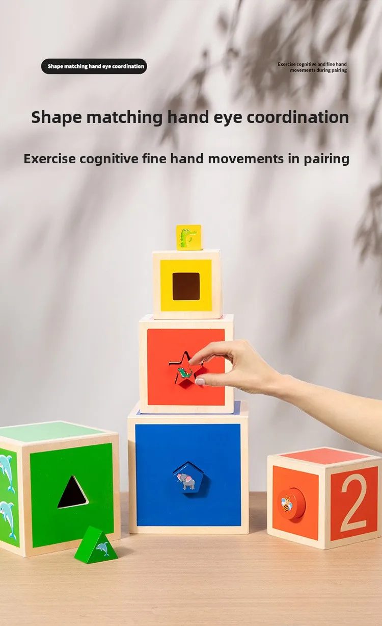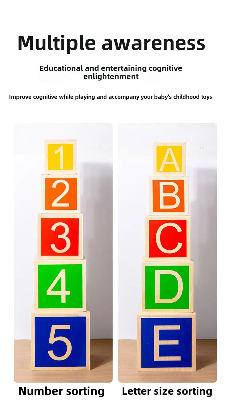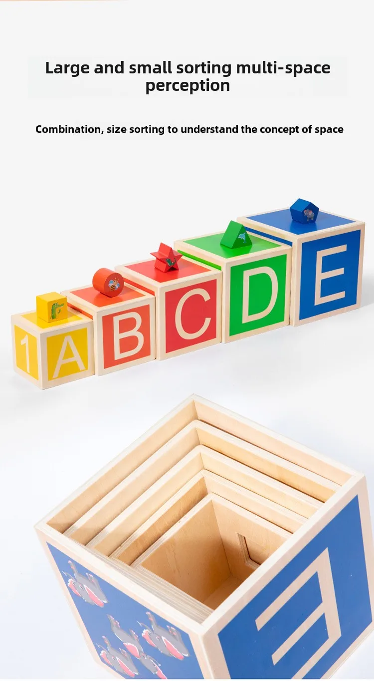 Montessori-Materialien Stapelbare Boxen, Lernwürfel, Bausteine für 2 Jahre alte Babys, Frühkindliche Lernspielwaren zum Sortieren und Stapeln