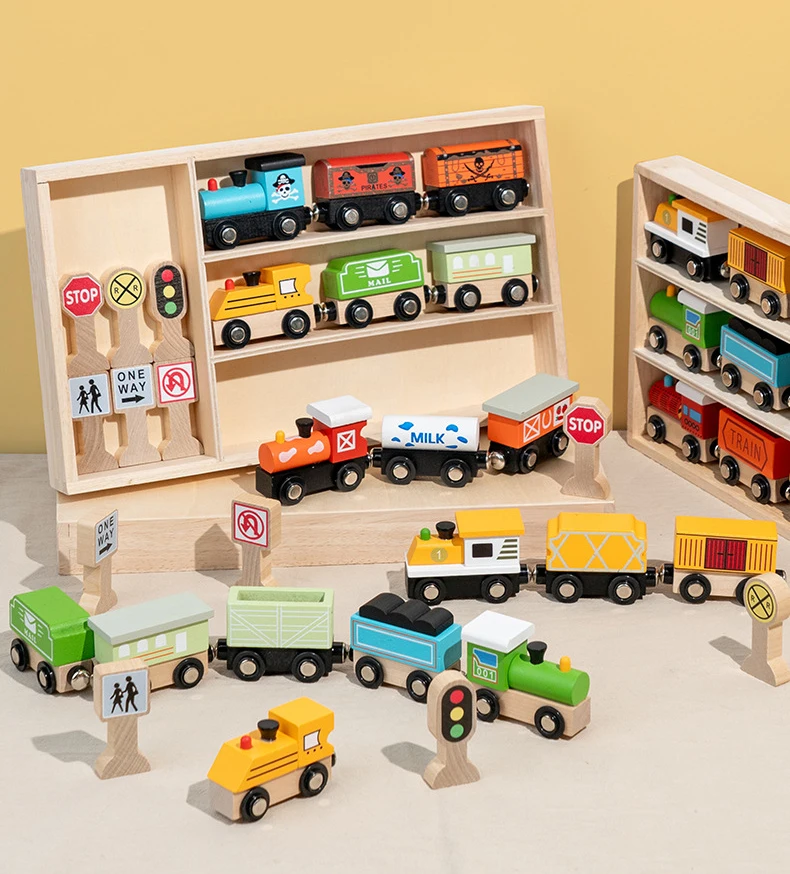 Montessori Holzeisenbahn Spielzeug zur frühen Bildung Interaktive Holzeisenbahn-Sets für Kleinkinder Kinder Jungen Mädchen 3 4 5 Jahre alt