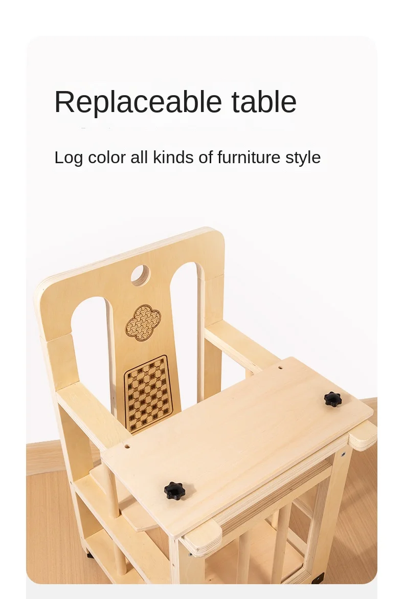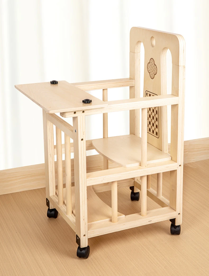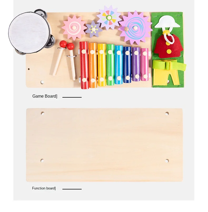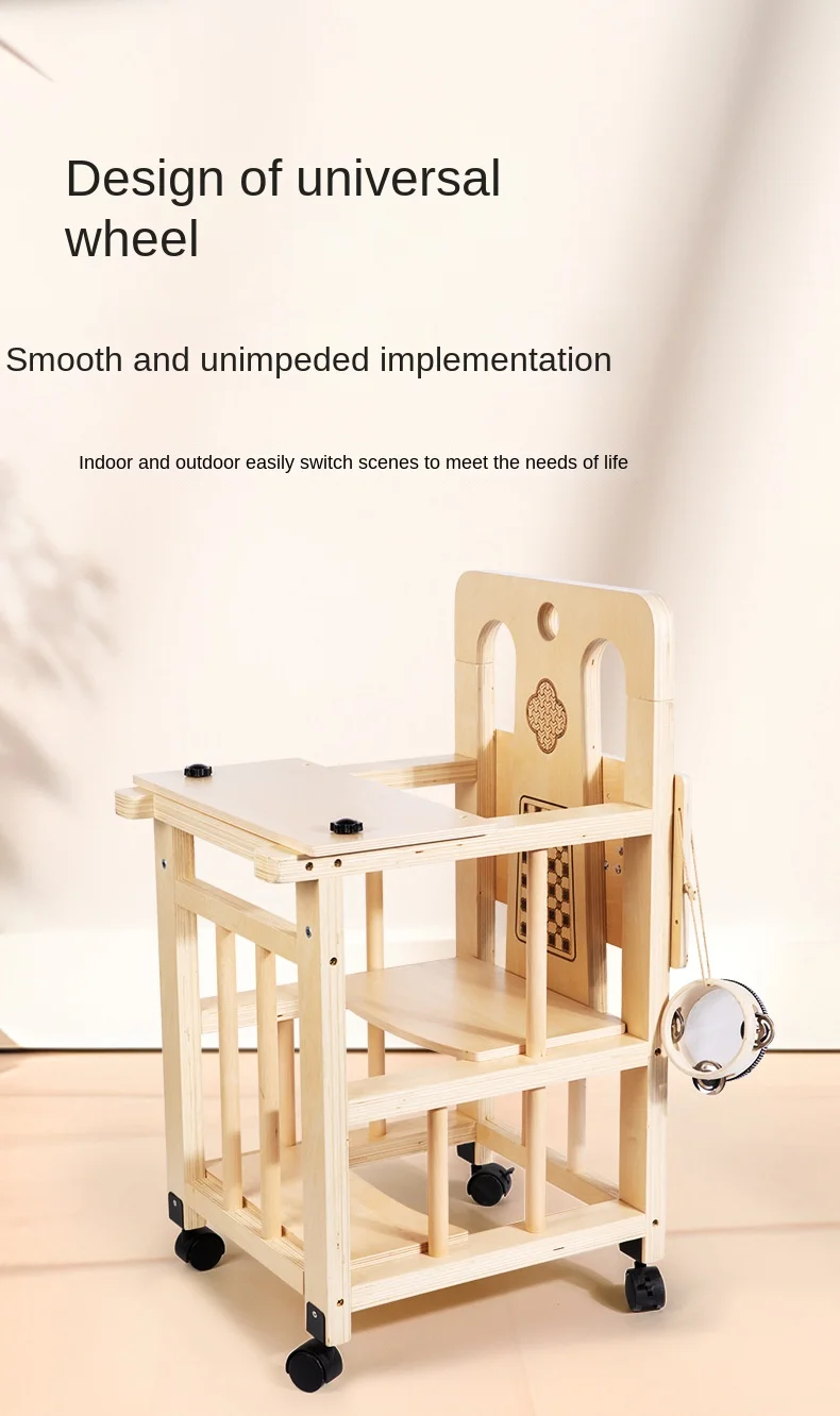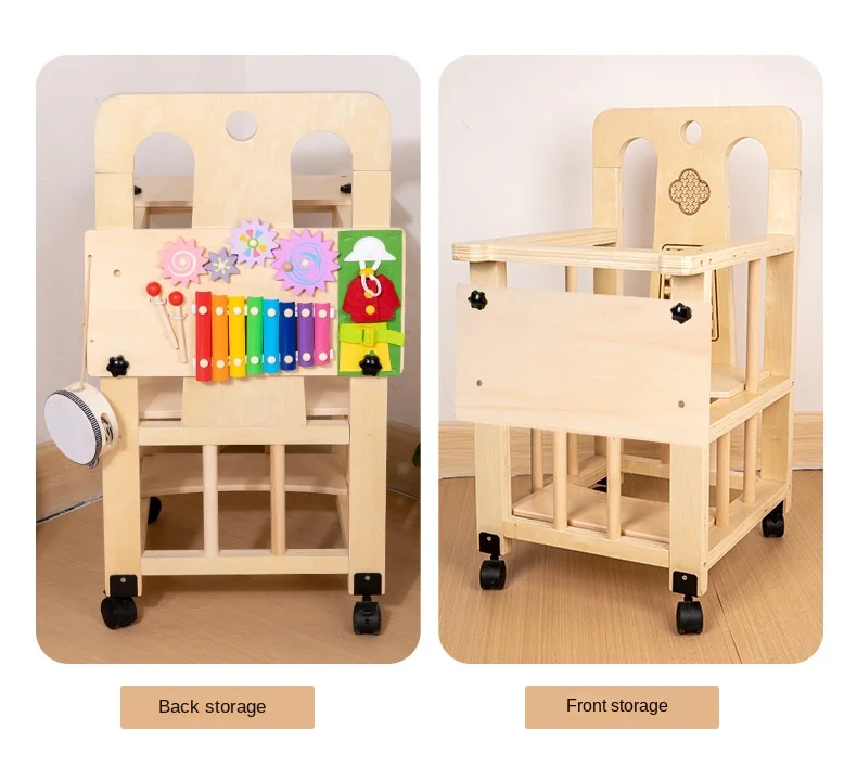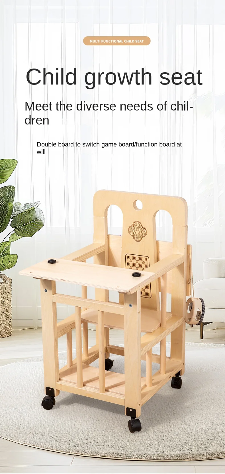 Multifunktions-Wachstumsstuhl für Kinder Montessori-Frühförderung Interaktives Holzspielzeug mit Klopf-Xylophon, Zahnrädern, Knöpfen und Trommel