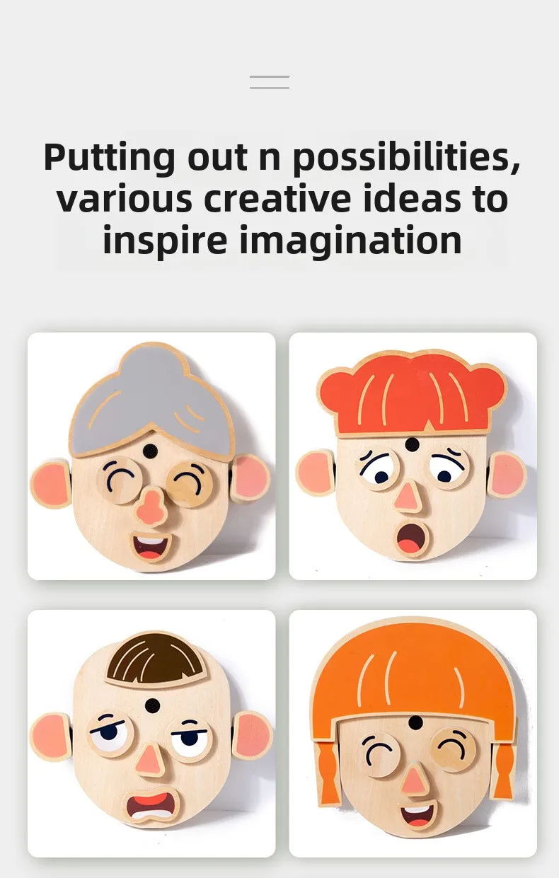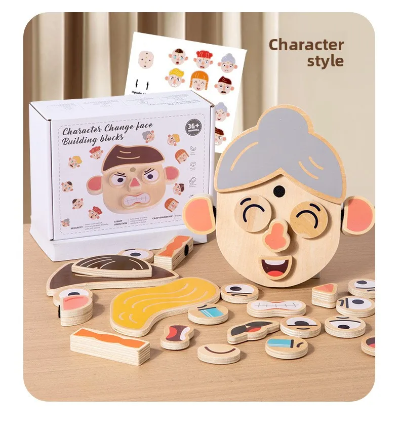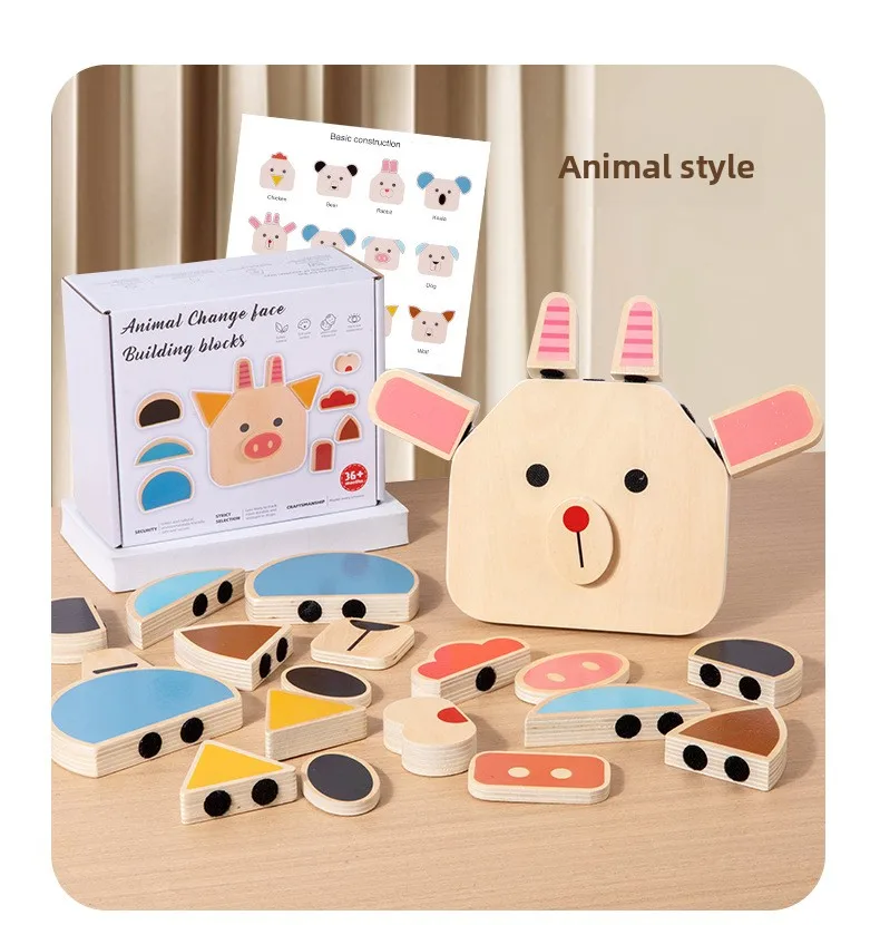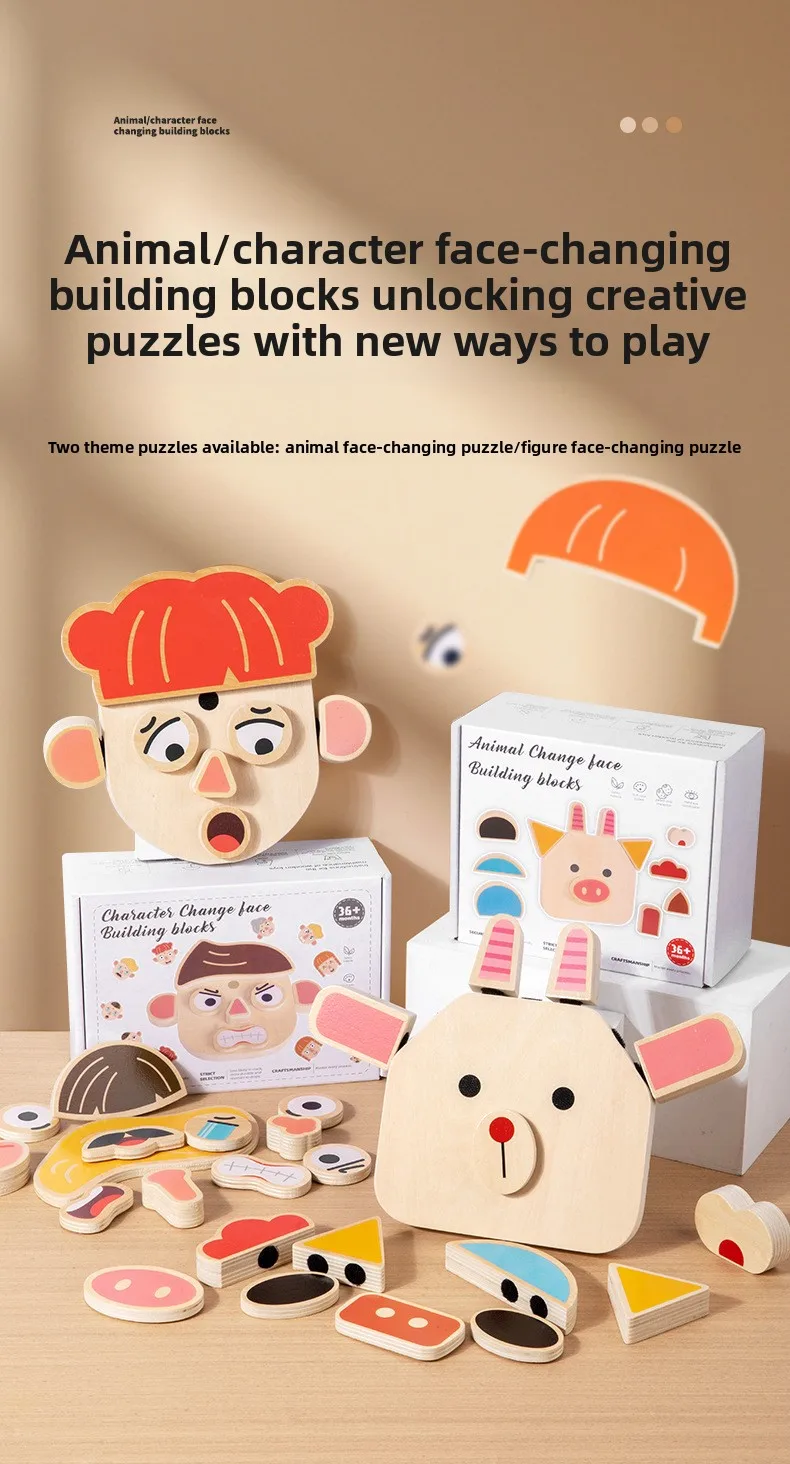 Neue 3D-Puzzle für die frühkindliche Erziehung, Holzspielzeug, Tiere, veränderbare Gesichter, Bausteine, Puzzlespielbrett für das gemeinsame Spielen von Eltern und Kind