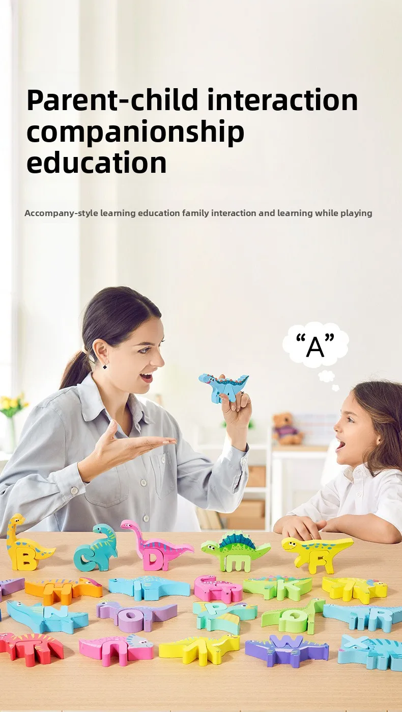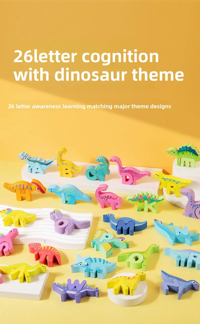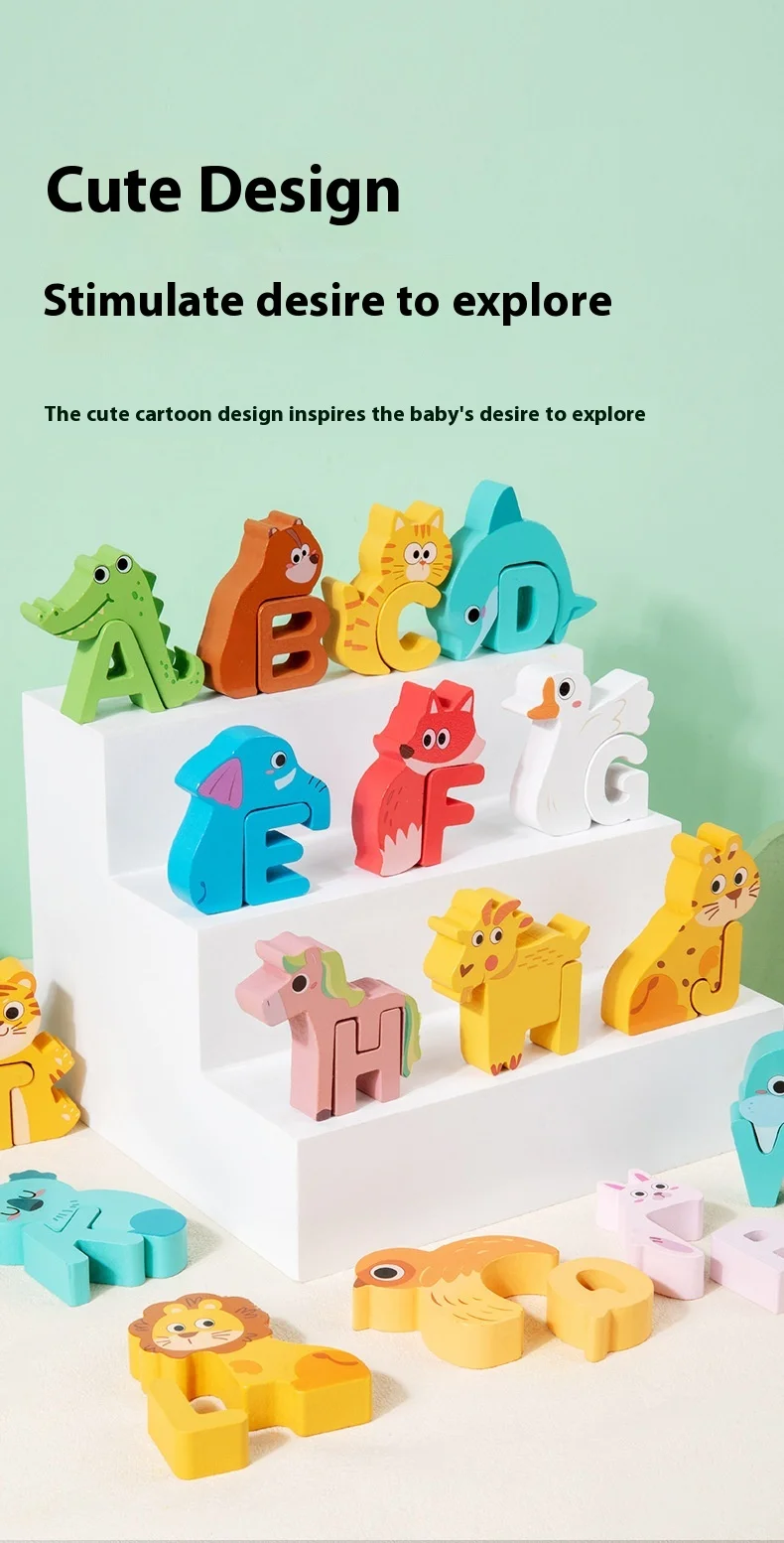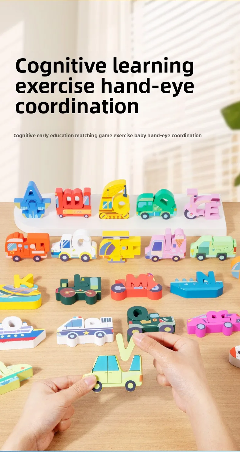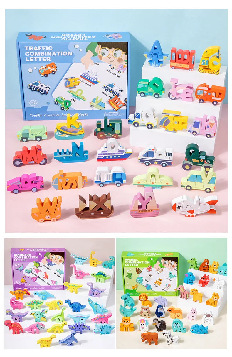 Großhandel: Kreative Holzbausteine für Kinder – frühkindliches pädagogisches Spielzeug mit Cartoon-Alphabet-Puzzle, Tier-, Dinosaurier- und Verkehrsmotiven