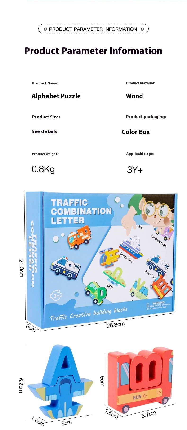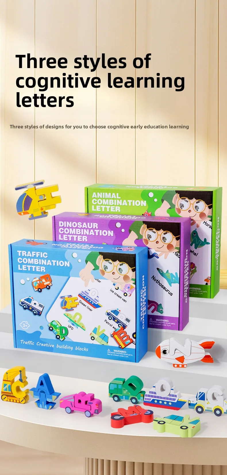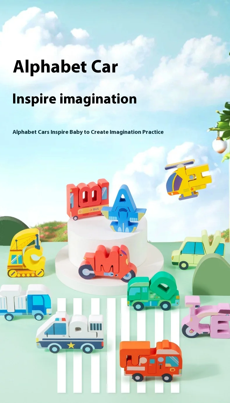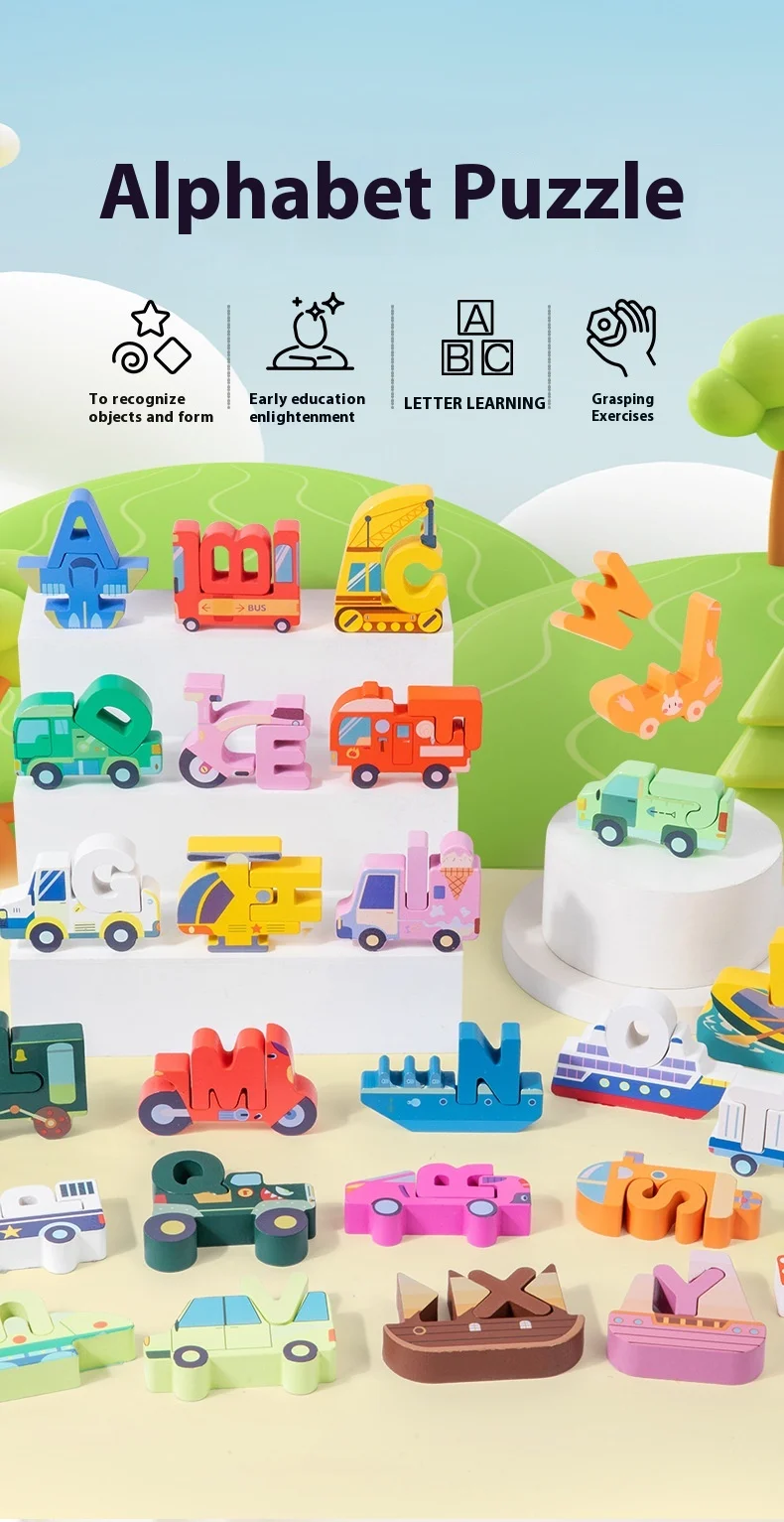 Großhandel: Kreative Holzbausteine für Kinder – frühkindliches pädagogisches Spielzeug mit Cartoon-Alphabet-Puzzle, Tier-, Dinosaurier- und Verkehrsmotiven