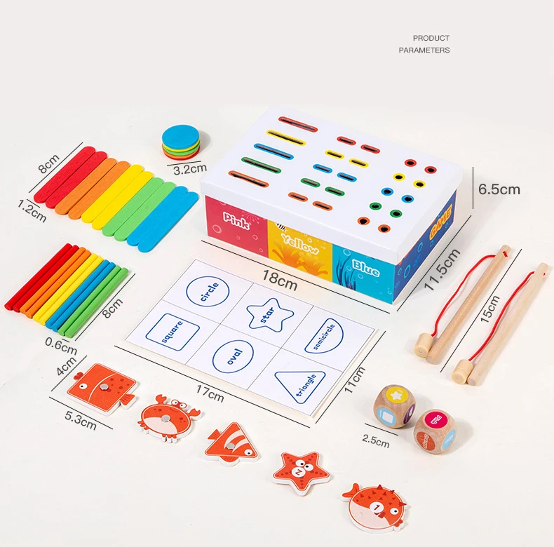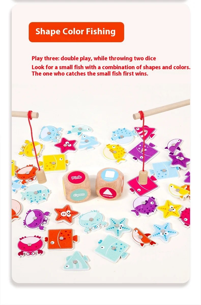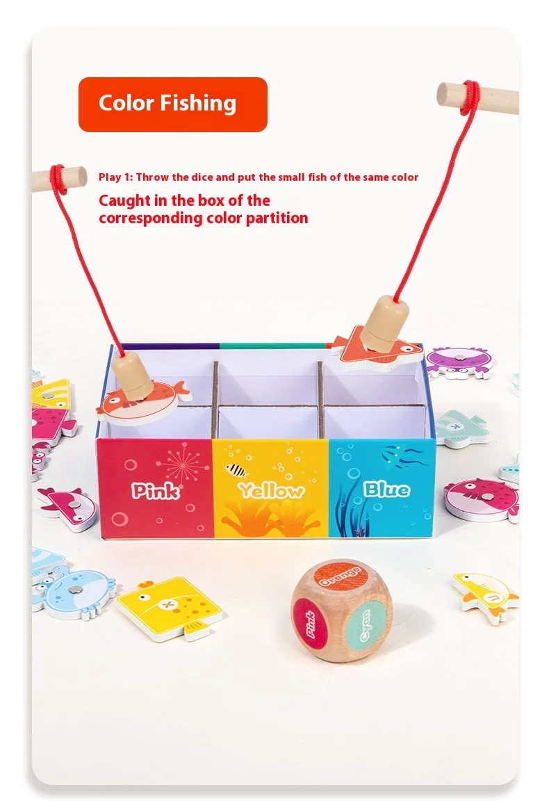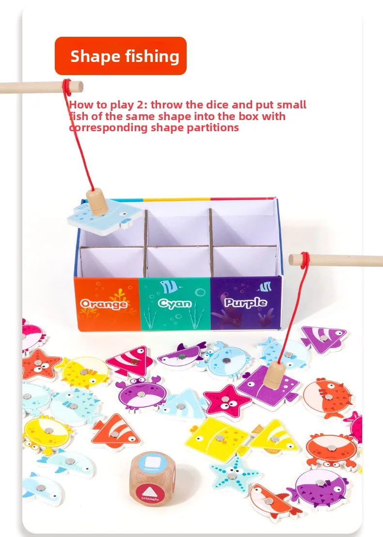 Holz-Angelspiel für Kinder Montessori Farb- und Formenerkennung Sortierbox Feinmotorik Lernspielzeug für Kinder
