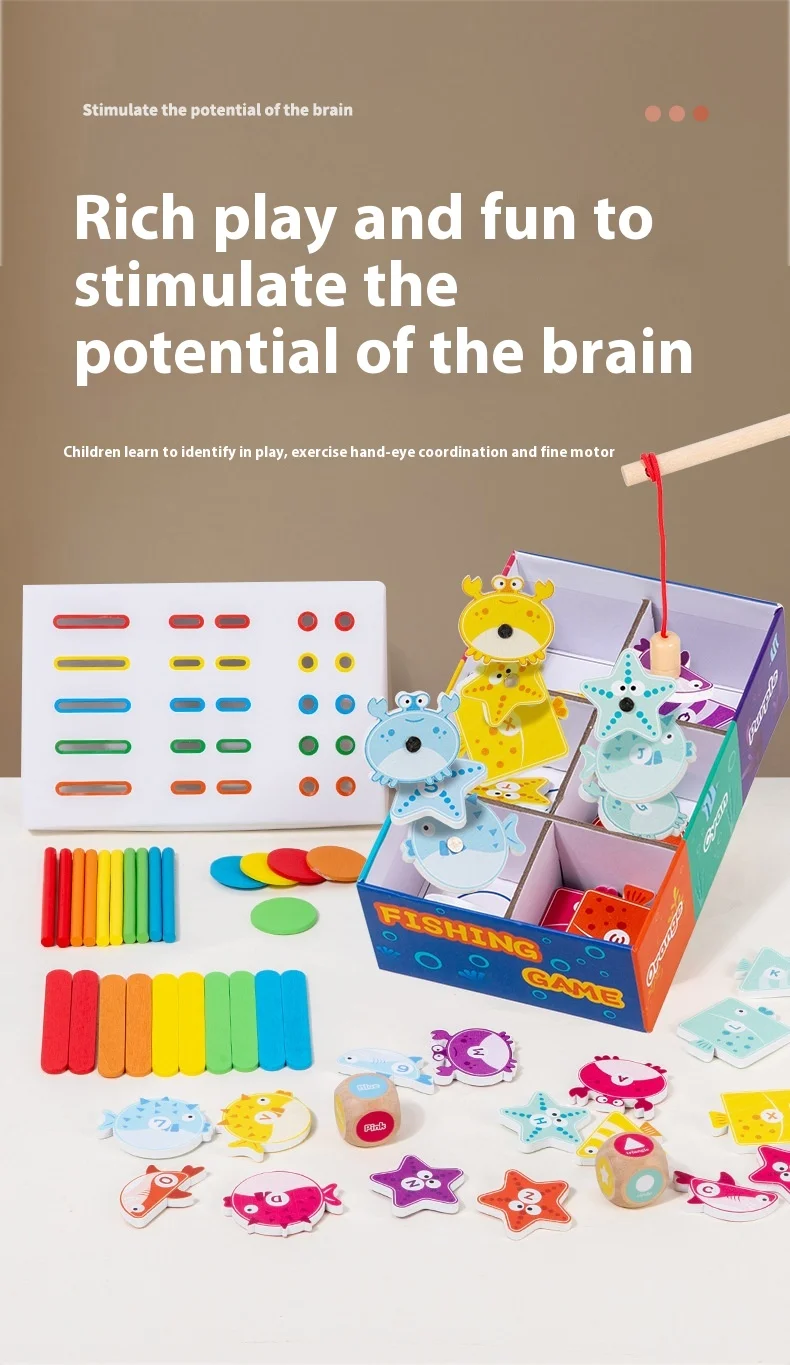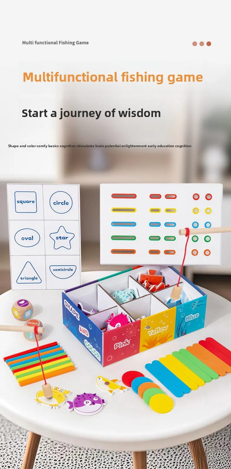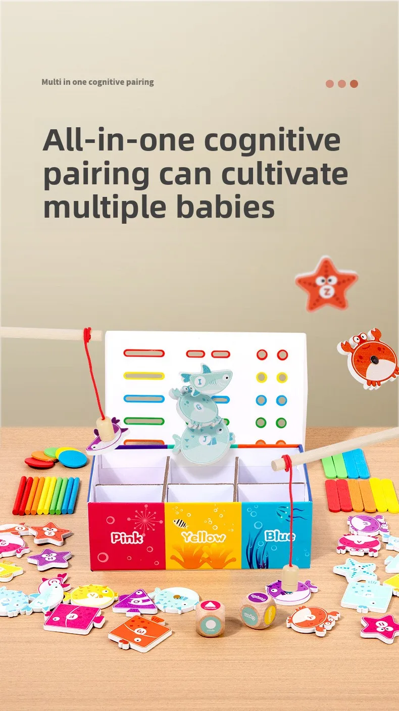 Holz-Angelspiel für Kinder Montessori Farb- und Formenerkennung Sortierbox Feinmotorik Lernspielzeug für Kinder
