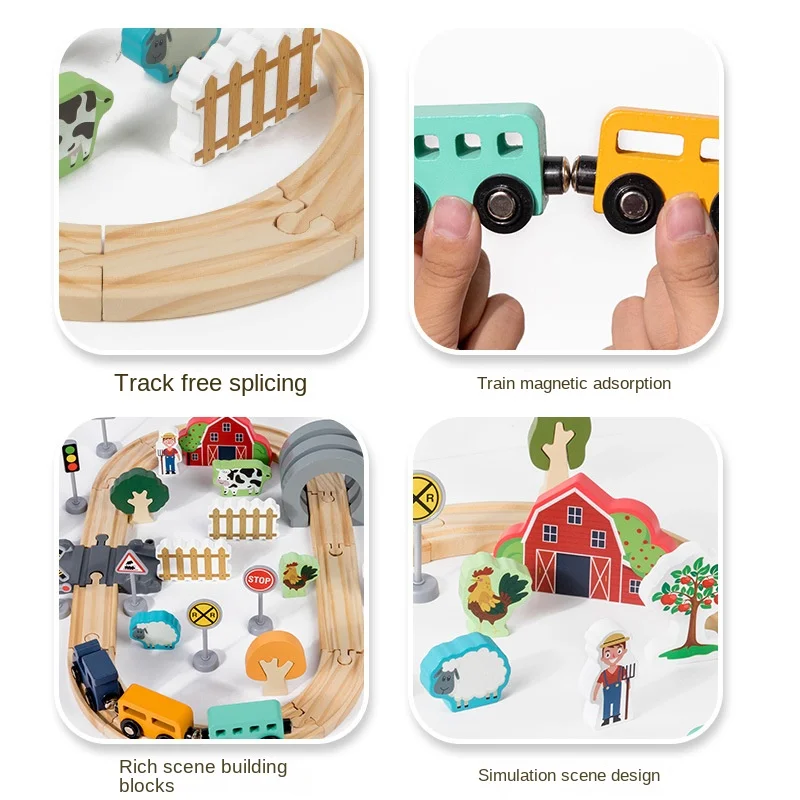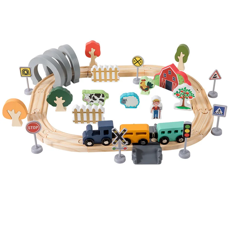 Children's 42-Piece Farm-themed Simulation Track Train Educational Wooden Toys Assembling Train Railway Toys Set
