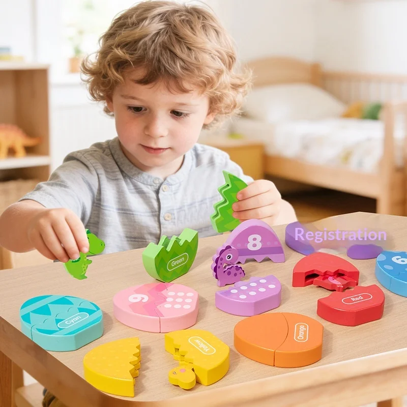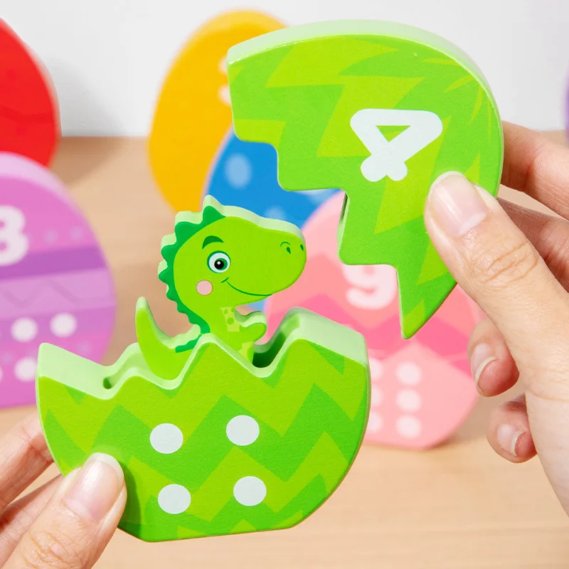 Jeu éducatif Montessori pour enfants : œufs de dinosaure en bois avec exercice d’association des couleurs et de comptage numérique, puzzle cognitif pour la sensibilisation et l’éducation précoce des bébés