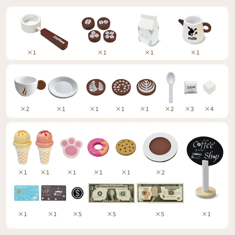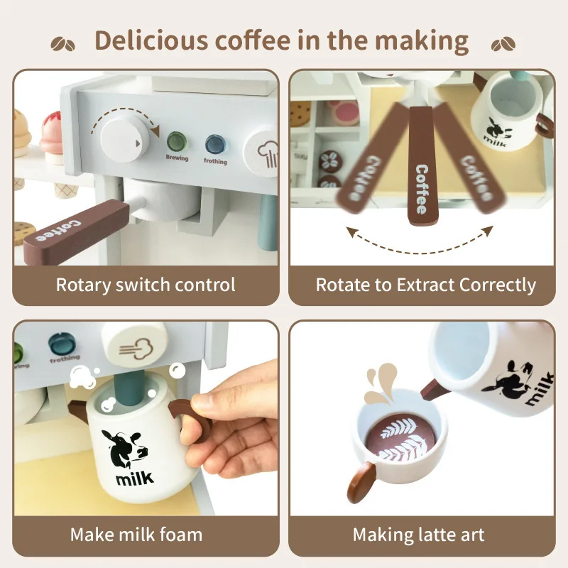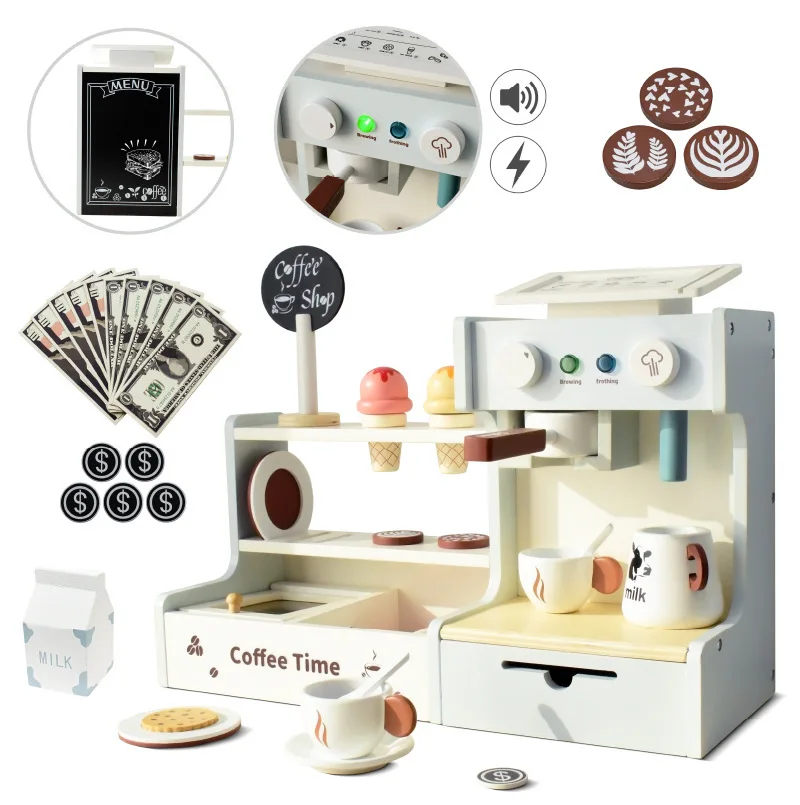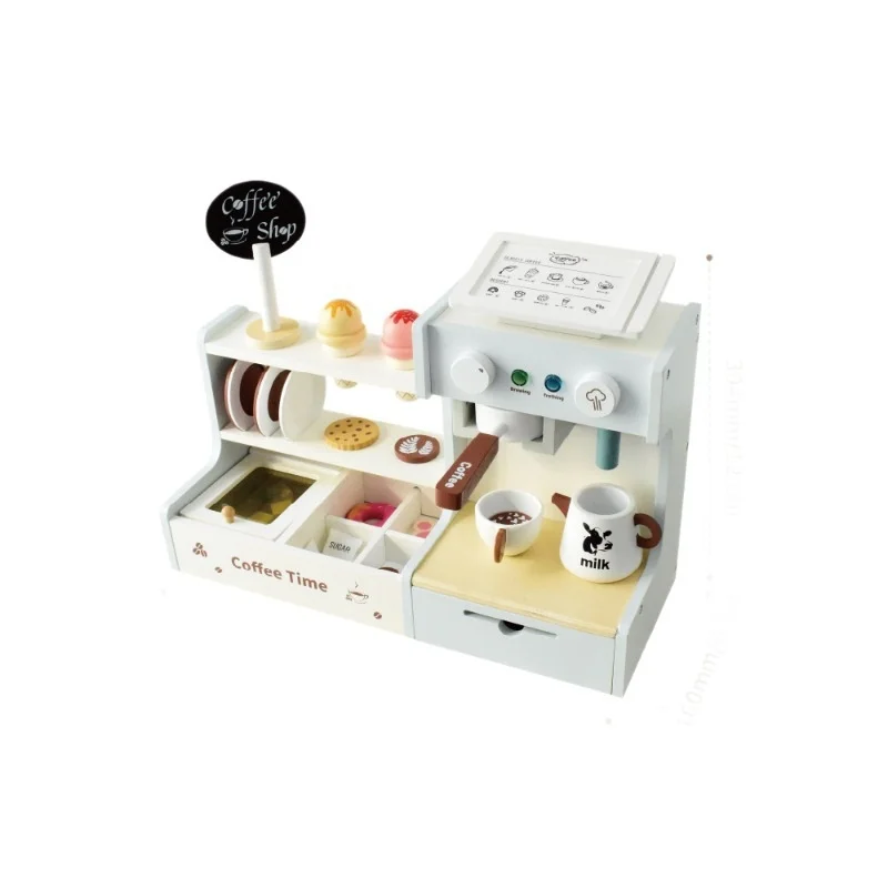 Qiaike Wooden Small Coffee Shop Children's Kitchen Toys Set Preschool Educational Toy Pretend Play Ages 4-6 Unisex
