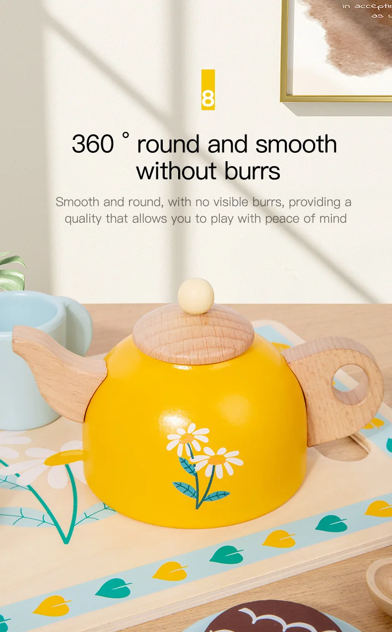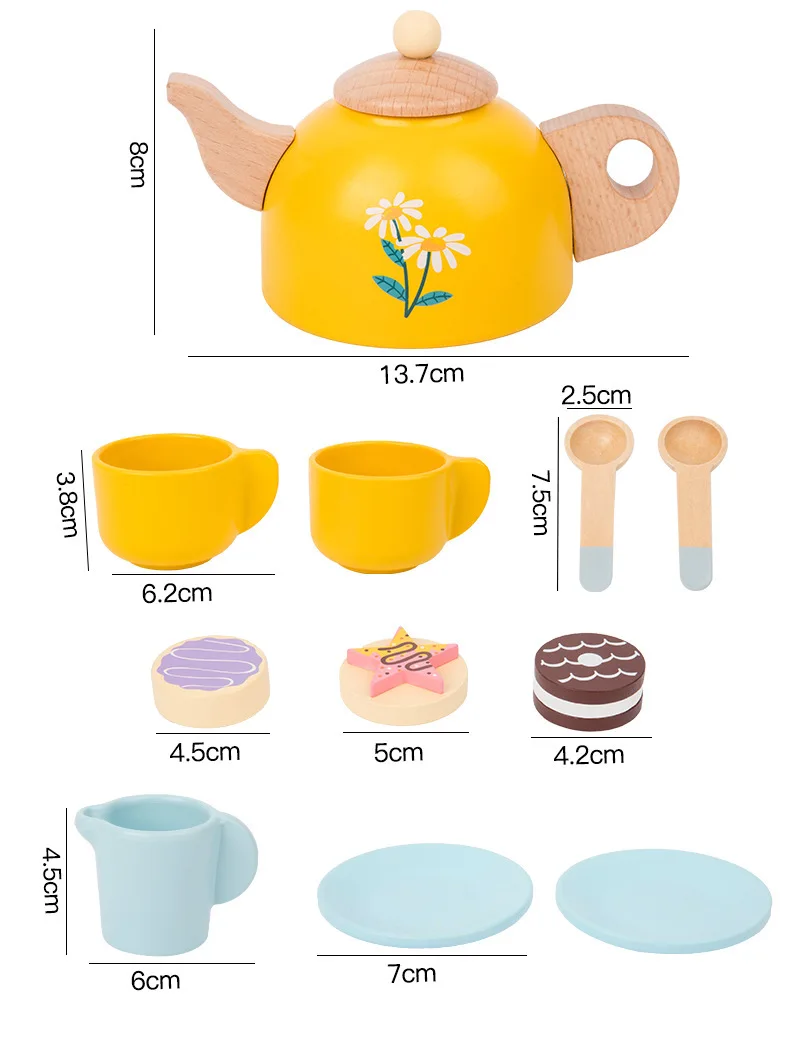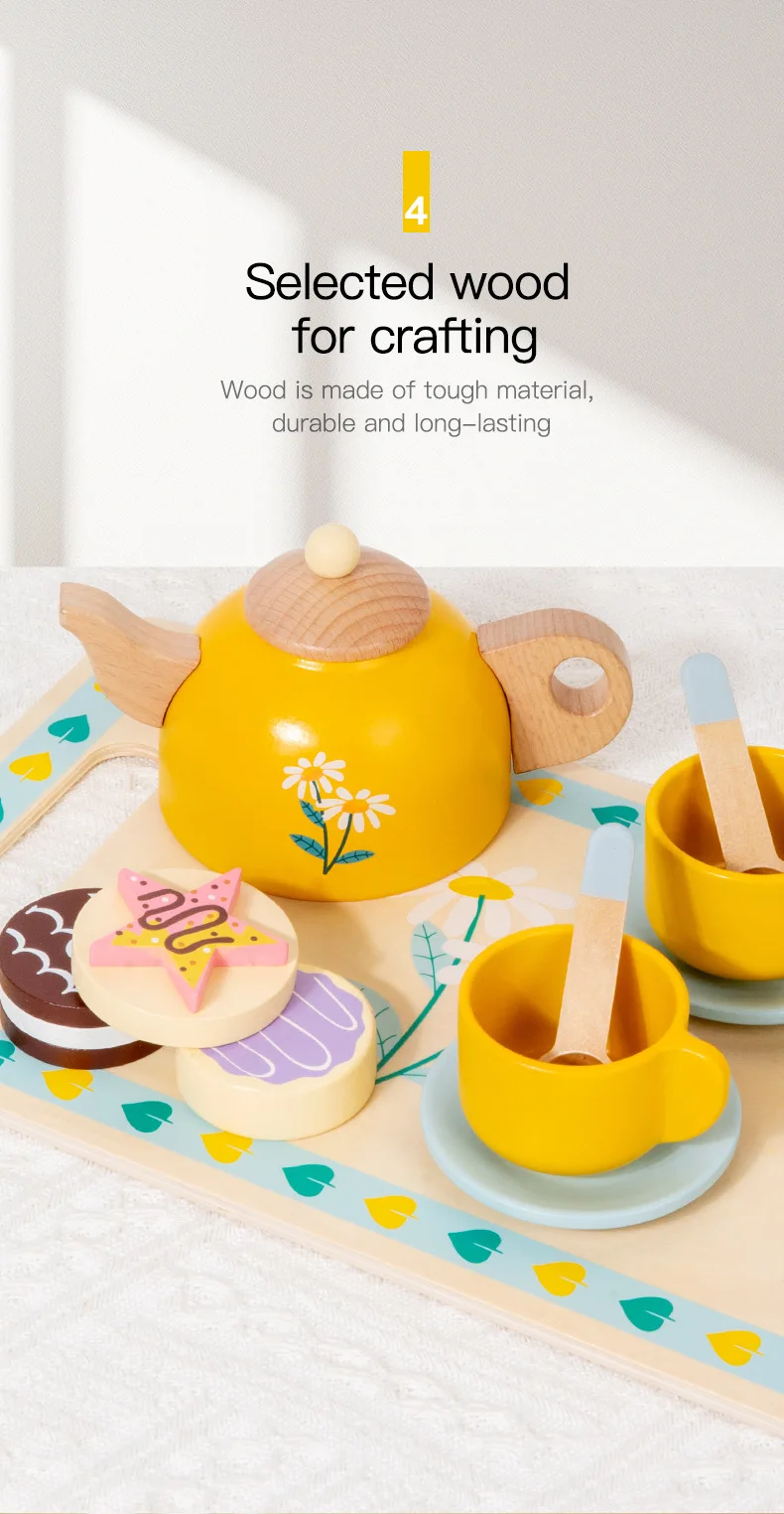 Wooden Tea Party Set for Little Girls Play Food Pretend Play Afternoon Tea Dessert Set Montessori Role Play Toy for Ages 3 4 5 6
