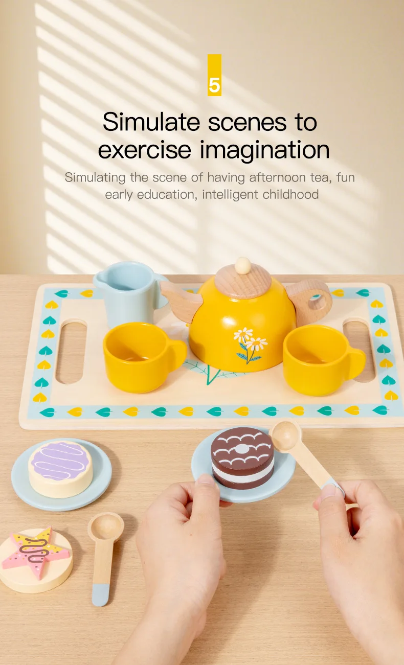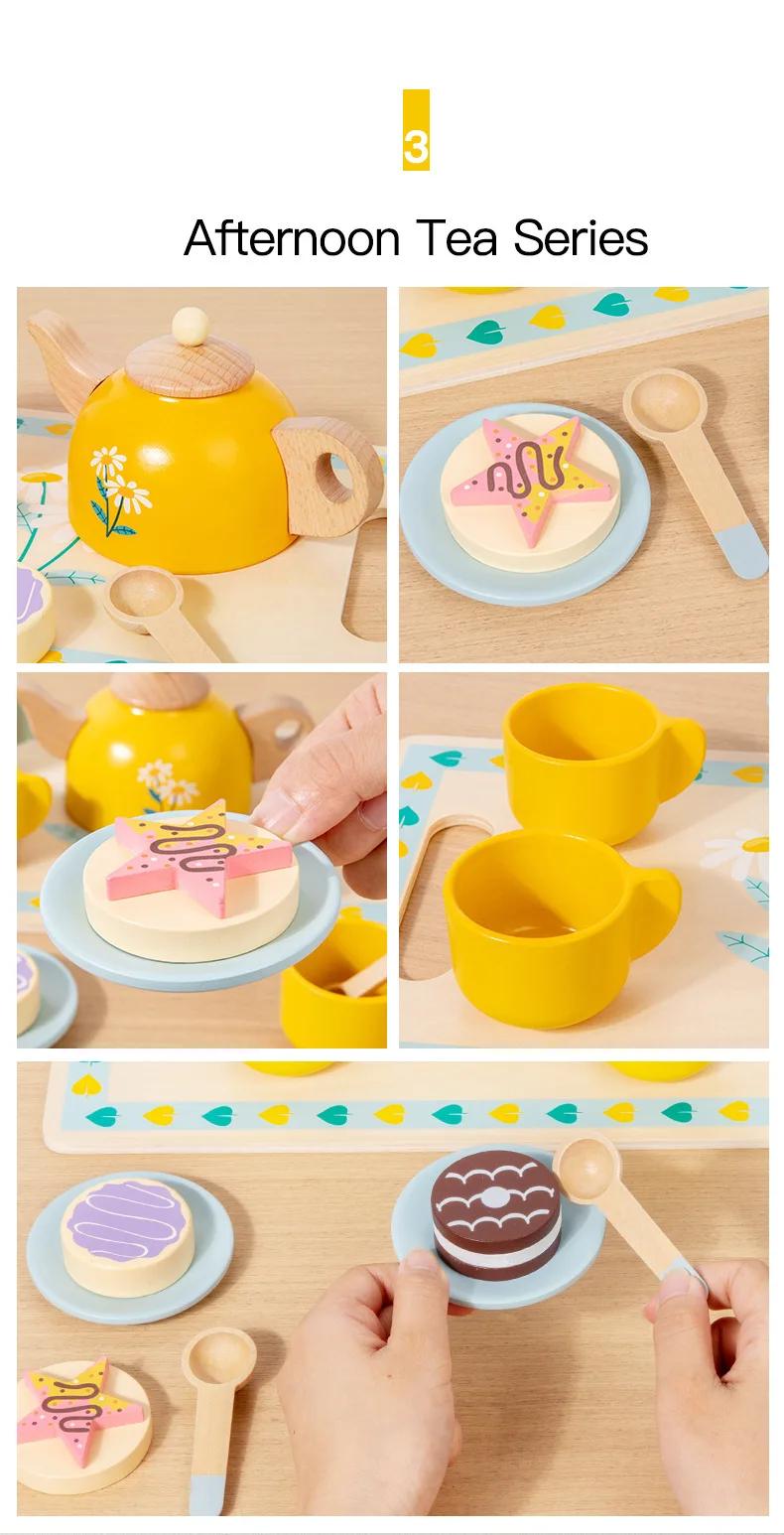 Children's Simulated Home Play Afternoon Tea Dessert Toys Set Baby Role-playing Pretend Play Wooden Toys