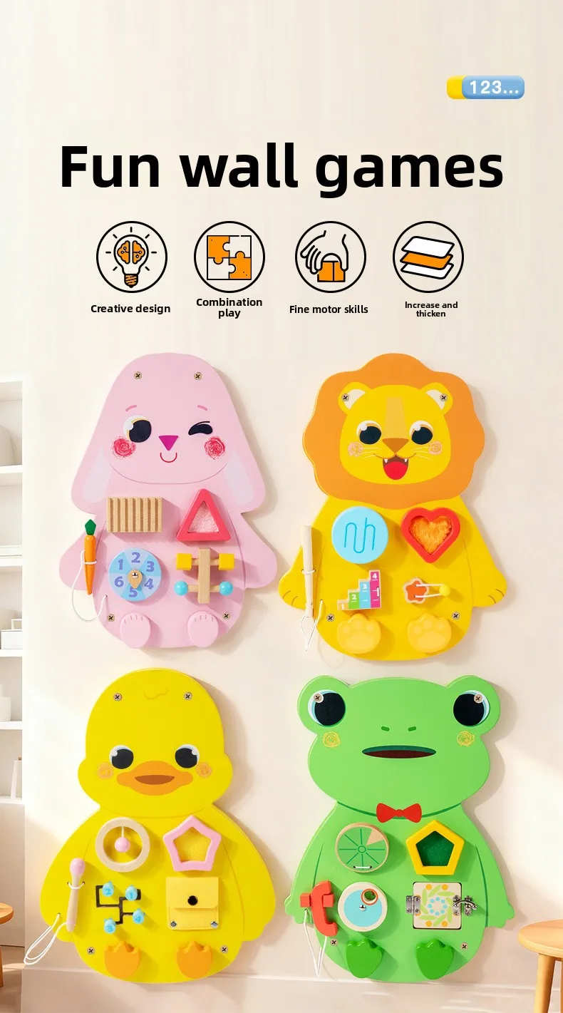 Montessori senzorni zidni panel za djecu zauzeta ploča za male dječake Zidna aktivnost ploča crtić Drvena senzorna zidna igračka