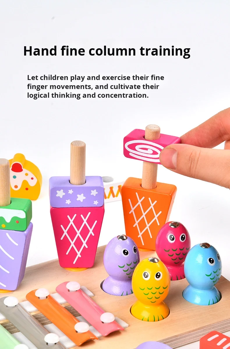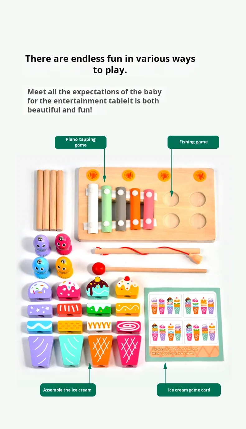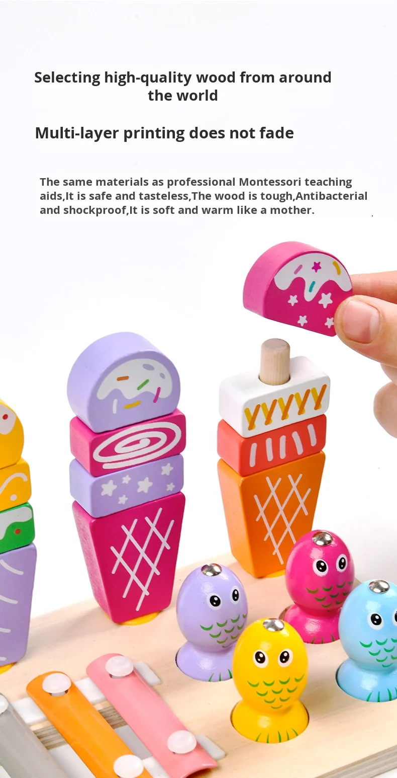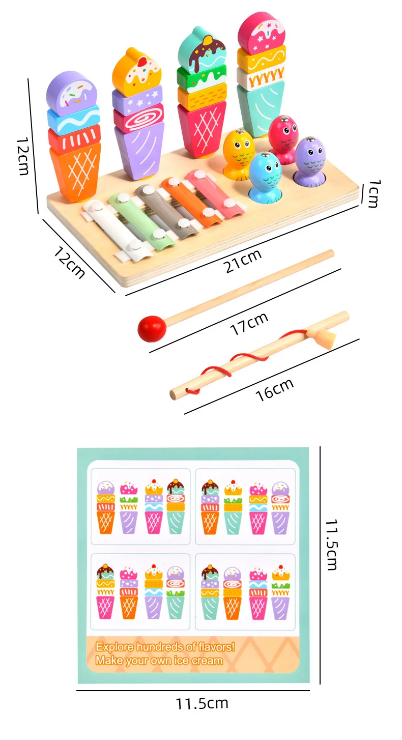 Višenamjenski 3 u 1 set za djecu, igra ribolova, sladoled, Montessori glazbeni drveni ksilofon, zabavni edukativni igrački