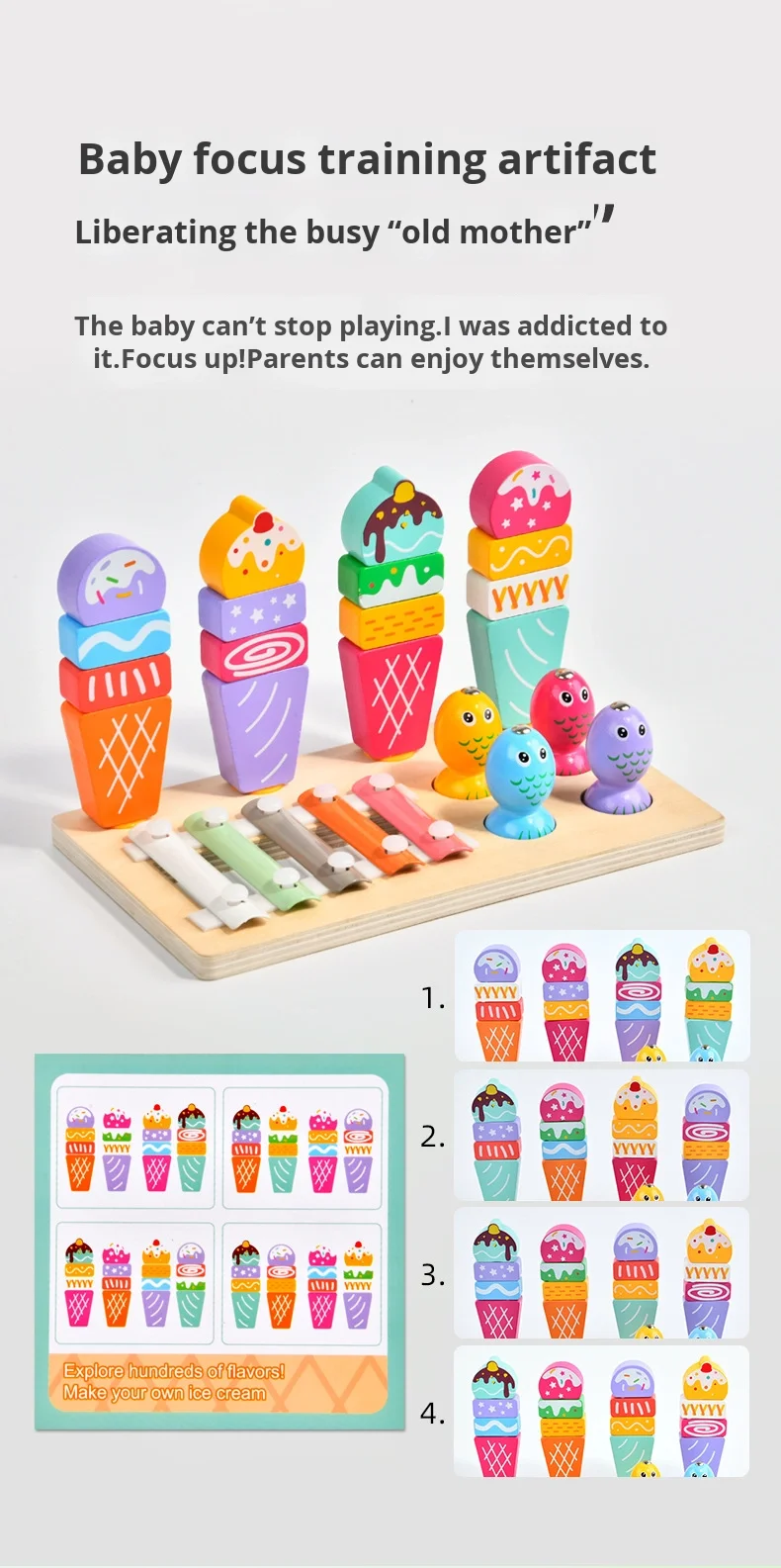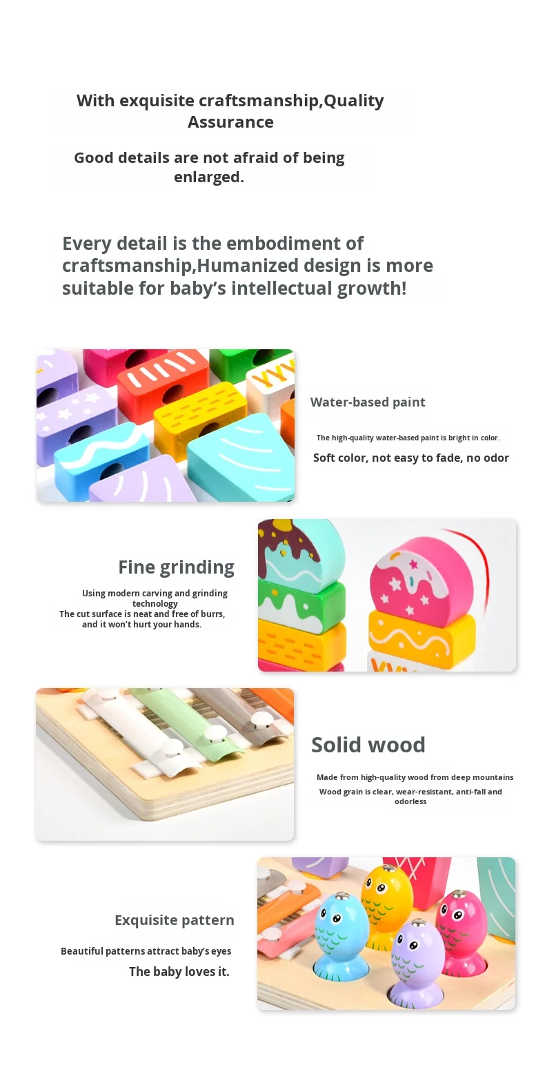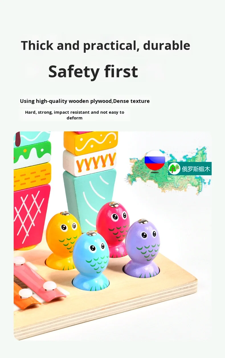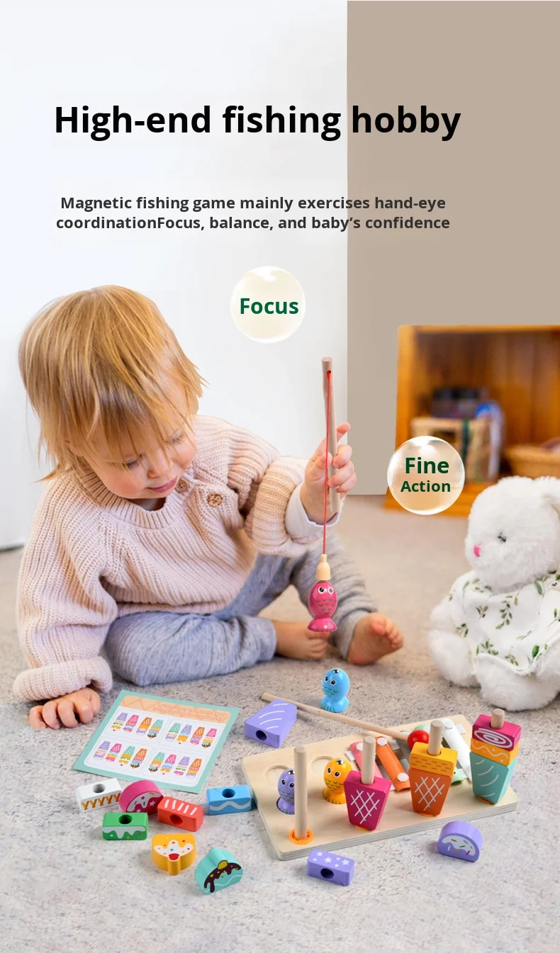 Višenamjenski 3 u 1 set za djecu, igra ribolova, sladoled, Montessori glazbeni drveni ksilofon, zabavni edukativni igrački
