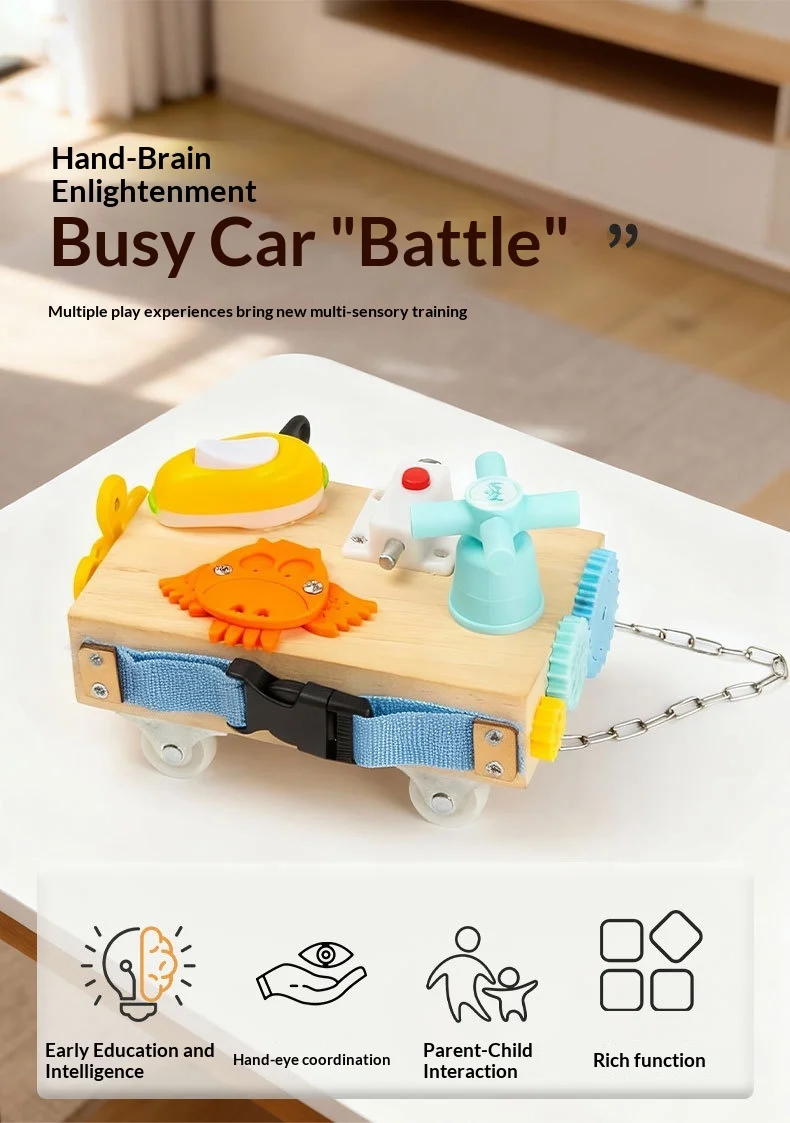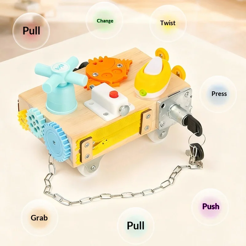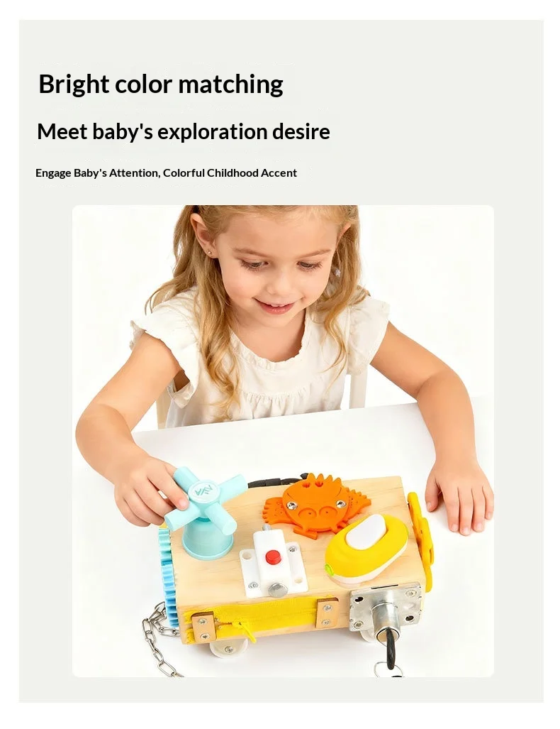 Veliki prodaja drvene ploče za aktivno vožnju s motoričkim vještinama s zupčanicama i prekidačima za male djece