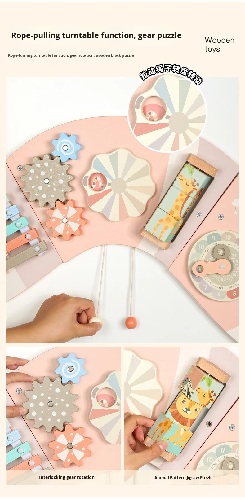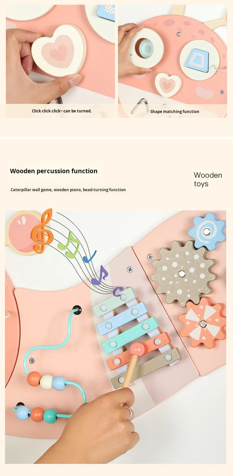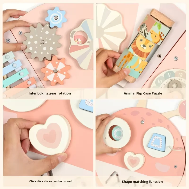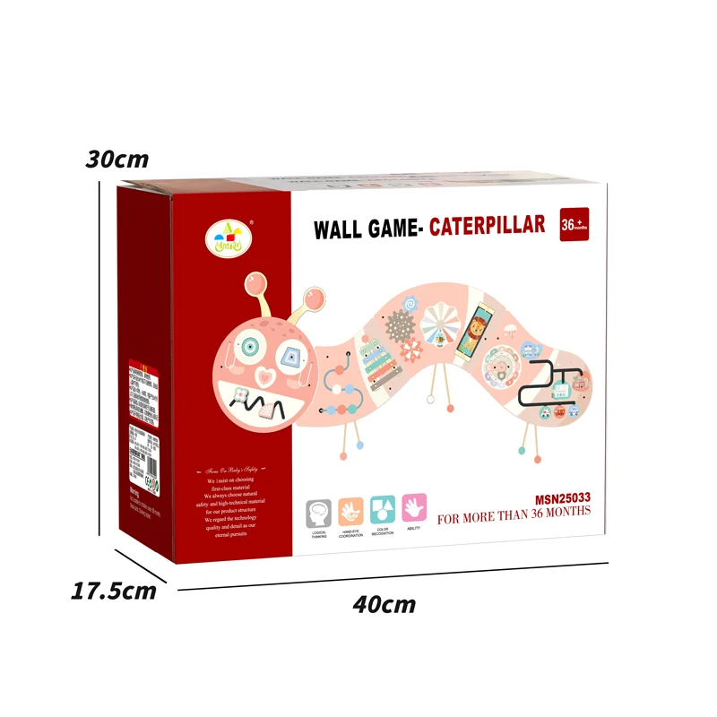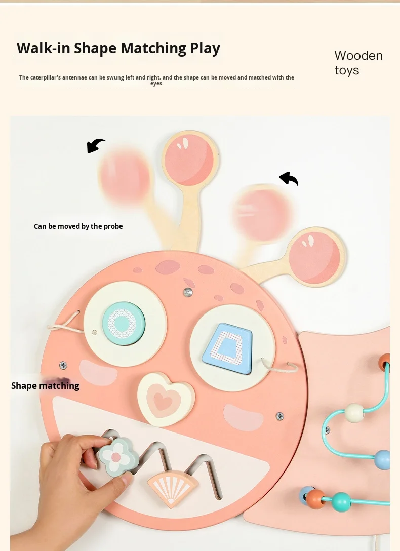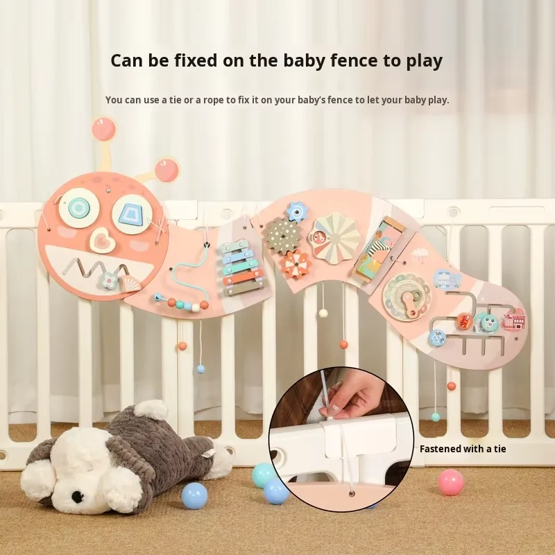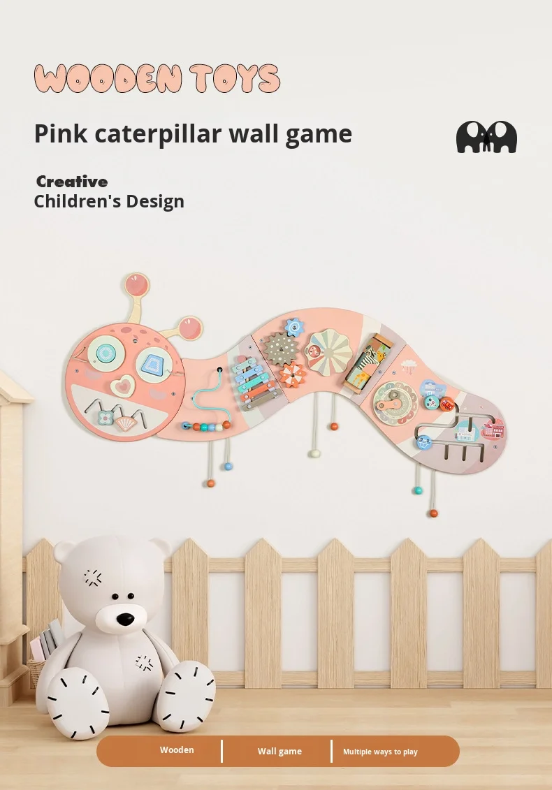 Ružičasta gusjenica zidna igra zidni paneli igranje Montessori senzorna ploča Drvena obrazovna igračka za male djece igraonica i vrtić