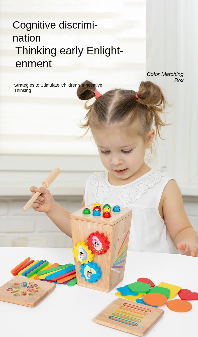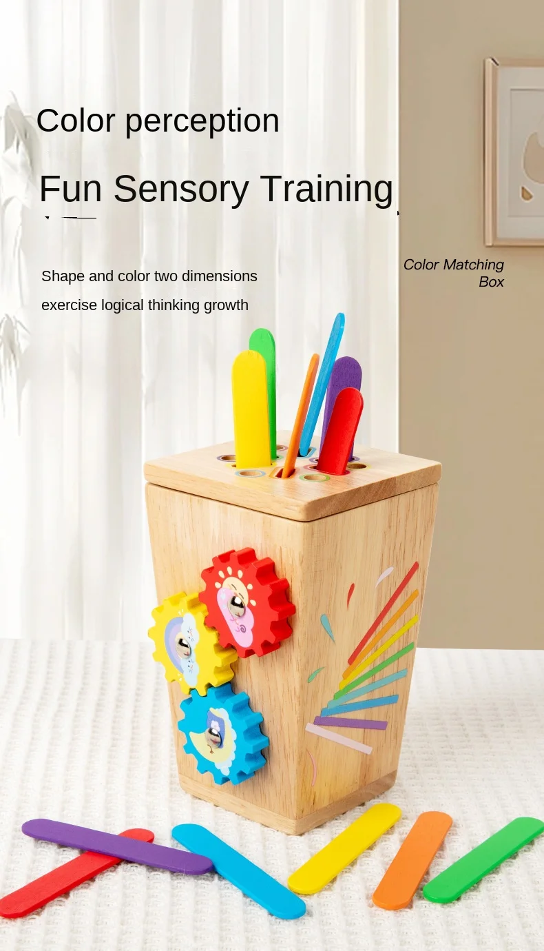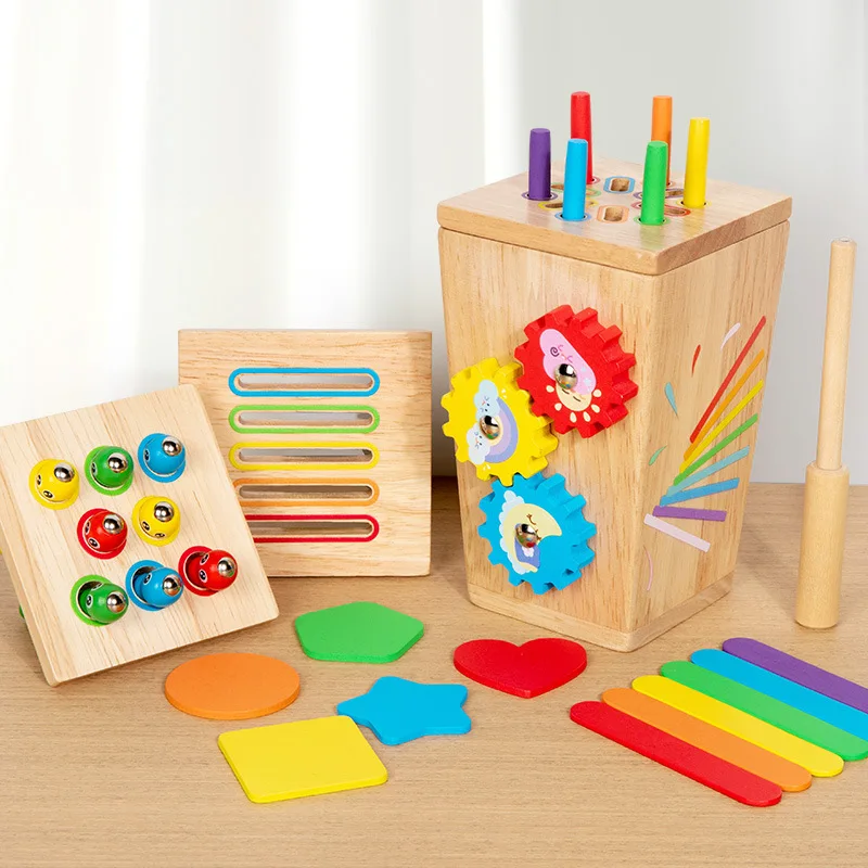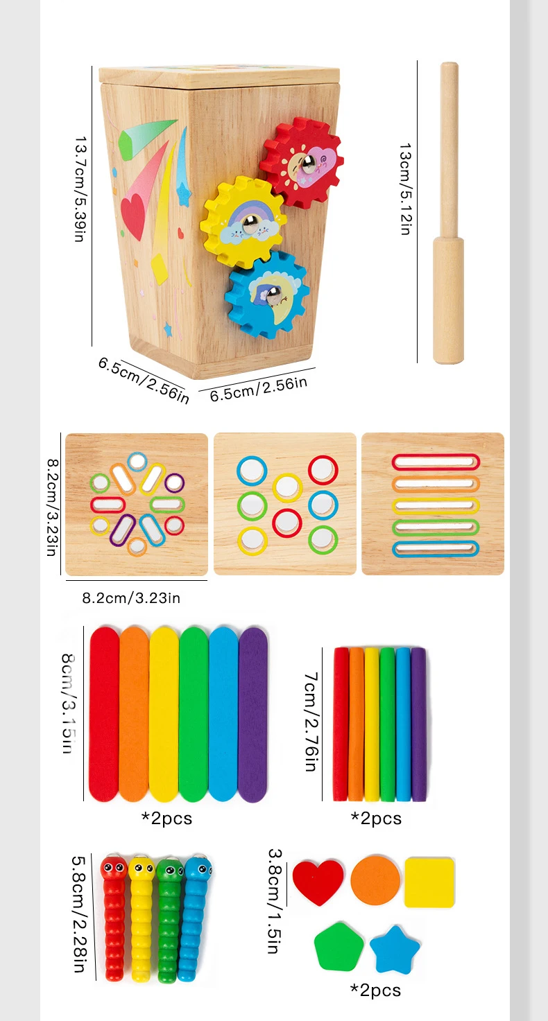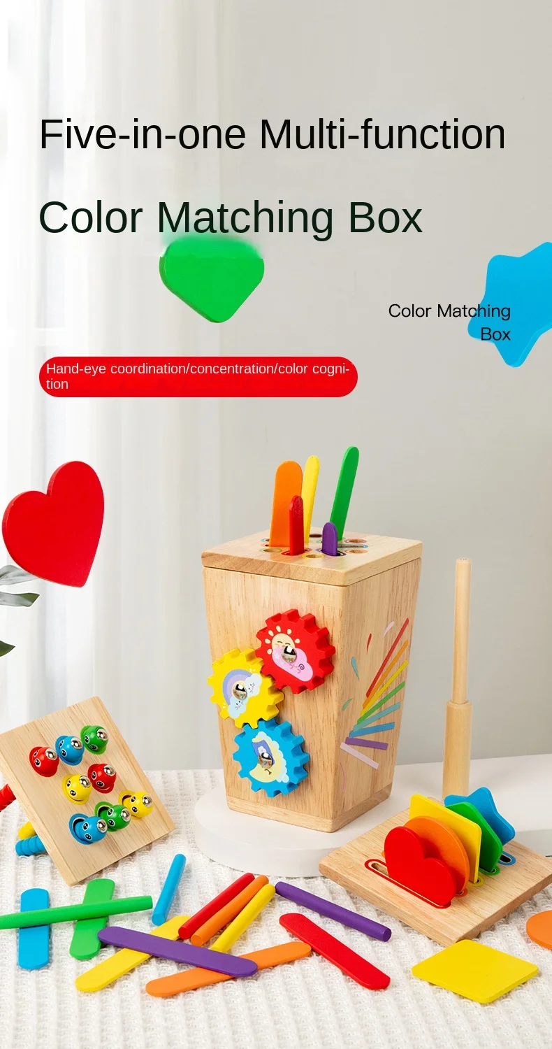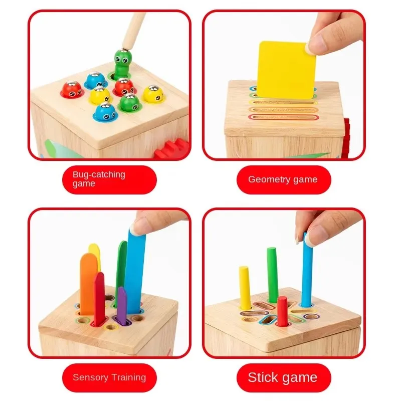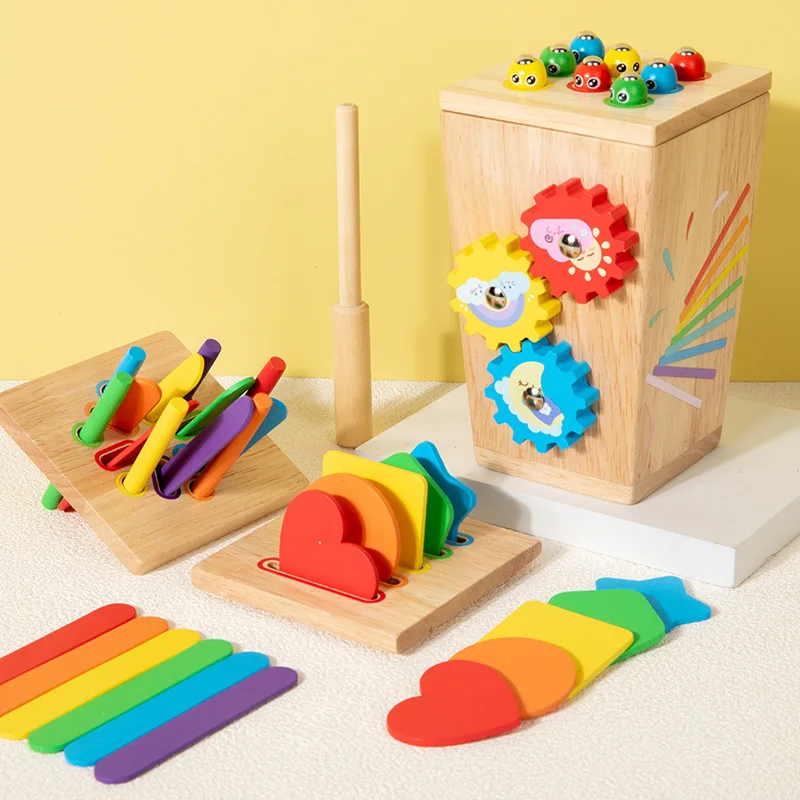 5-in-1マルチファンクション色分けボックス/早期教育用木製昆虫つかみギア運動玩具/手指の巧緻性向上用木製玩具