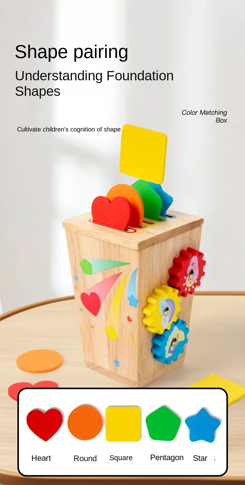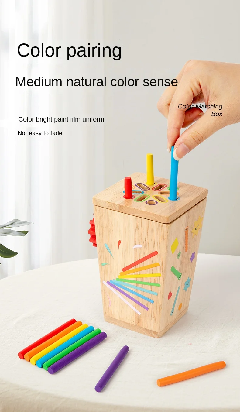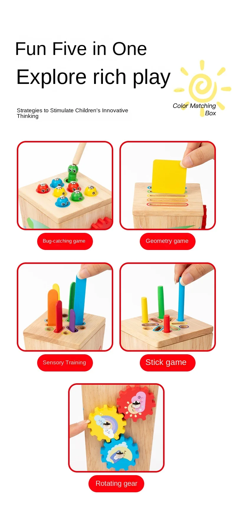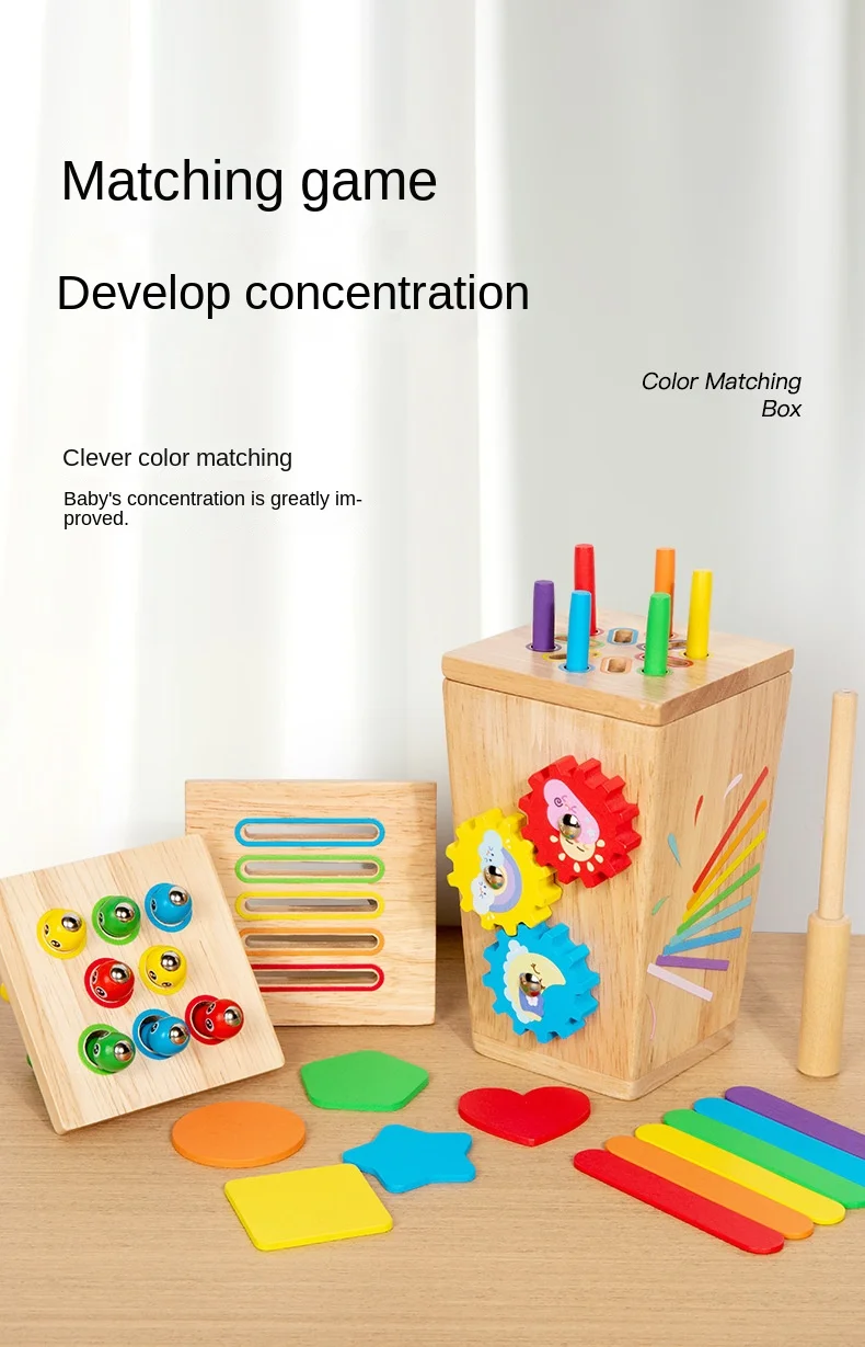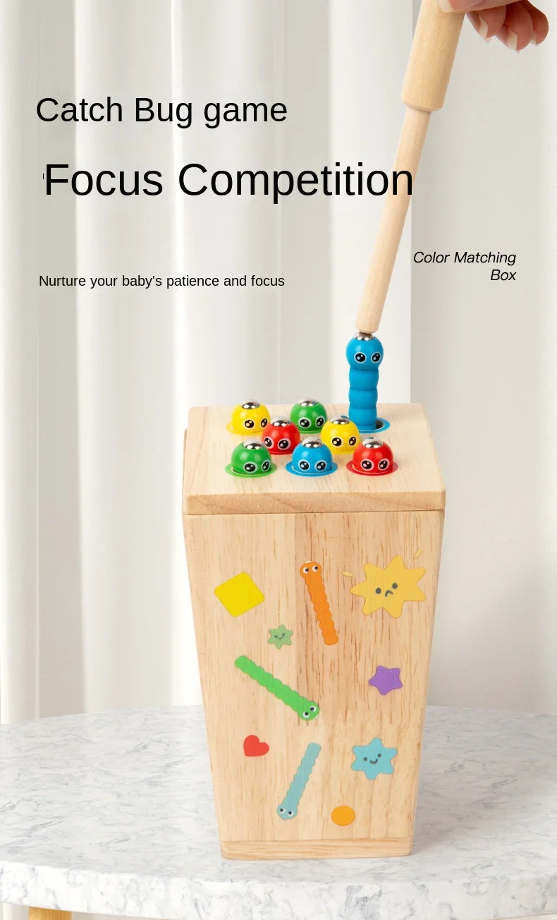 5-in-1マルチファンクション色分けボックス/早期教育用木製昆虫つかみギア運動玩具/手指の巧緻性向上用木製玩具