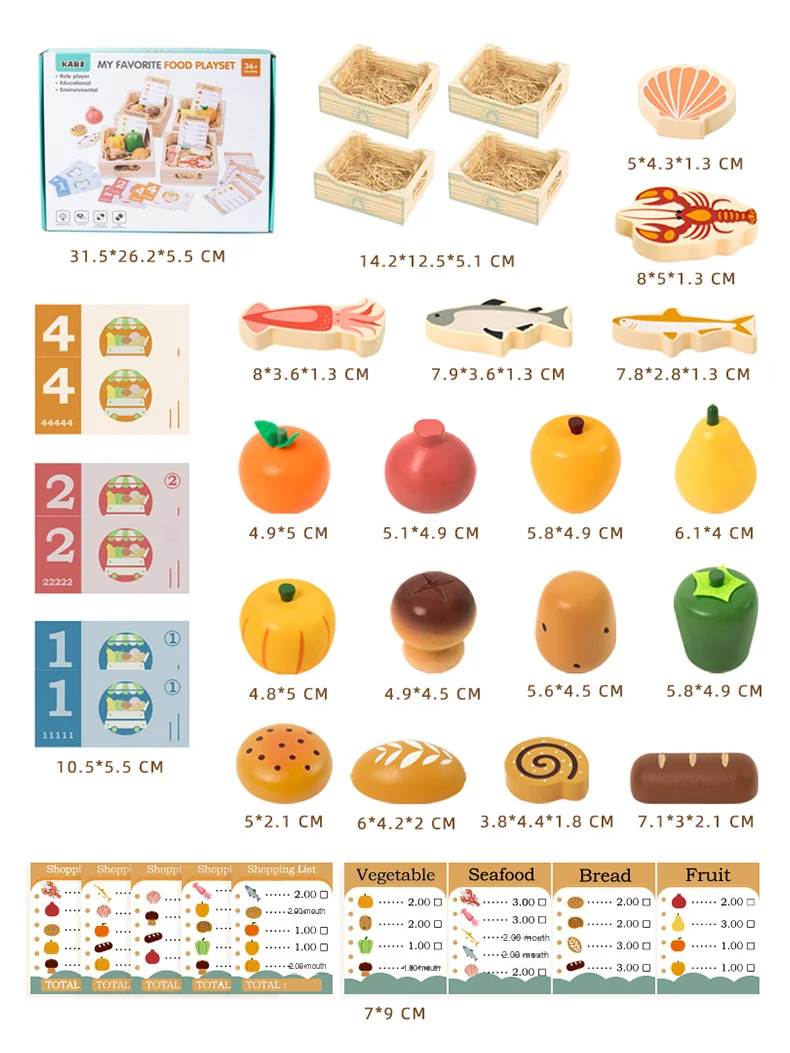 CPC CE 木材製の果物や野菜を切るごっこ遊び用フードトイ、pretend kitchen アクセサリー。3歳、4歳、5歳、6歳、7歳の男の子・女の子向け