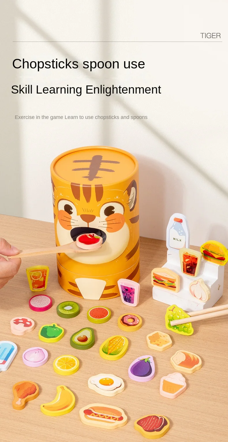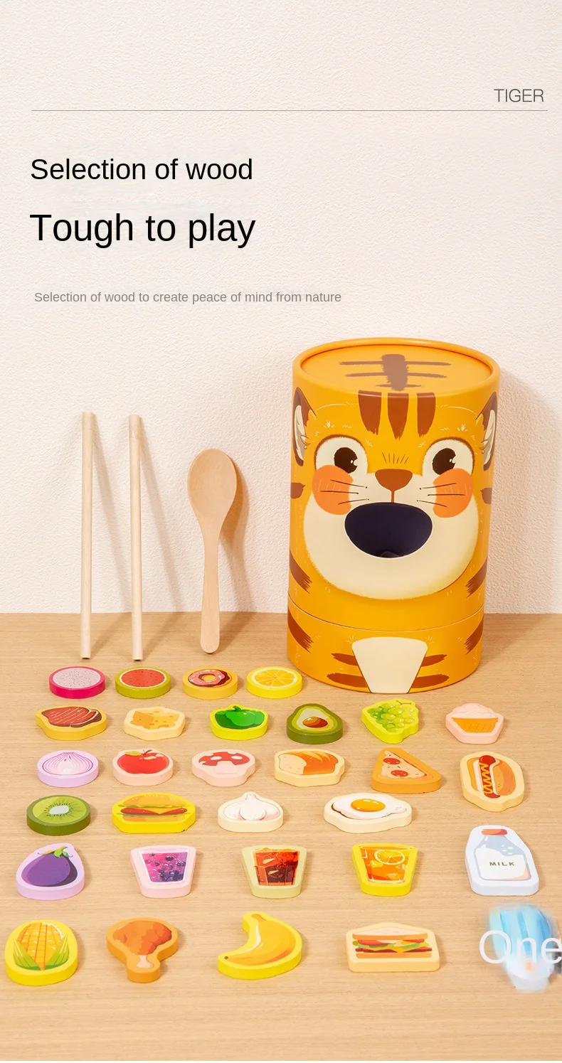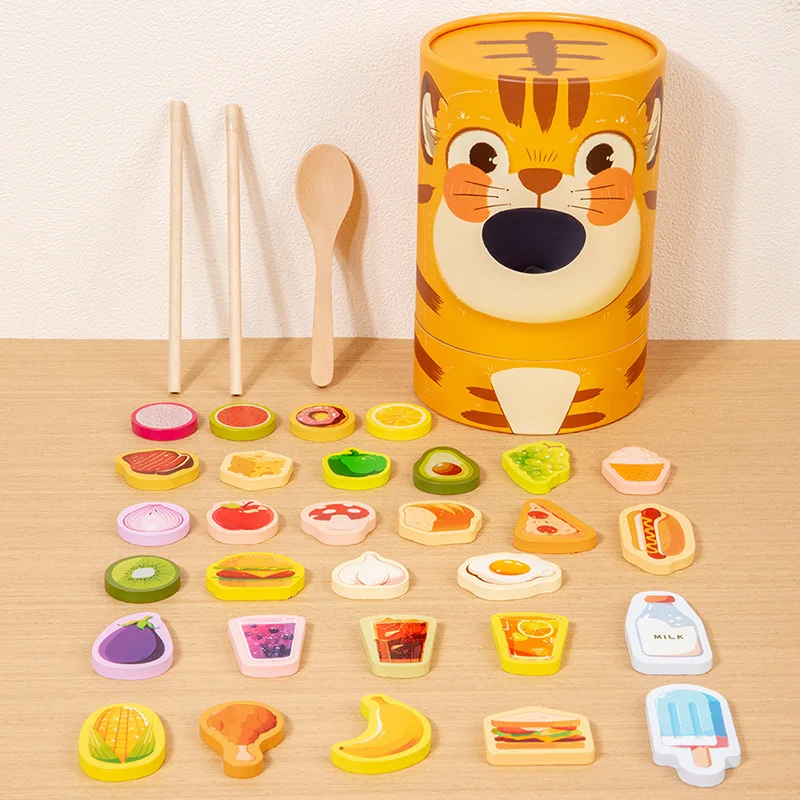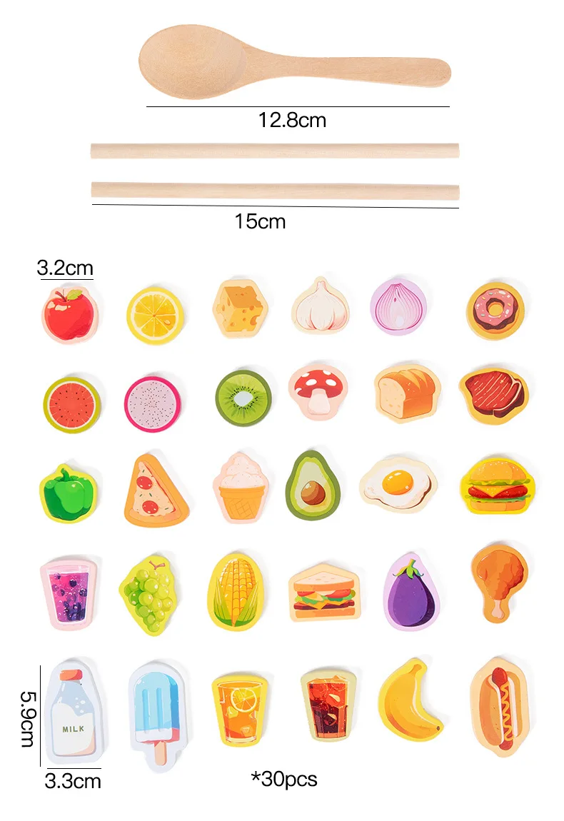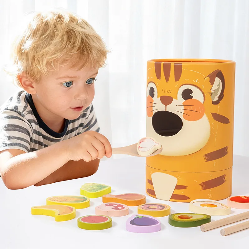 Children's Educational Wooden Feeding Games Montessori Pretend Play Food Set Fine Motor Skills EN71 Certified Gift for Kids Ages