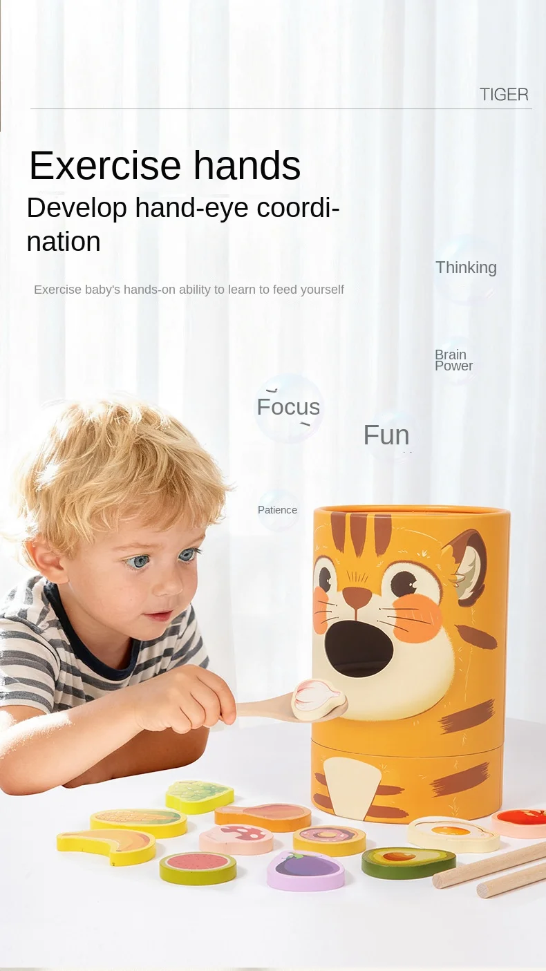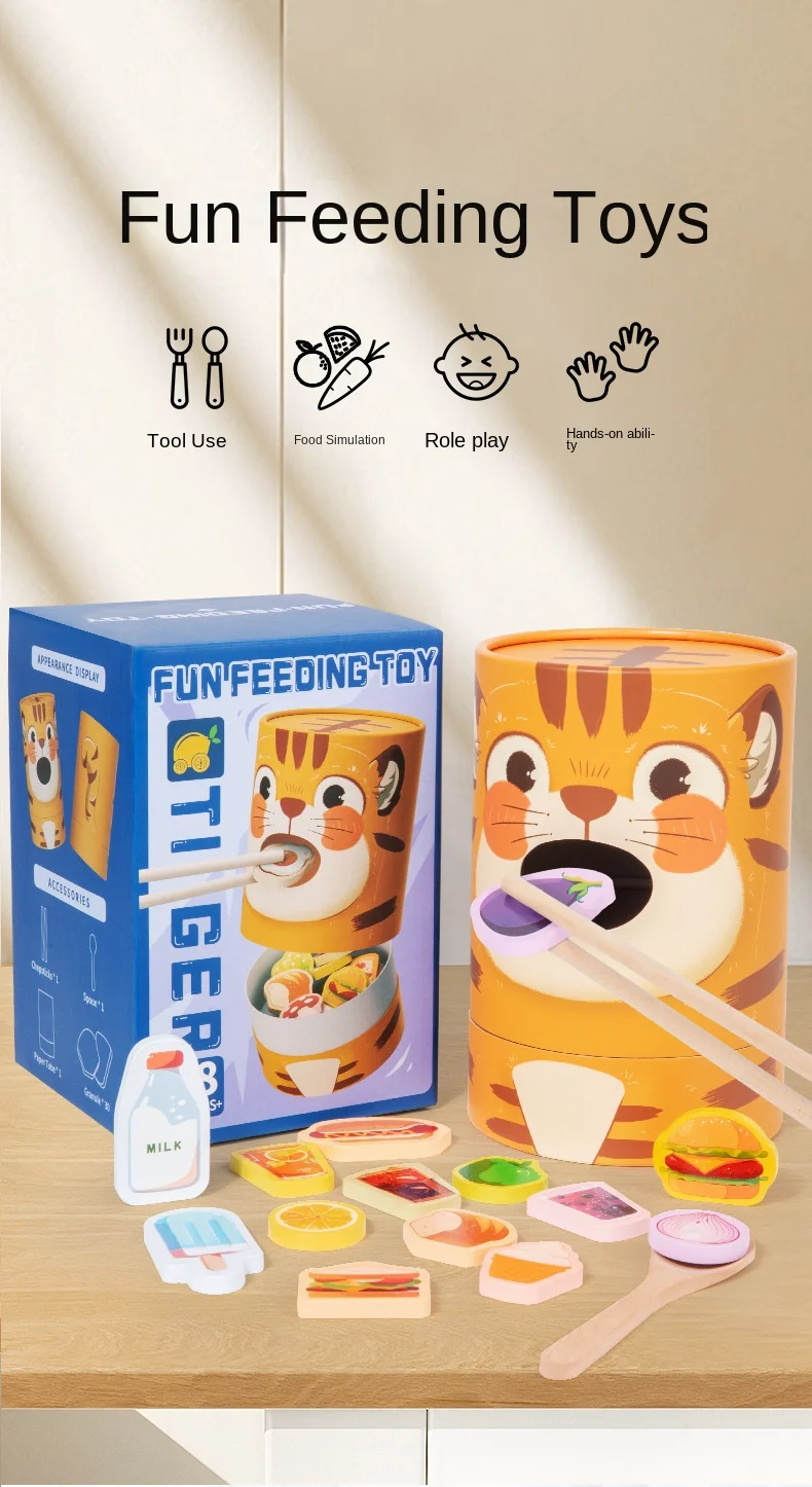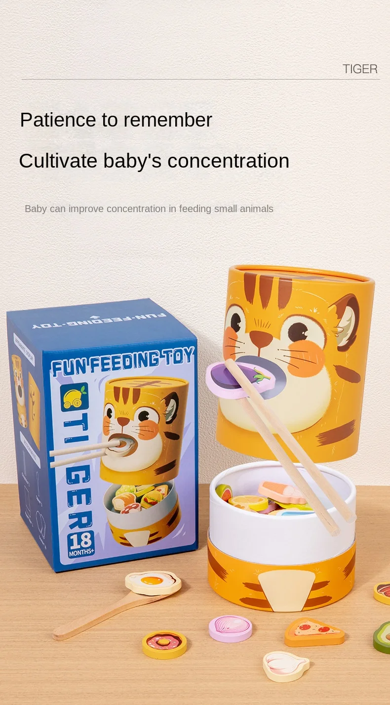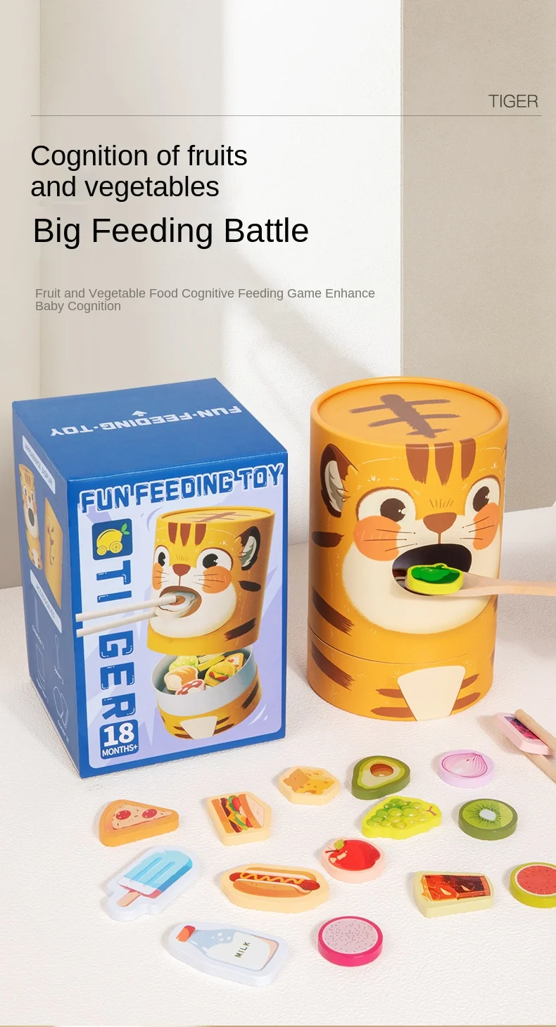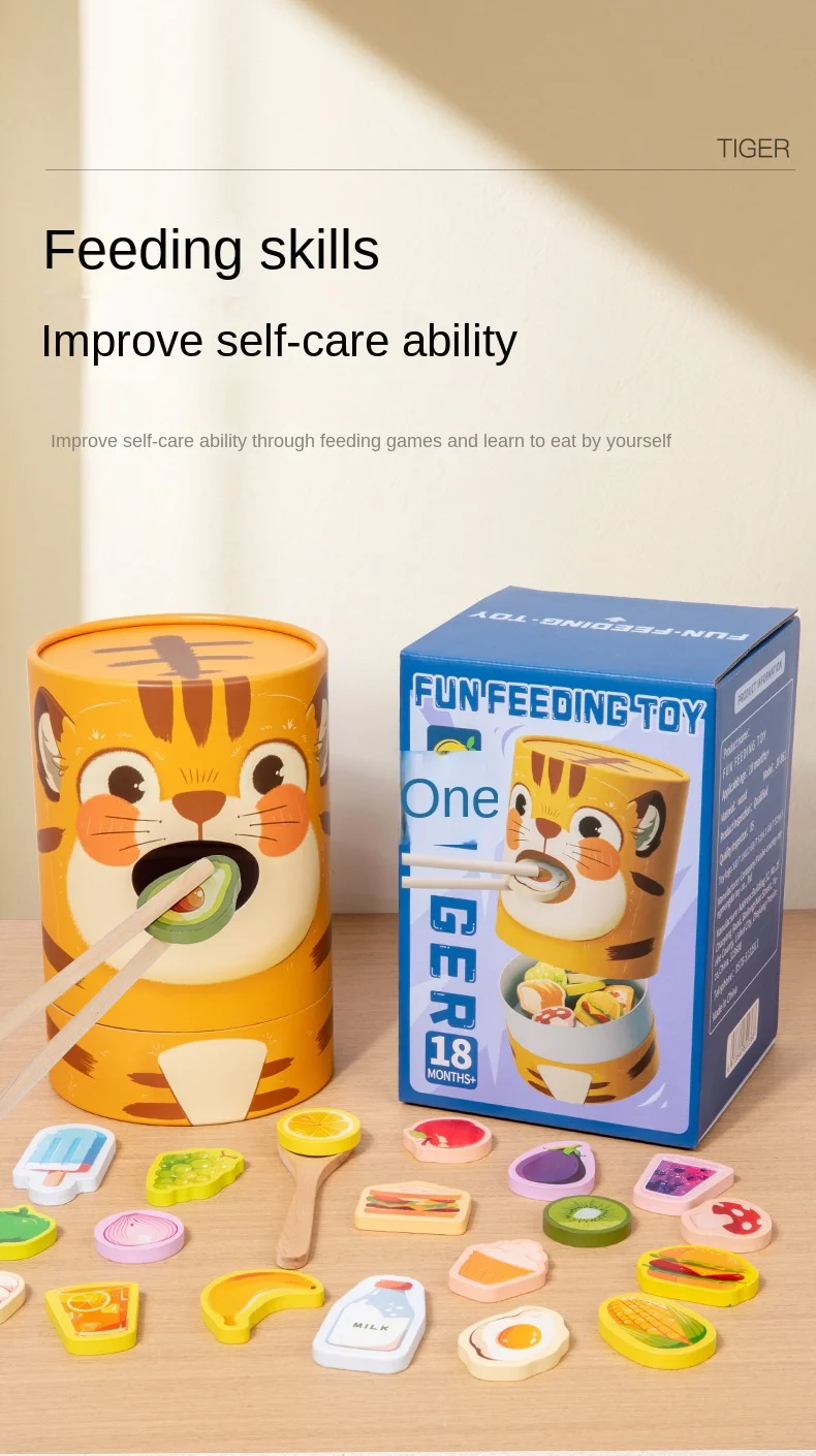 Children's Educational Wooden Feeding Games Montessori Pretend Play Food Set Fine Motor Skills EN71 Certified Gift for Kids Ages