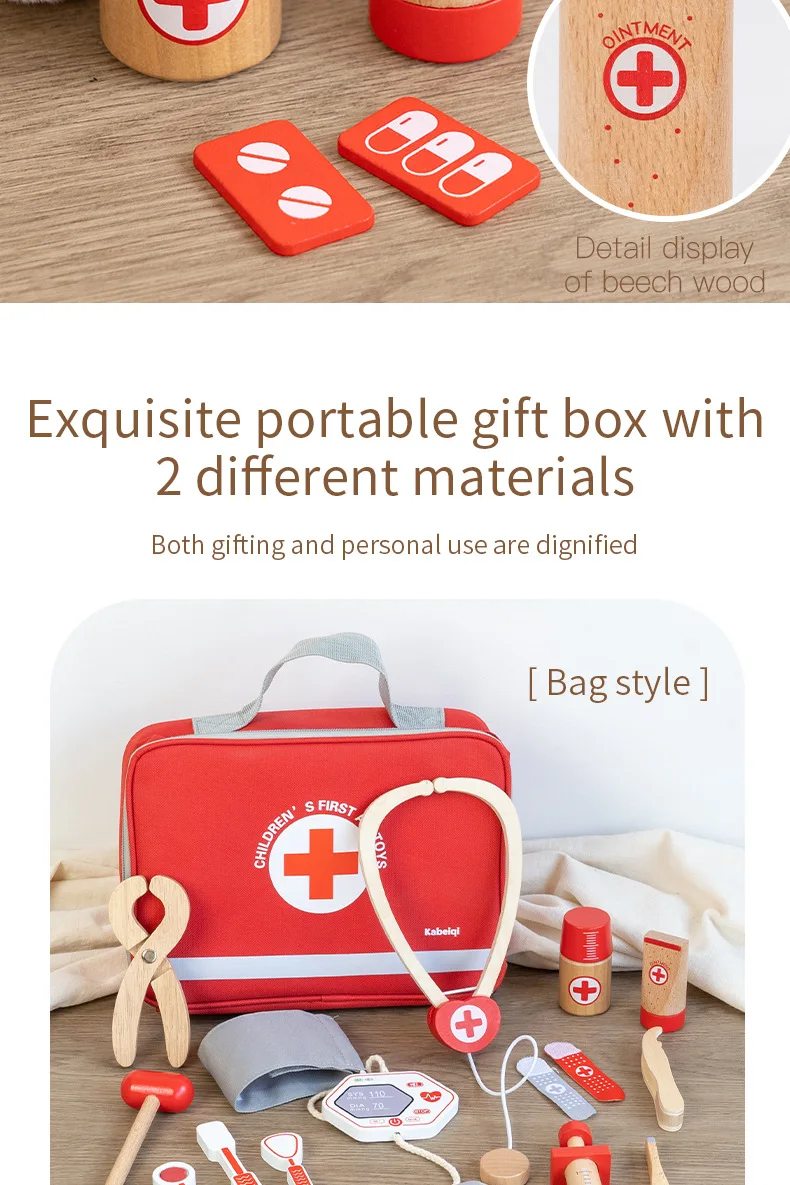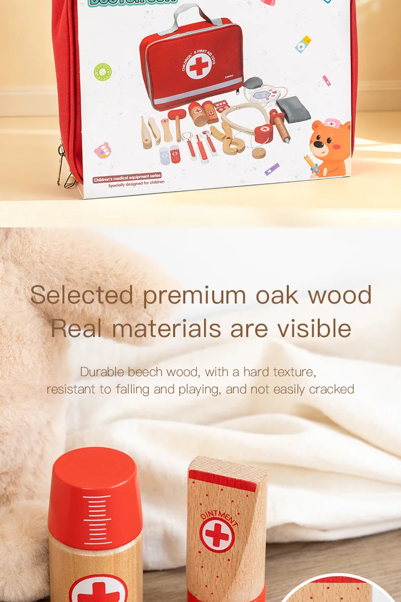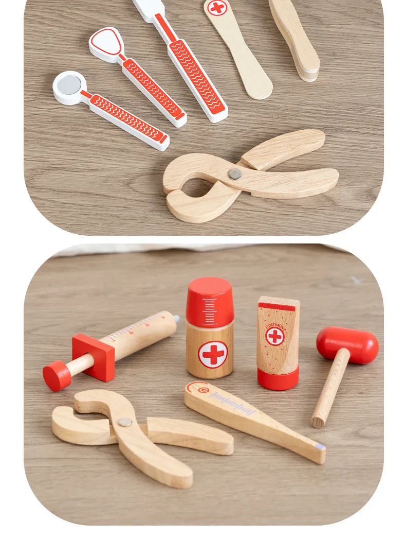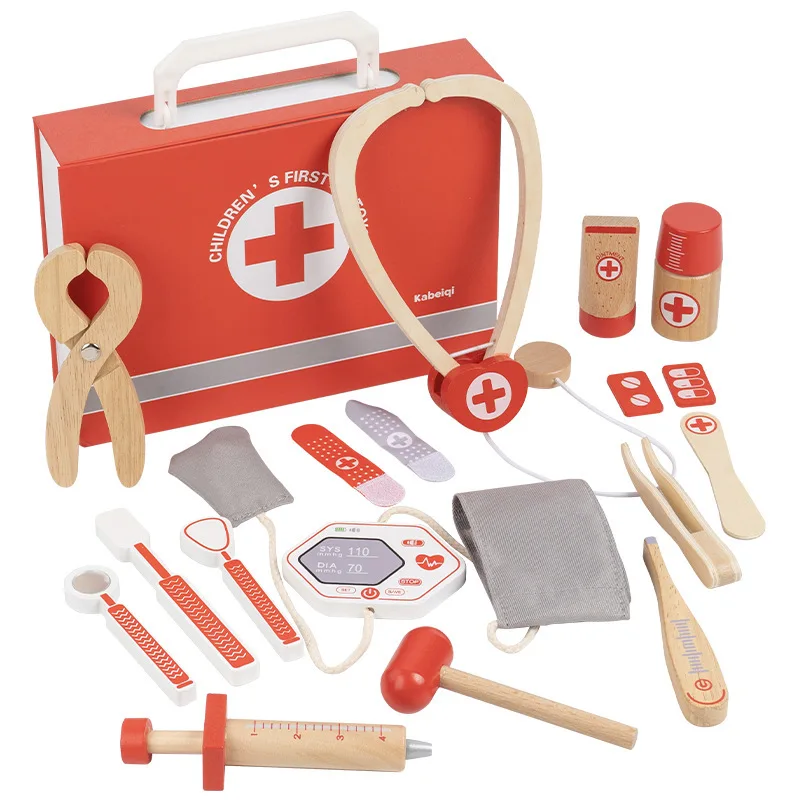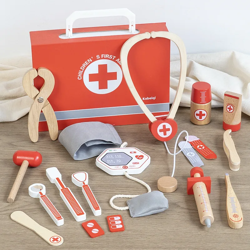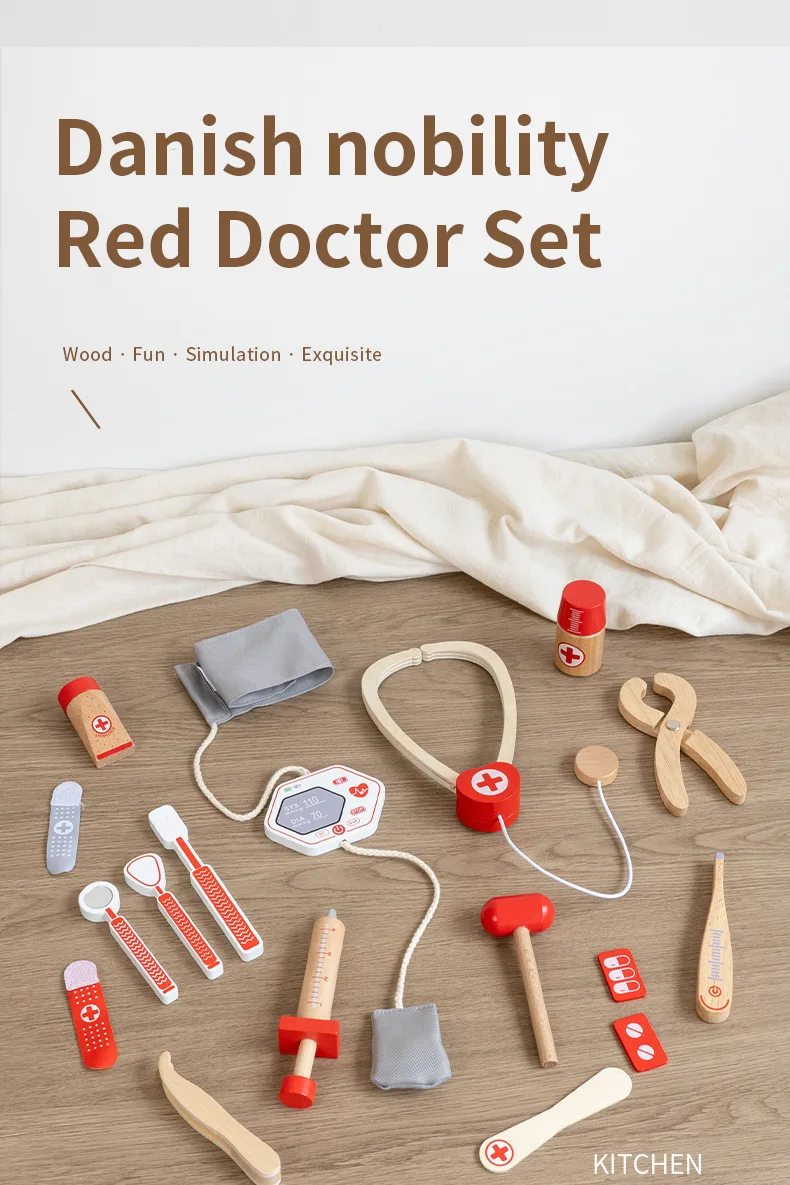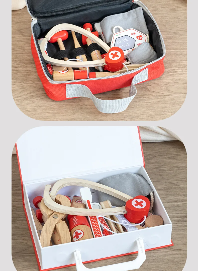 早期教育用木製シミュレーションプレイハウスセット・デンマーク赤色医者ごっこ教育玩具・ドクターセット(おもちゃ)