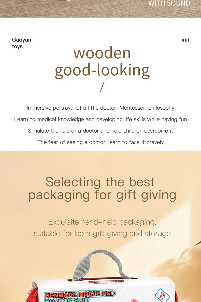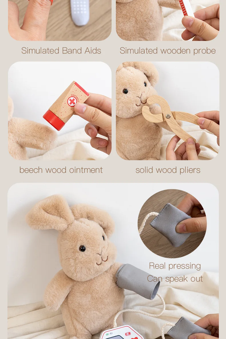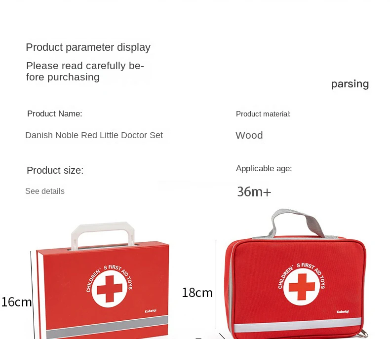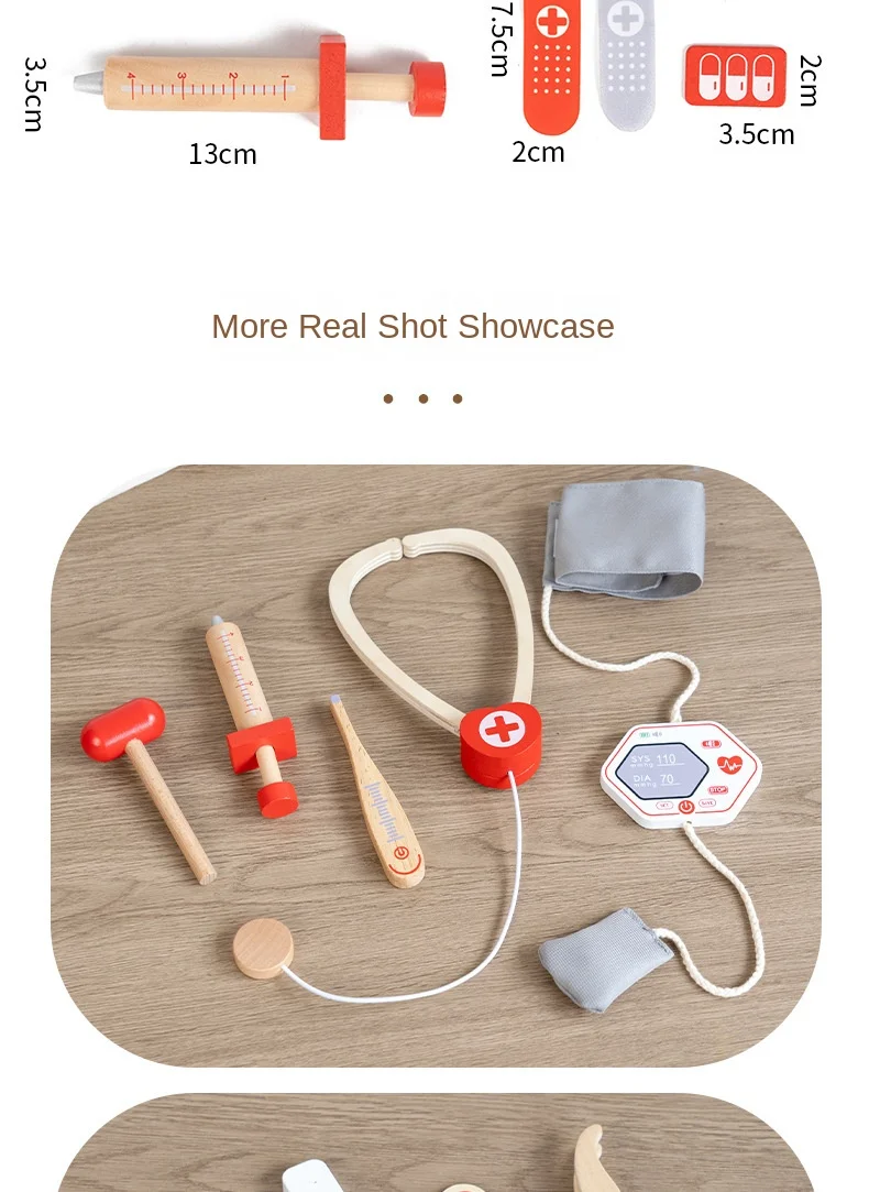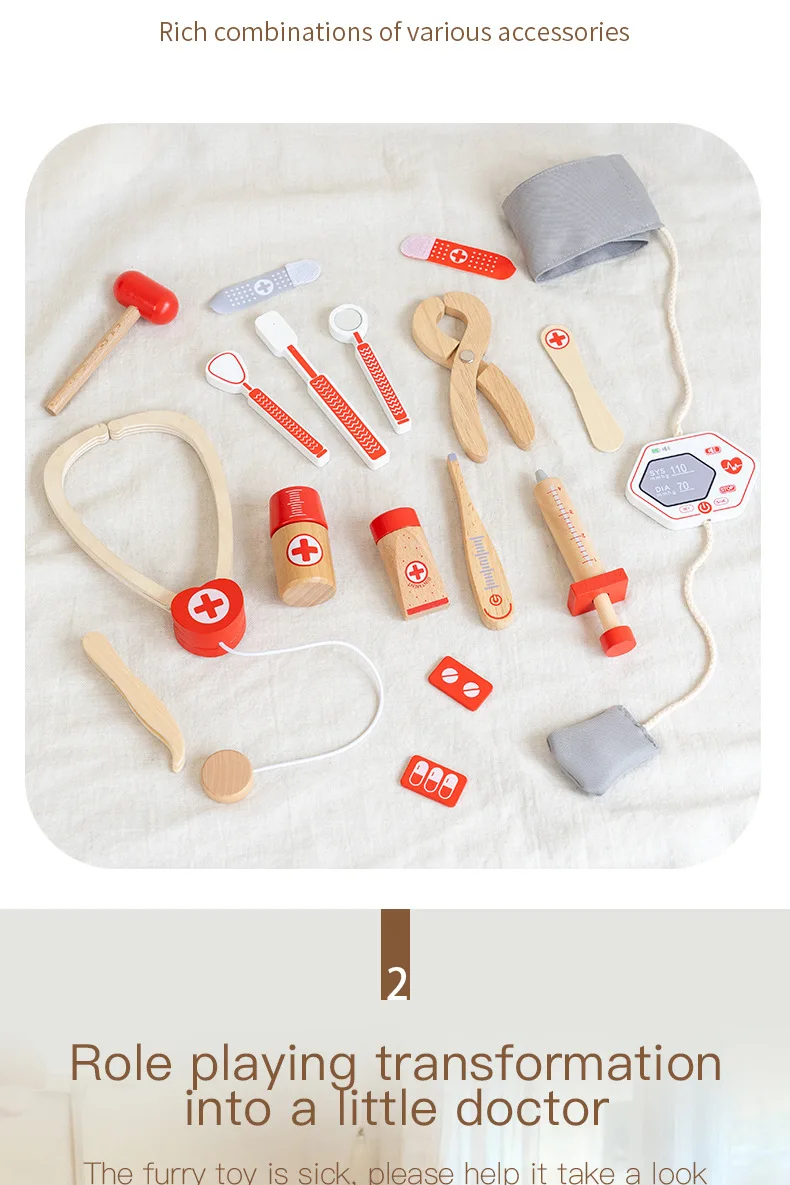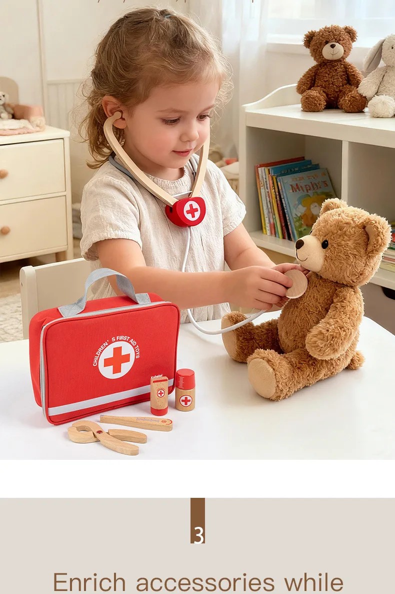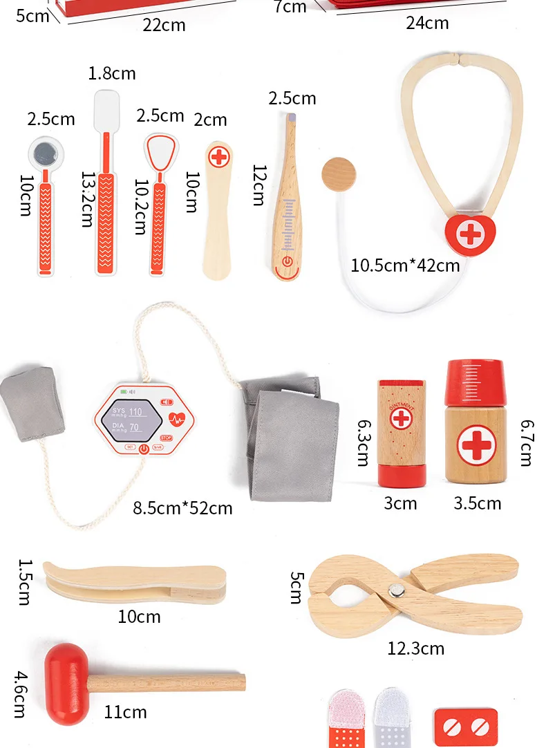 早期教育用木製シミュレーションプレイハウスセット・デンマーク赤色医者ごっこ教育玩具・ドクターセット(おもちゃ)