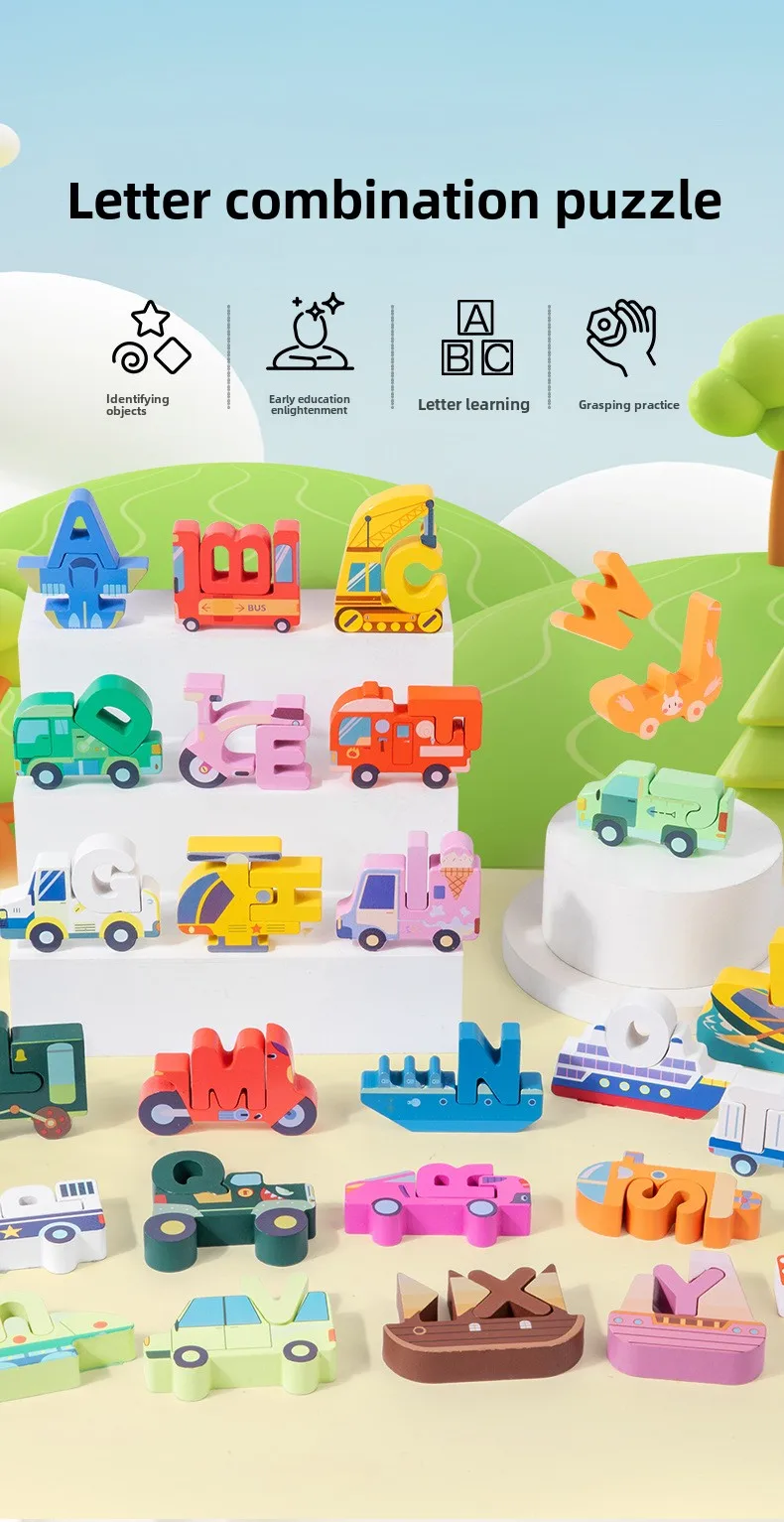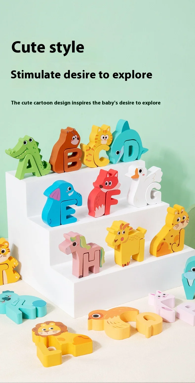 Montessori Educational Wooden Animal Alphabet Puzzles Matching Game for Toddlers ABC Letters Block Set Toys