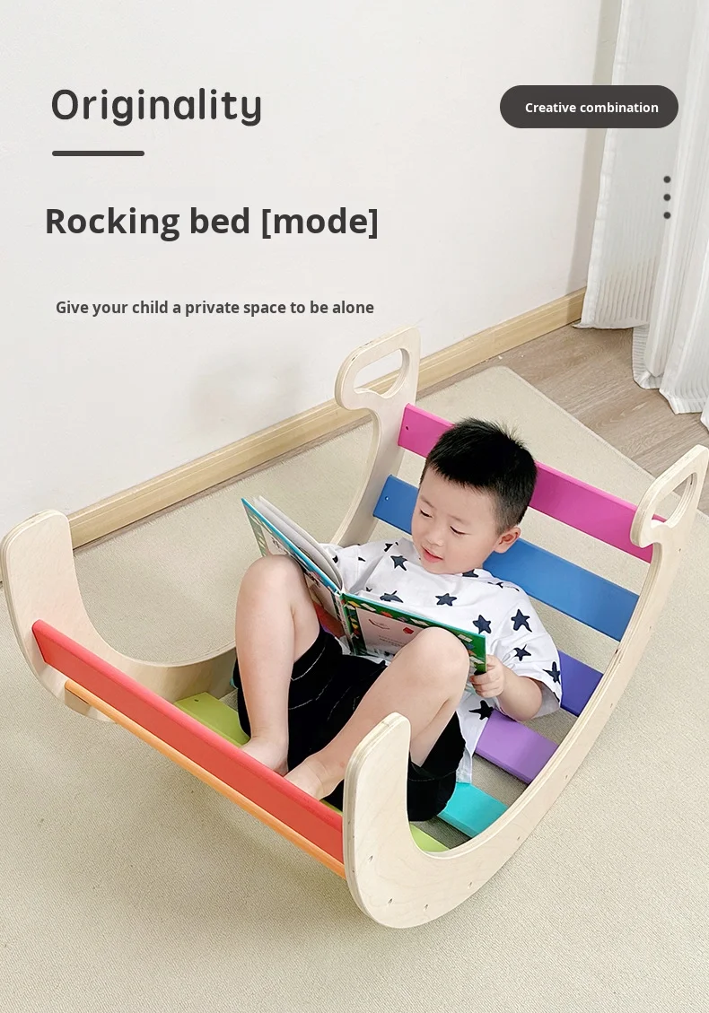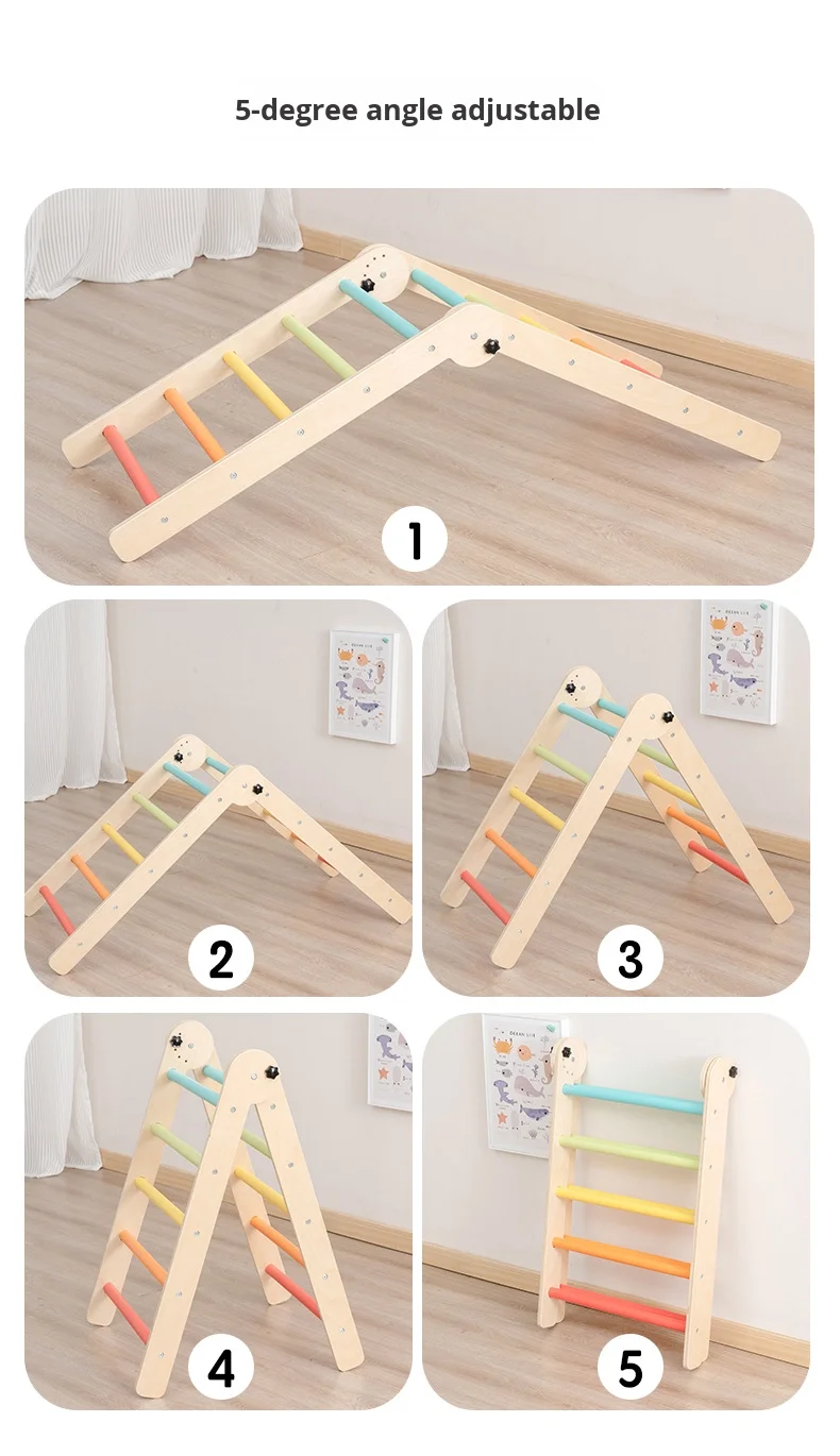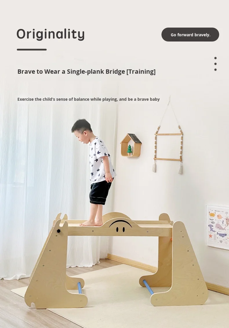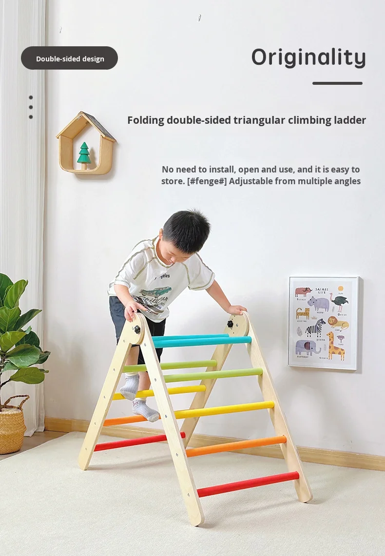 Pielāgojams iekštelpu cieto rotaļlietu komplekts mazbērniem, Montesori bērnu kāpšanas struktūra ar koka kāpšanas rāmi un slīdētavu bērniem.